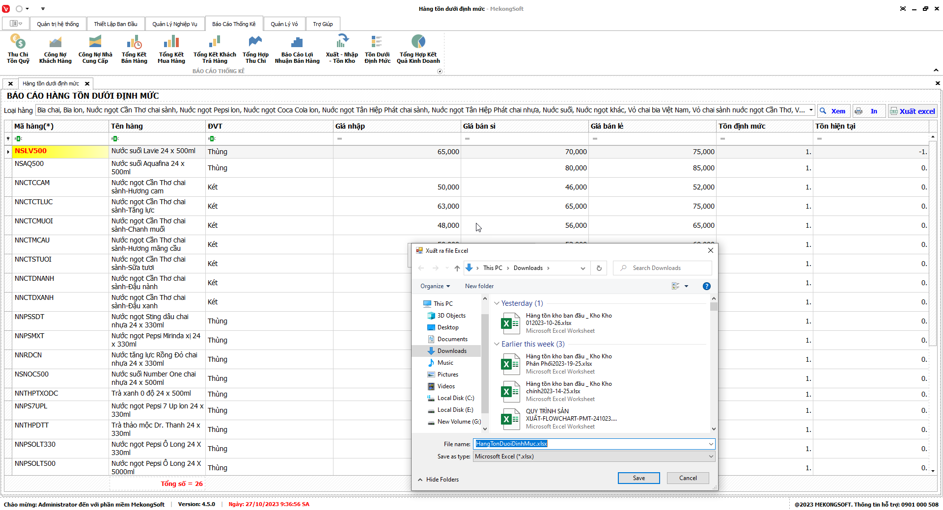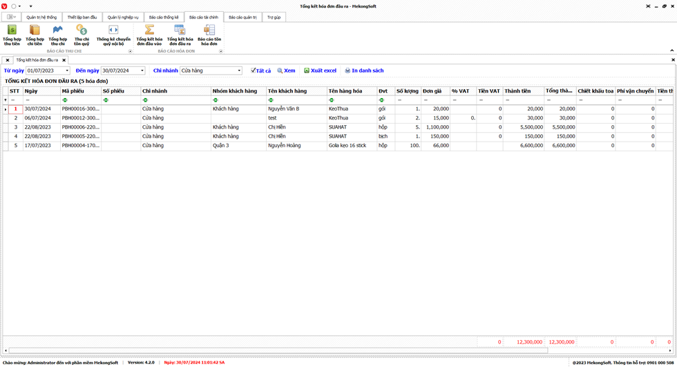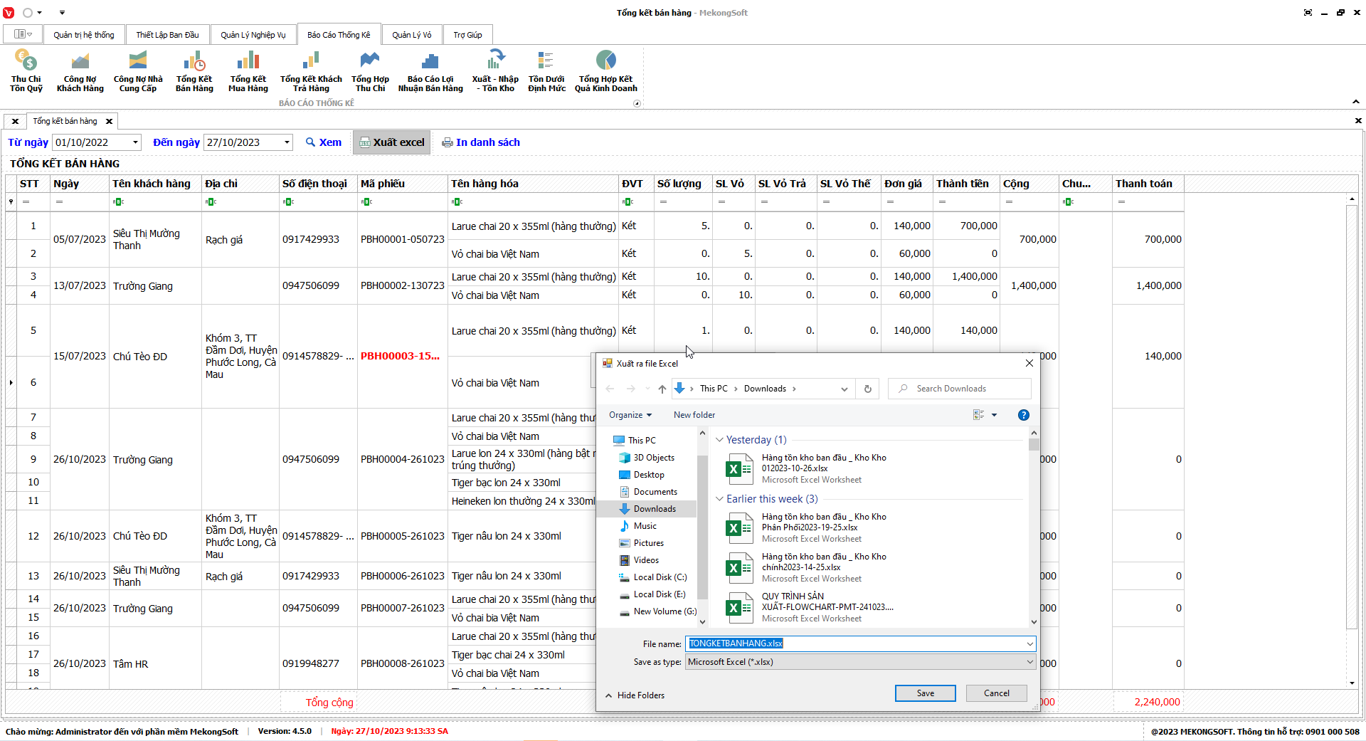 Phần mềm sẽ xuất Báo cáo bán hàng dưới dạng file excel.