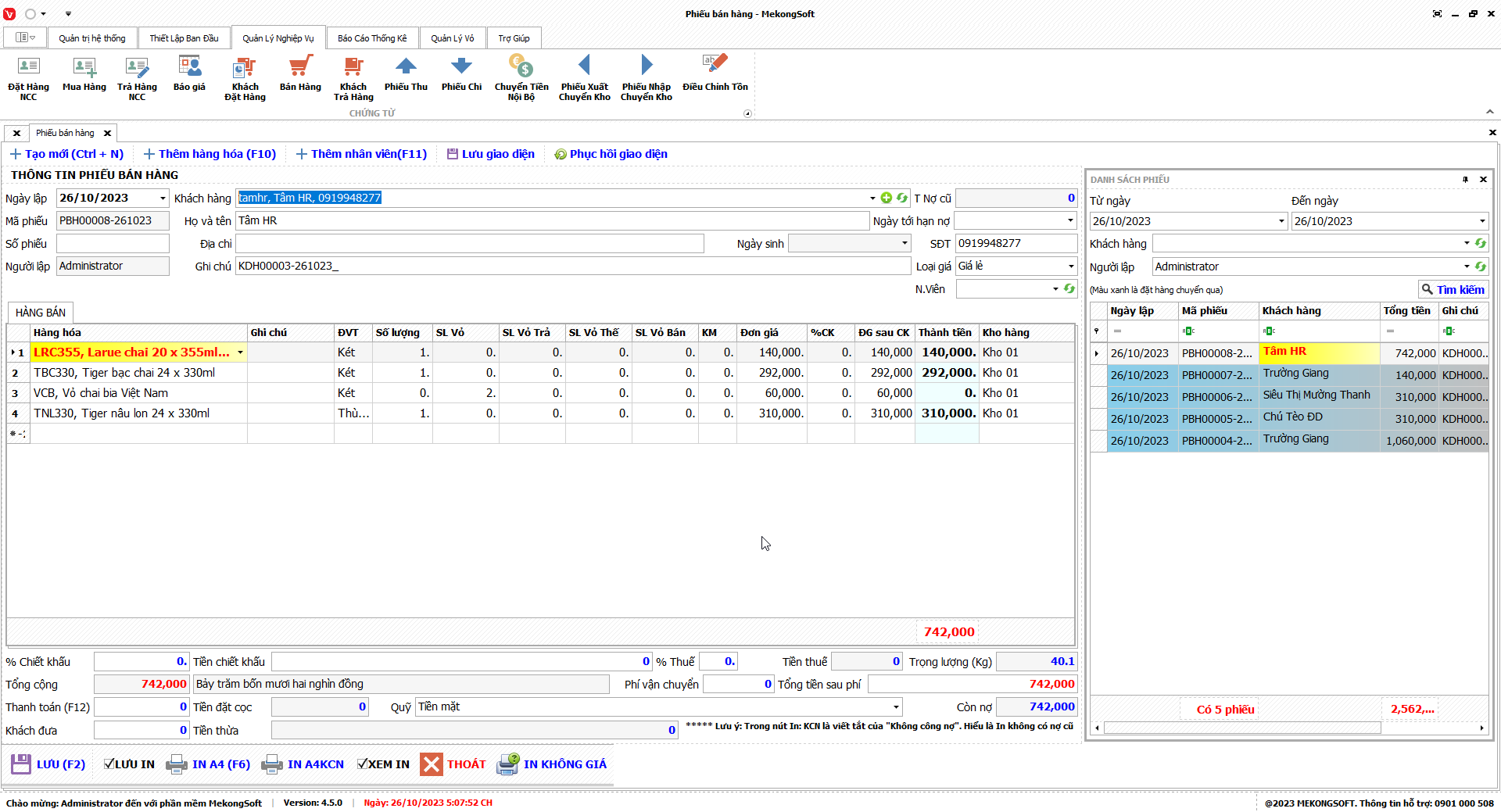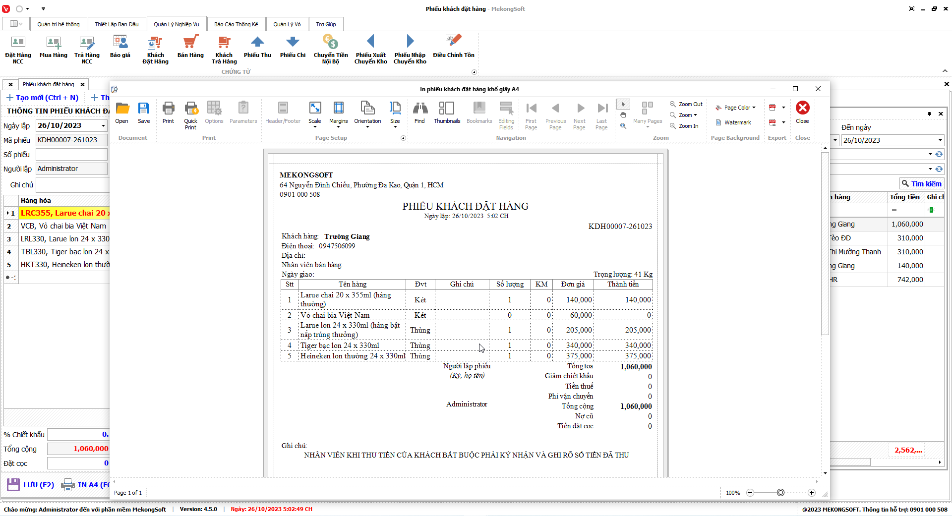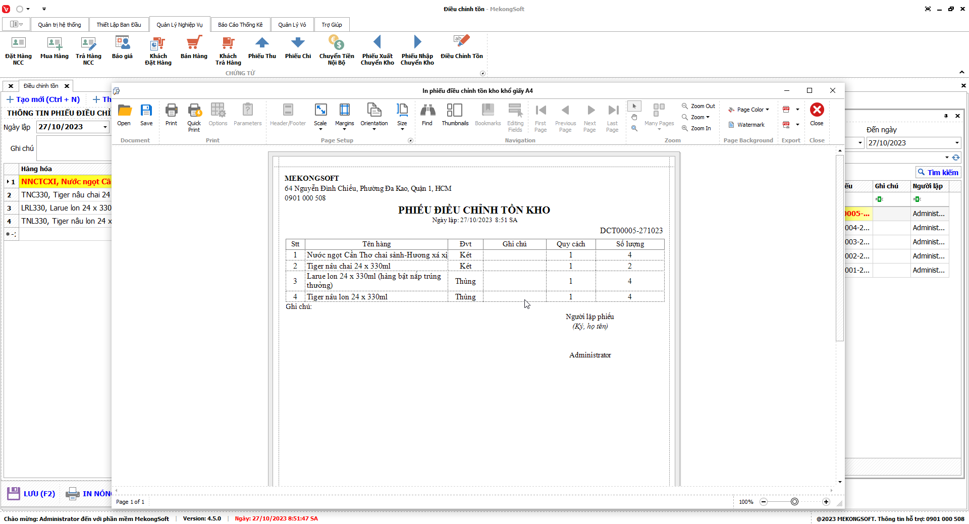 In báo cáo bán hàng