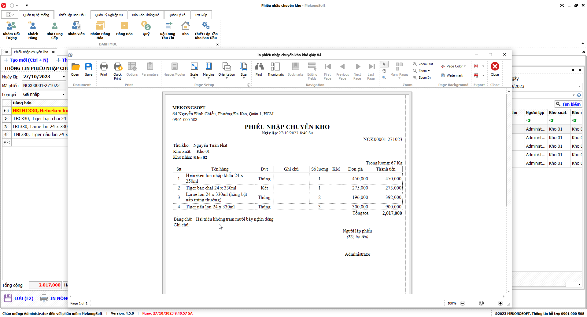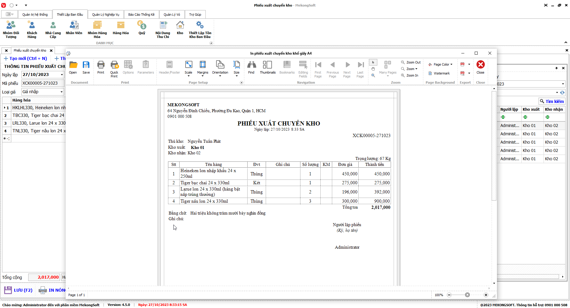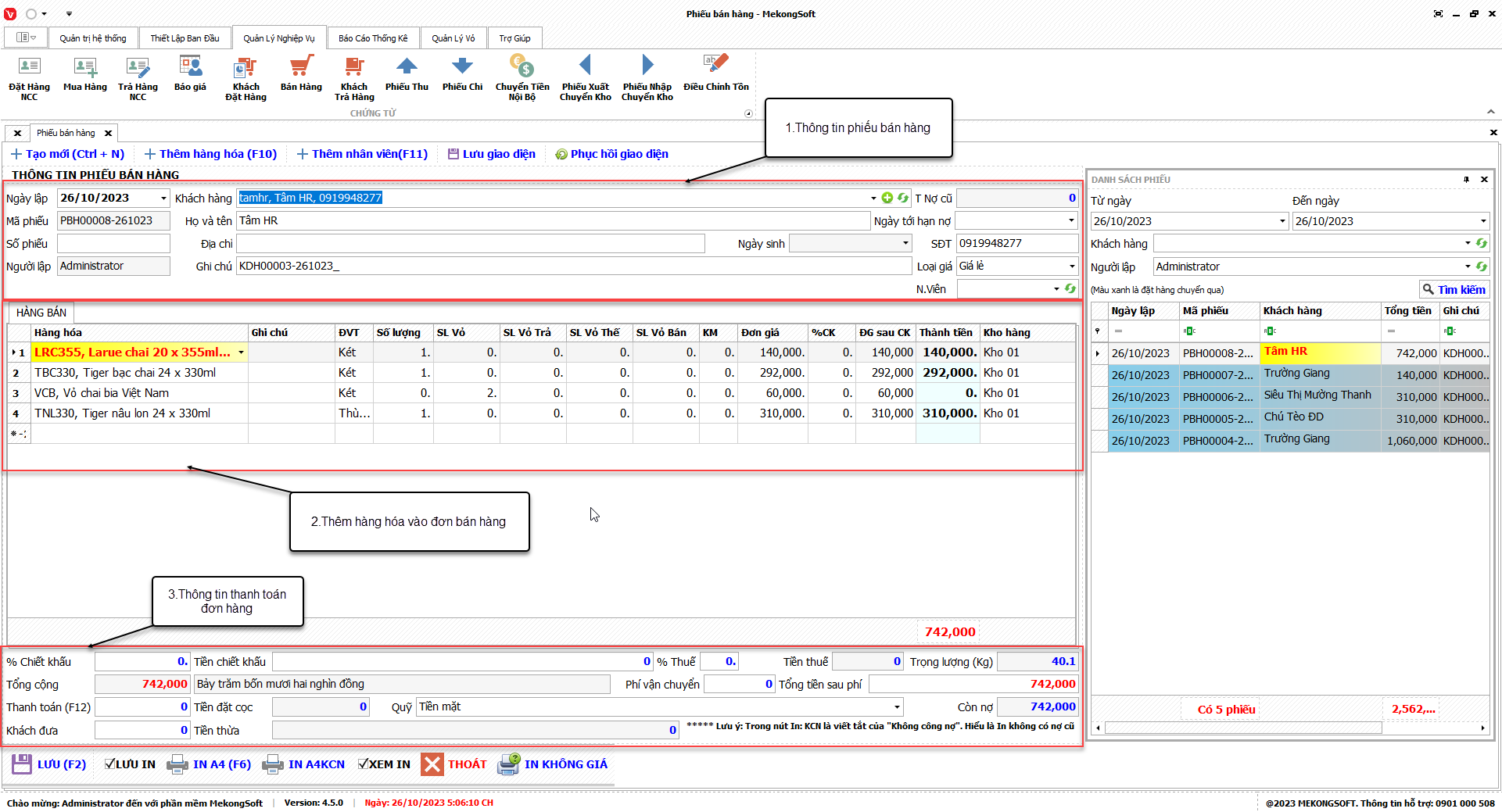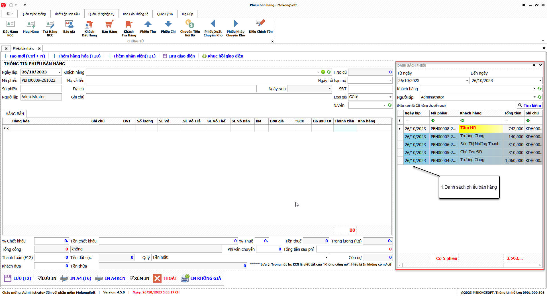 In báo cáo bán hàng