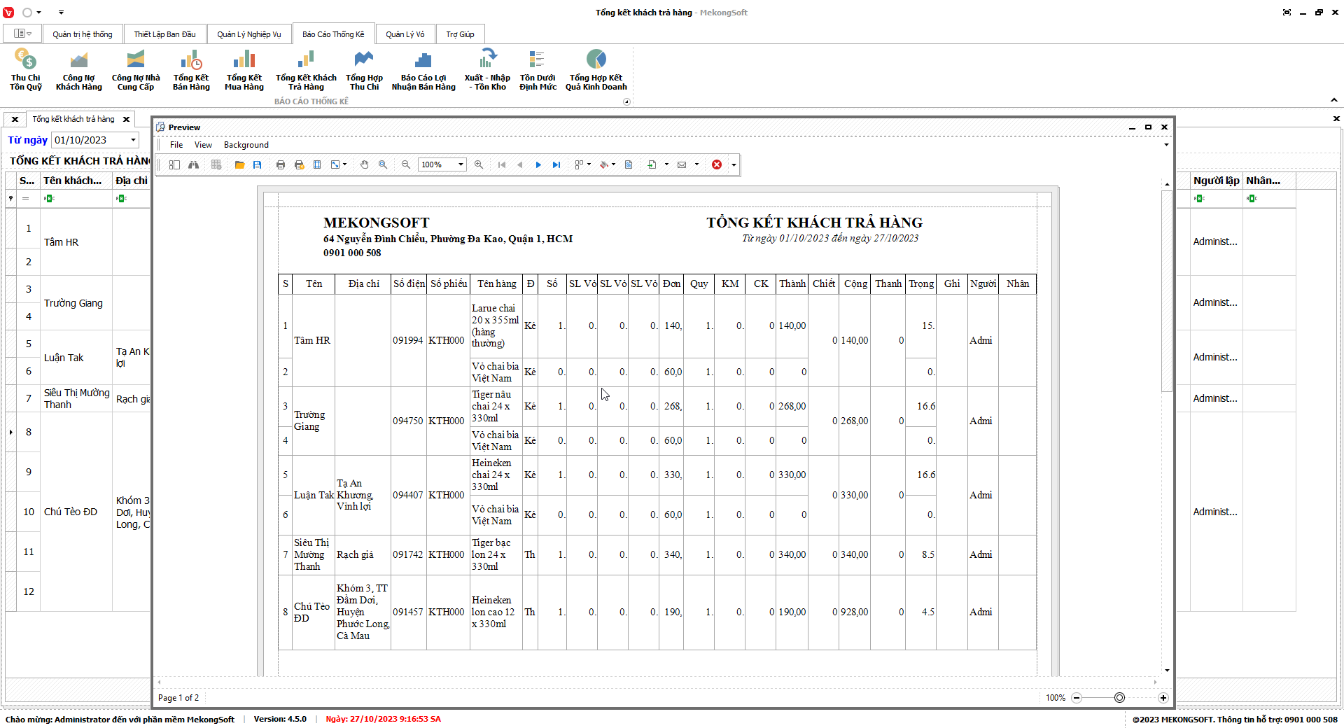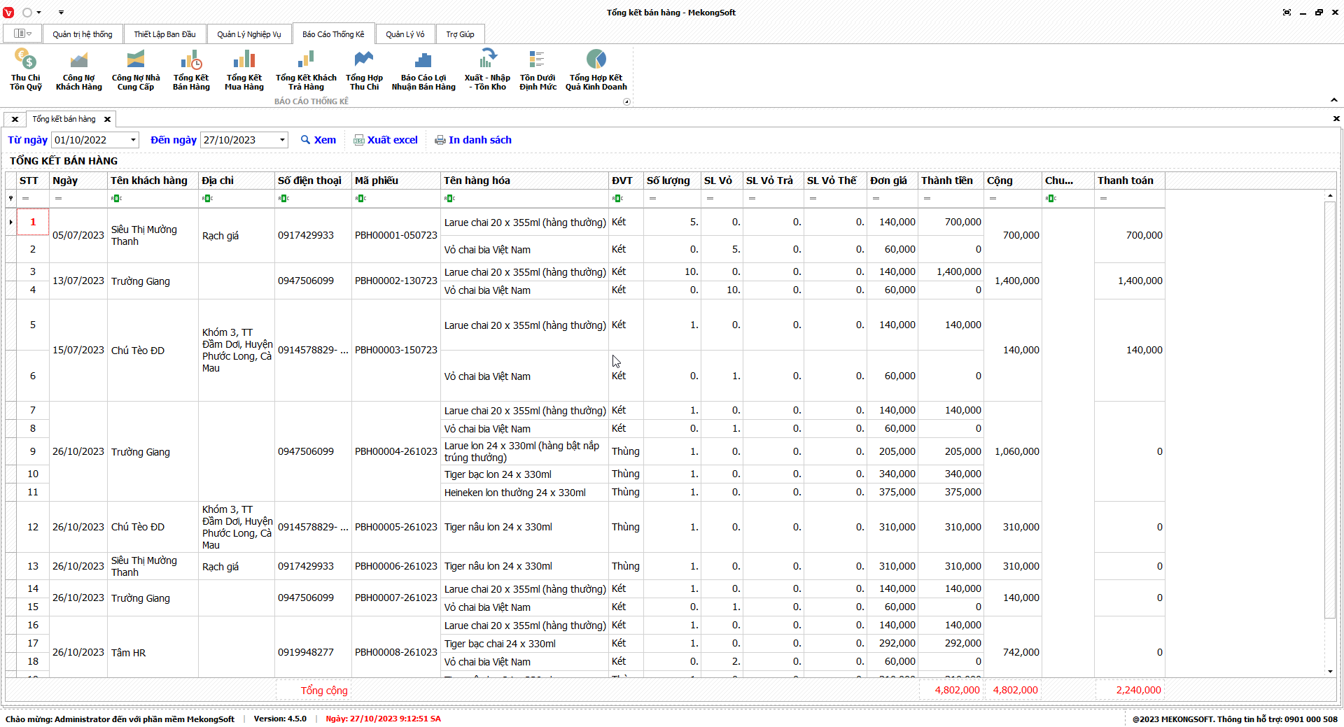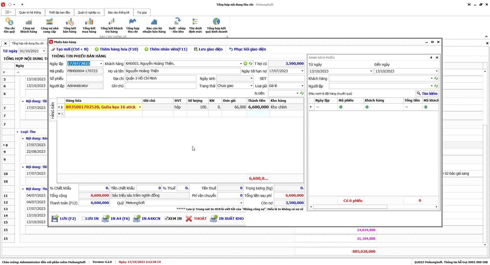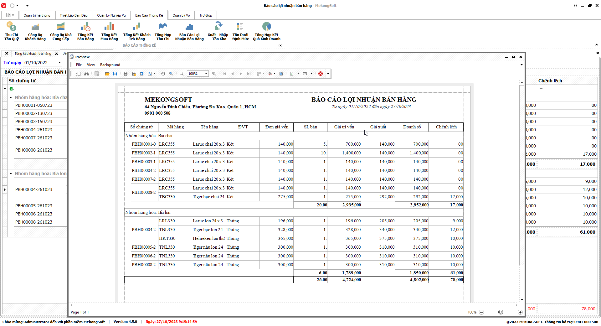 Chức năng tổng hợp kết quả kinh doanh là một tính năng quan trọng của phần mềm quản lý bán hàng phân phối bia nước ngọt, giúp doanh nghiệp theo dõi và đánh giá tình hình kinh doanh một cách tổng quan.