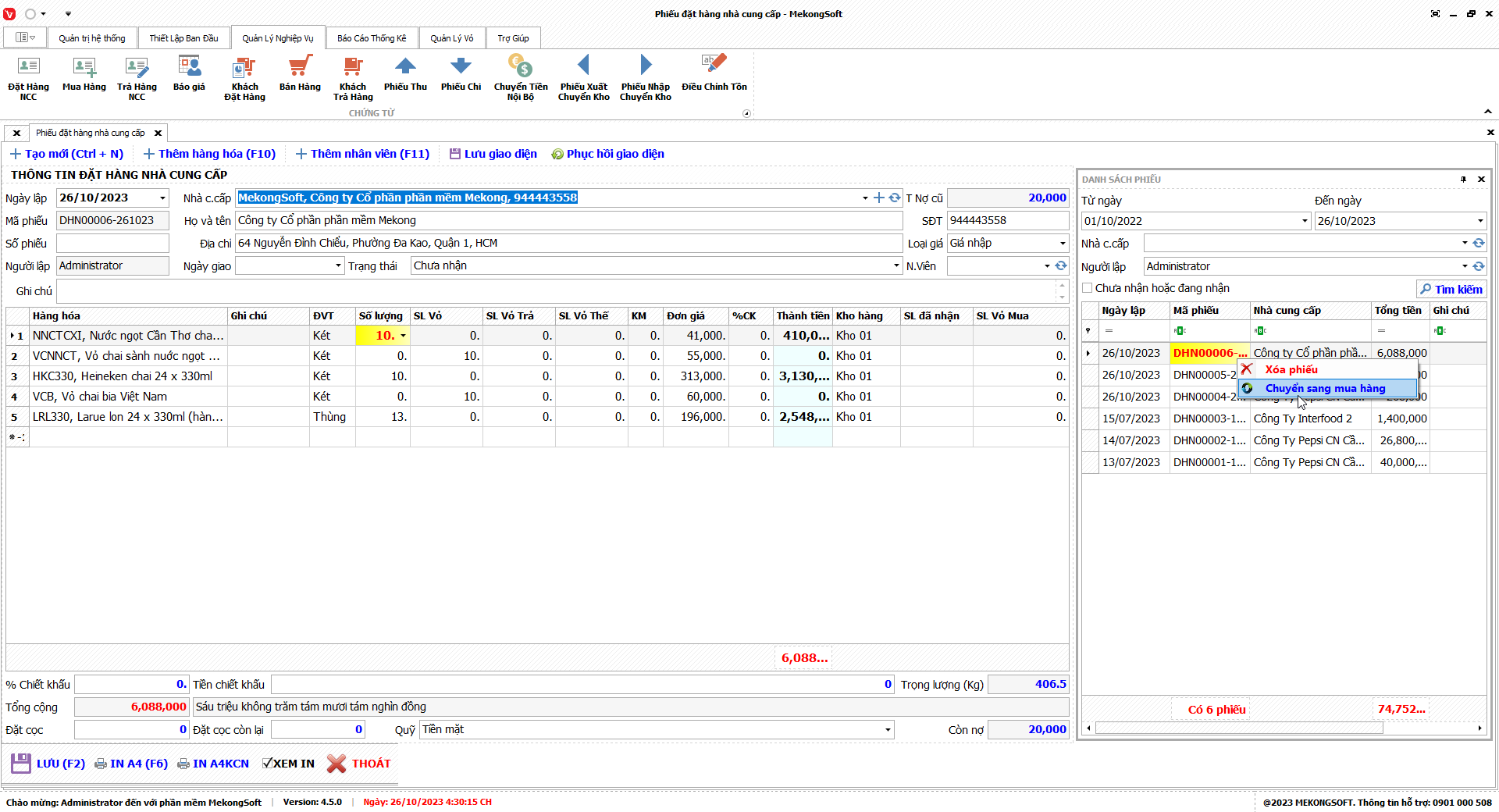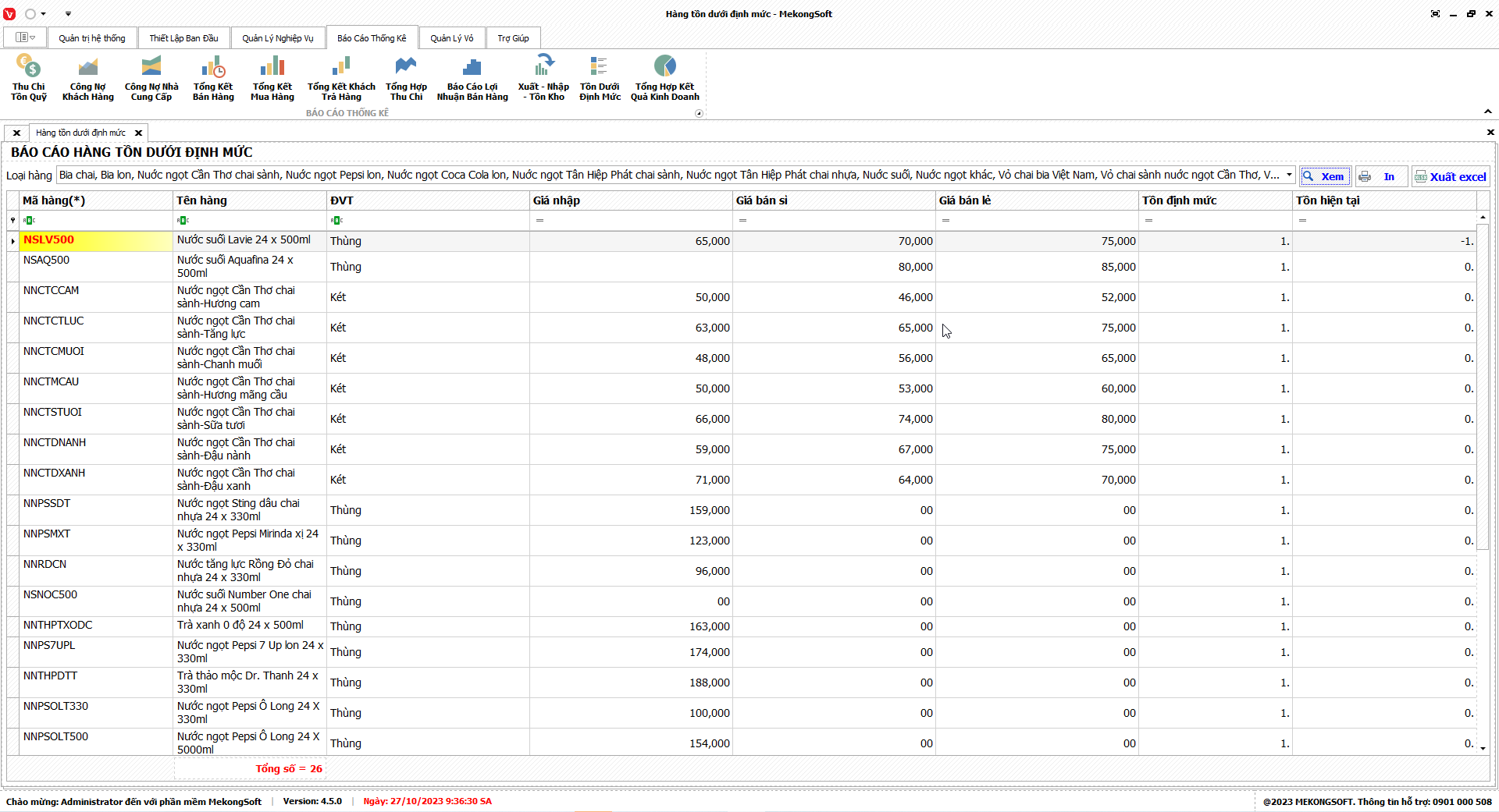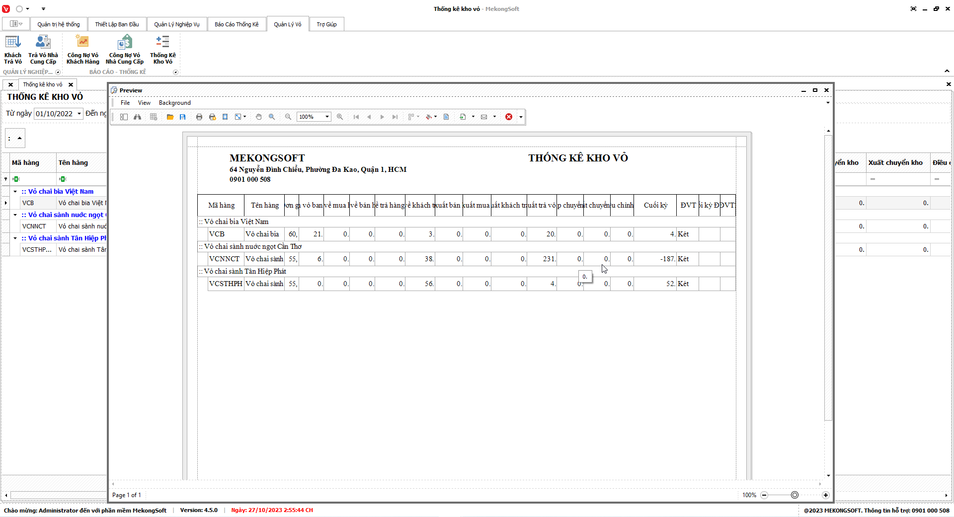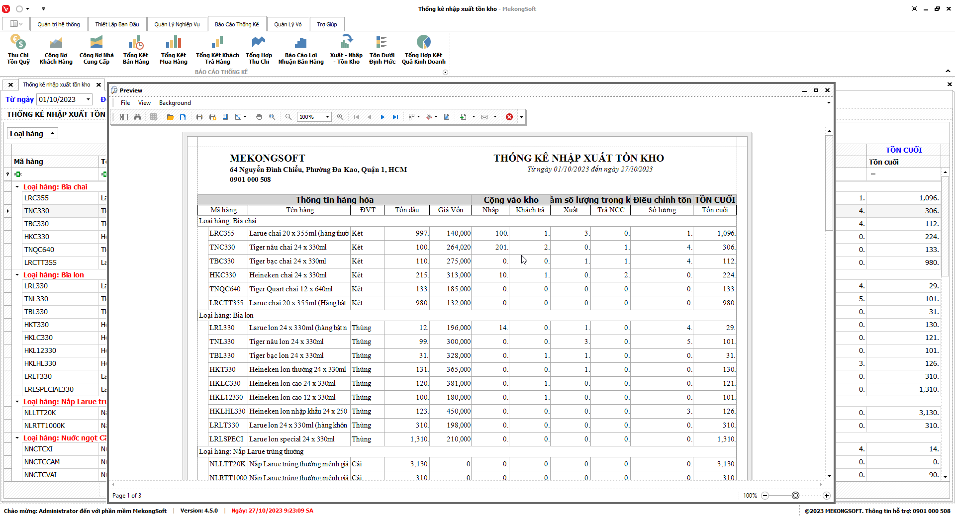 Chức năng tổng hợp kết quả kinh doanh là một tính năng quan trọng của phần mềm quản lý bán hàng phân phối bia nước ngọt, giúp doanh nghiệp theo dõi và đánh giá tình hình kinh doanh một cách tổng quan.