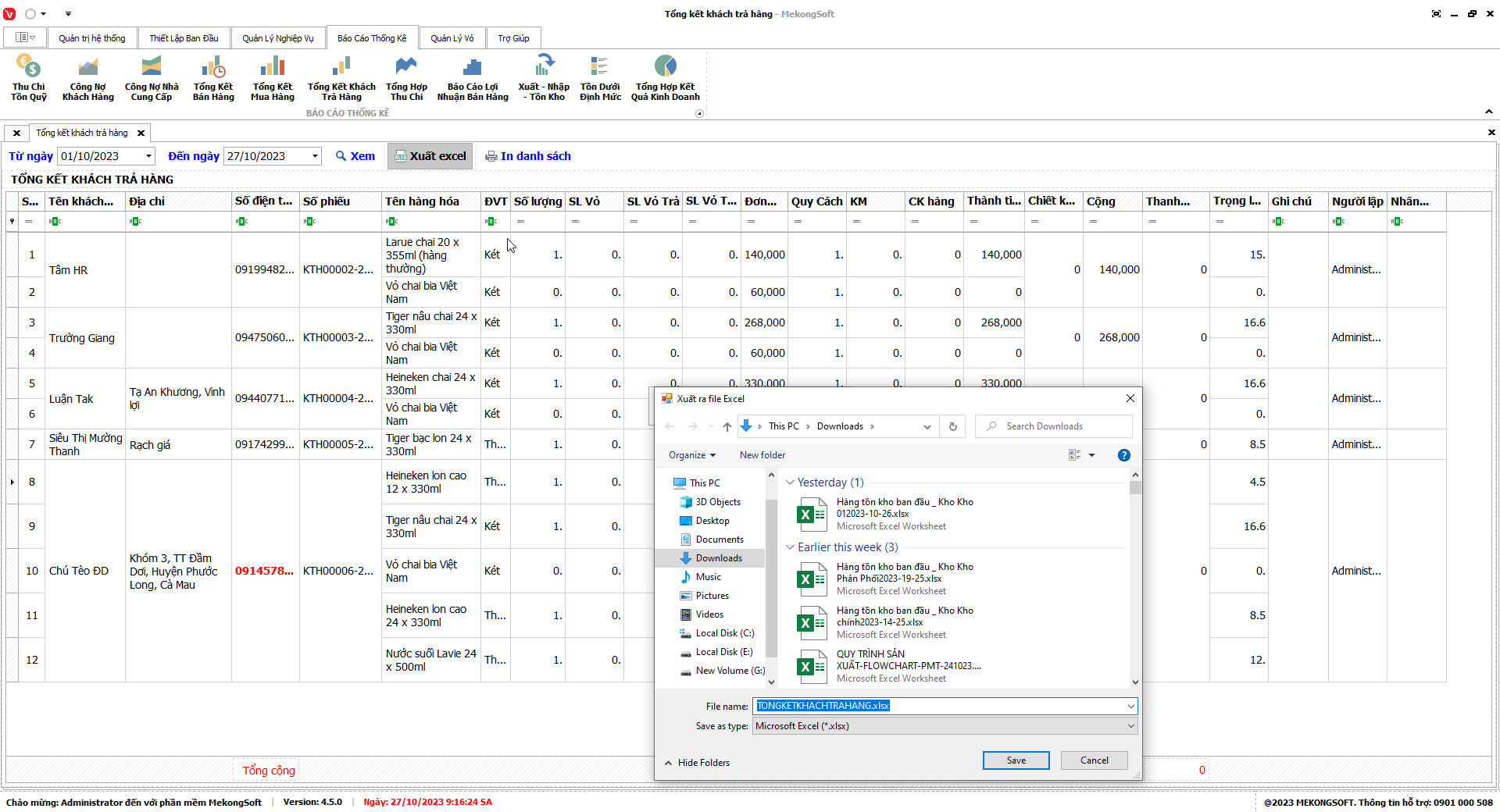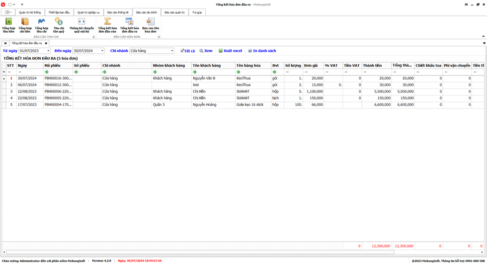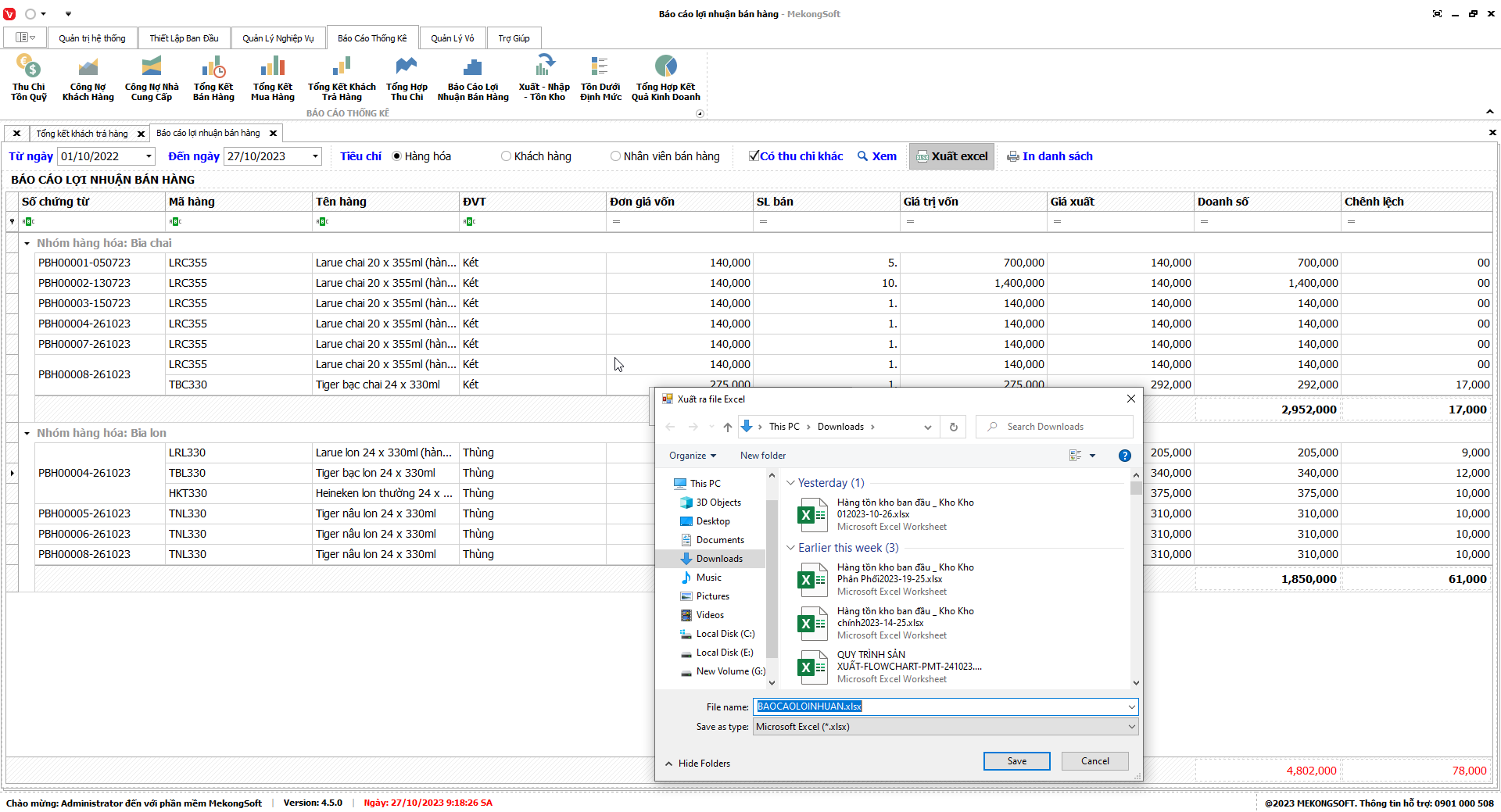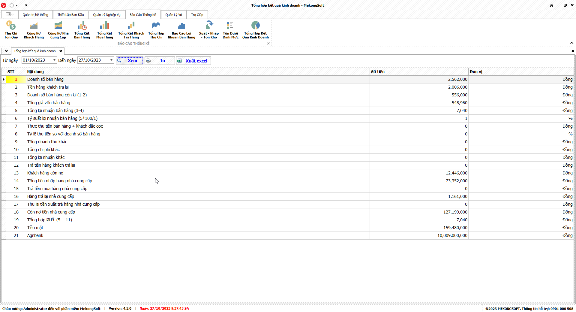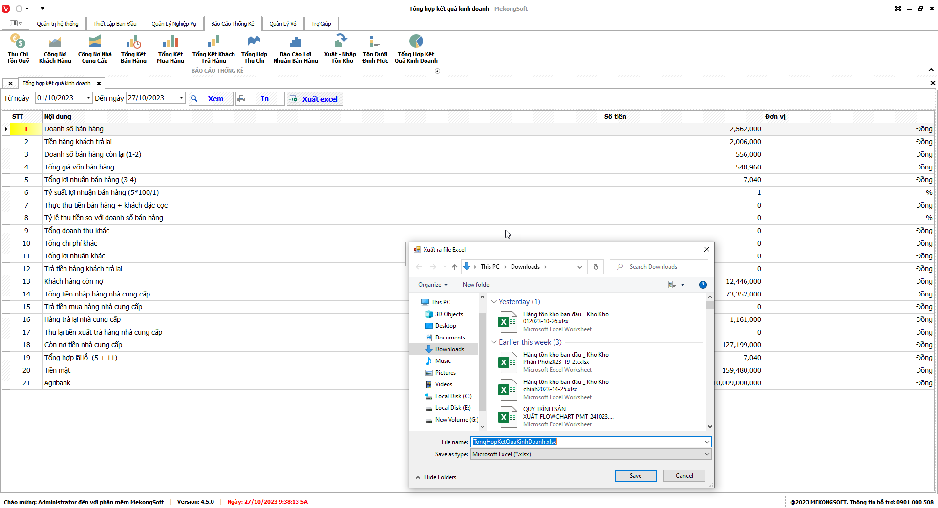 Phần mềm sẽ xuất báo cáo tổng hợp kết quả kinh doanh dưới dạng file excel.