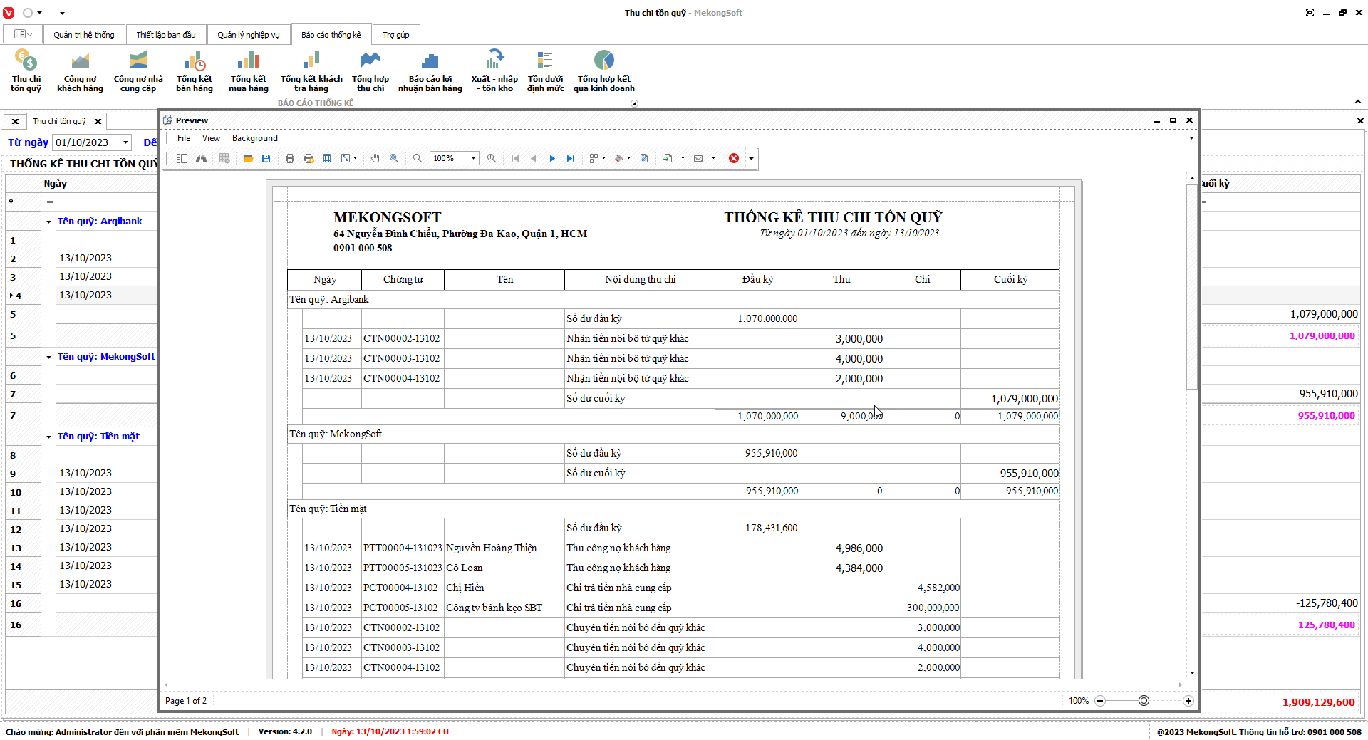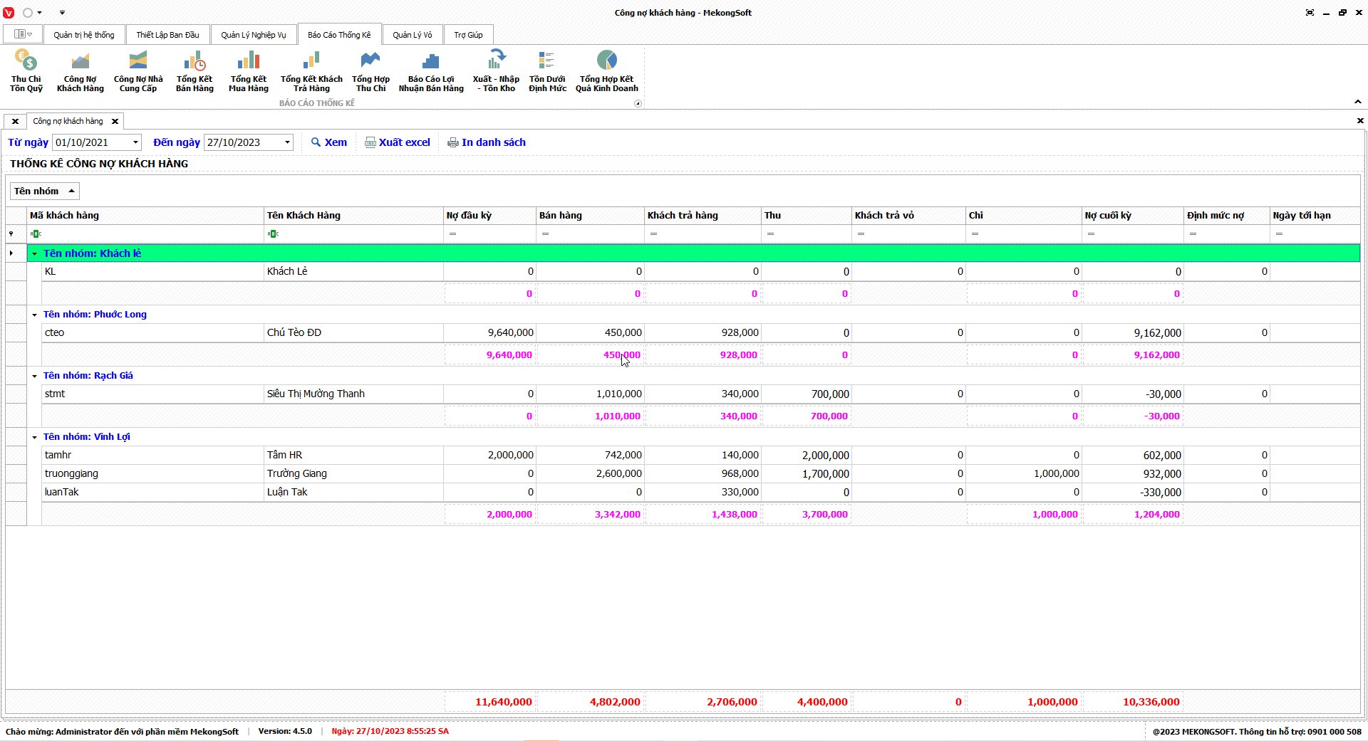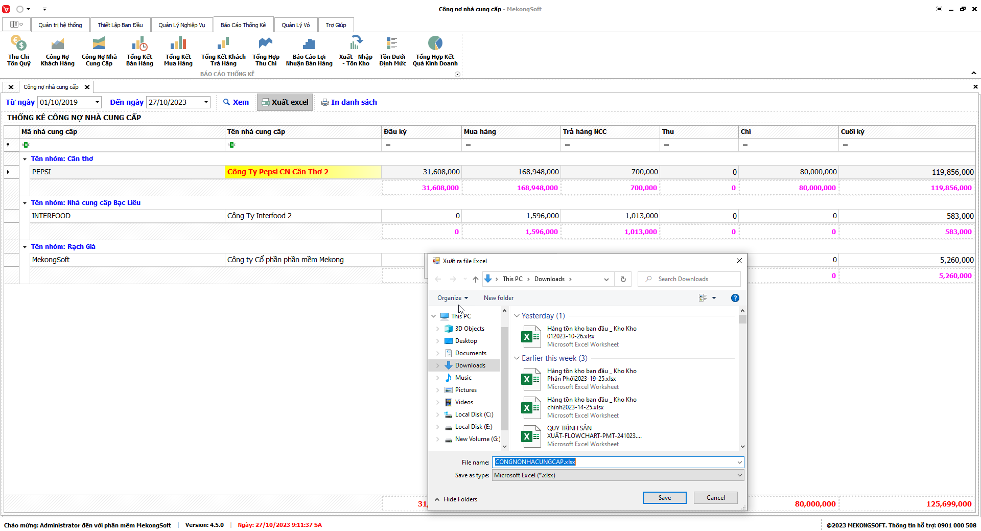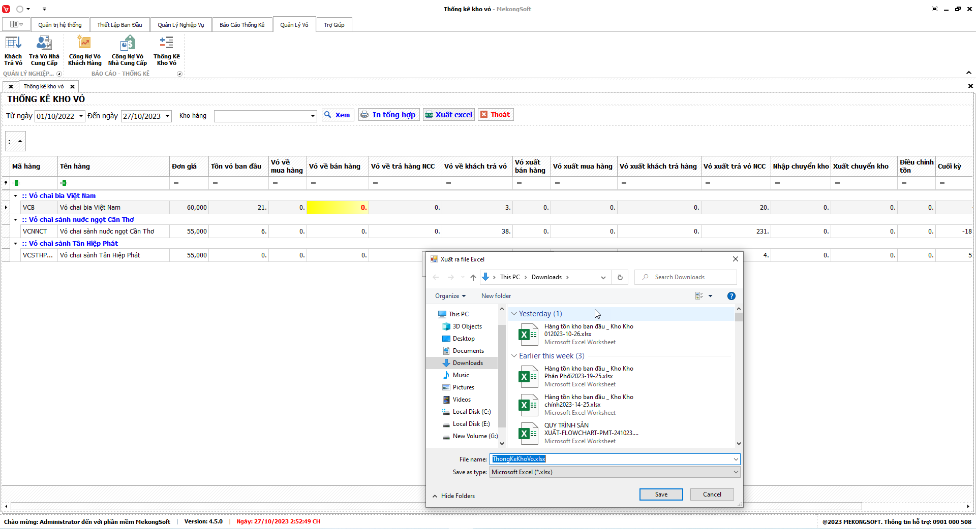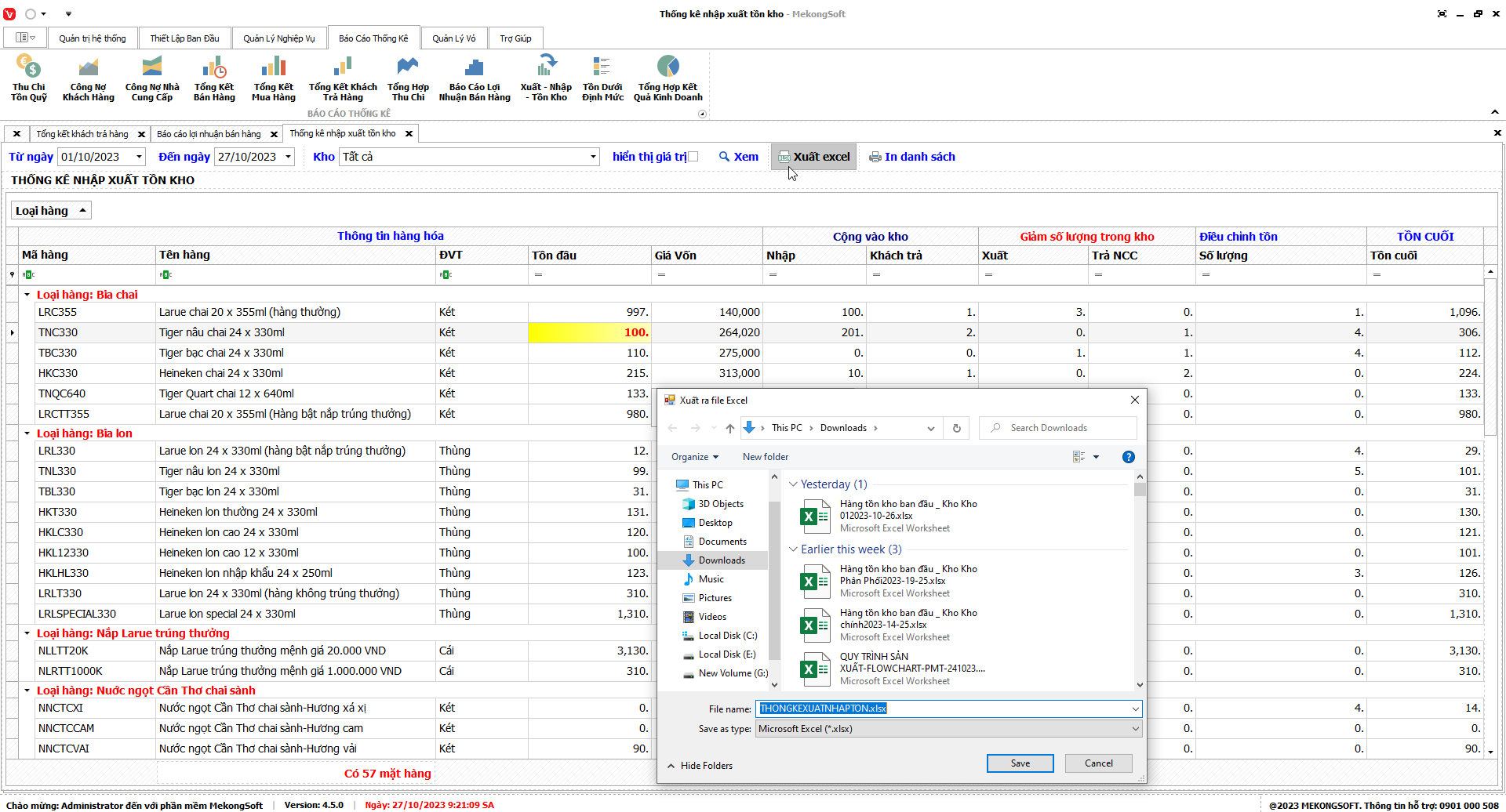 Phần mềm sẽ xuất báo cáo tổng hợp kết quả kinh doanh dưới dạng file excel.