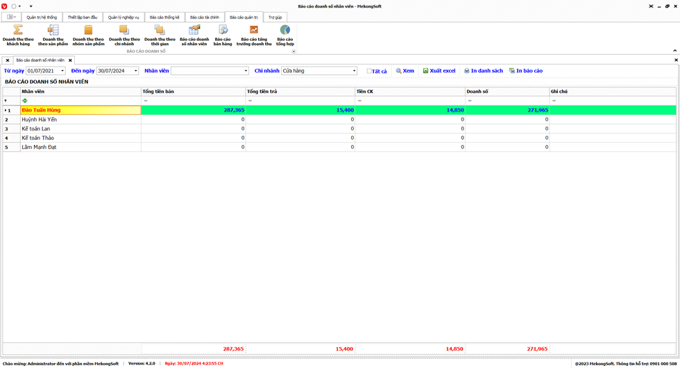 Tại màn hình Doanh số theo nhân viên