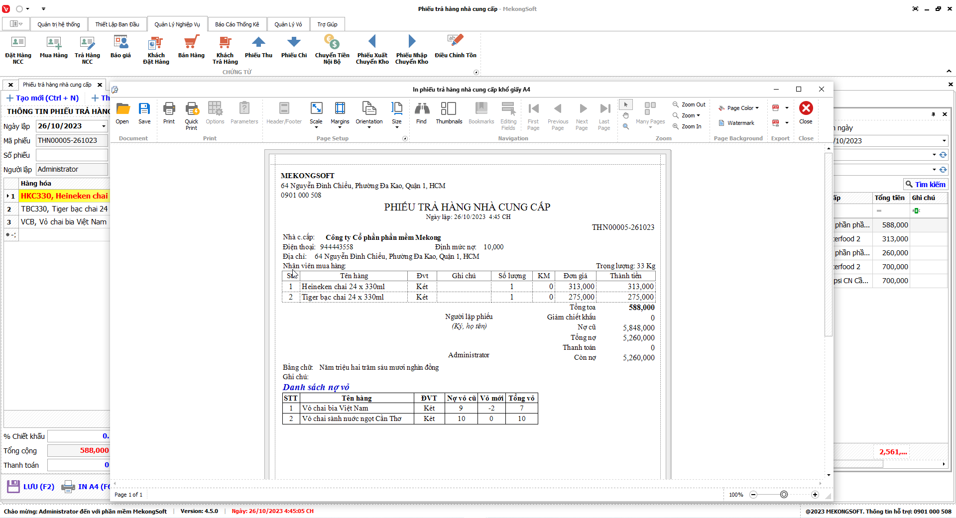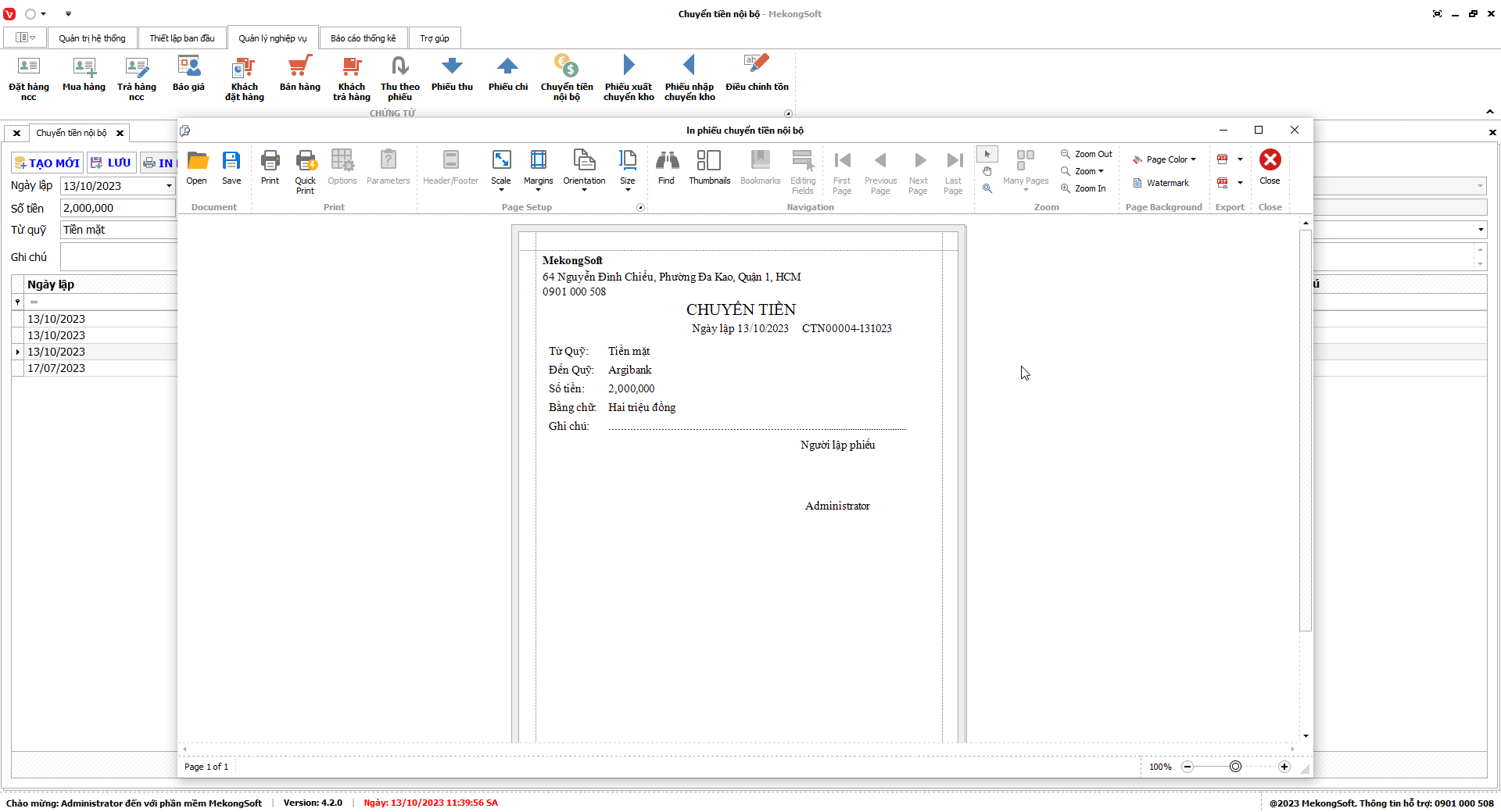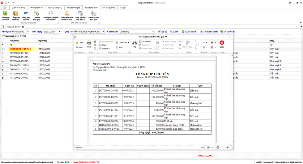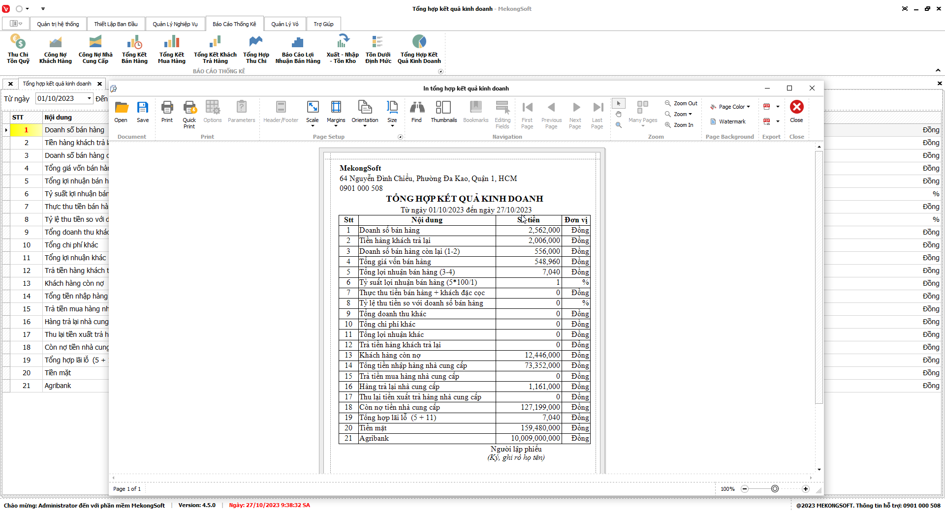 2. Nhấp vào Print để in báo cáo tổng hợp kết quả kinh doanh