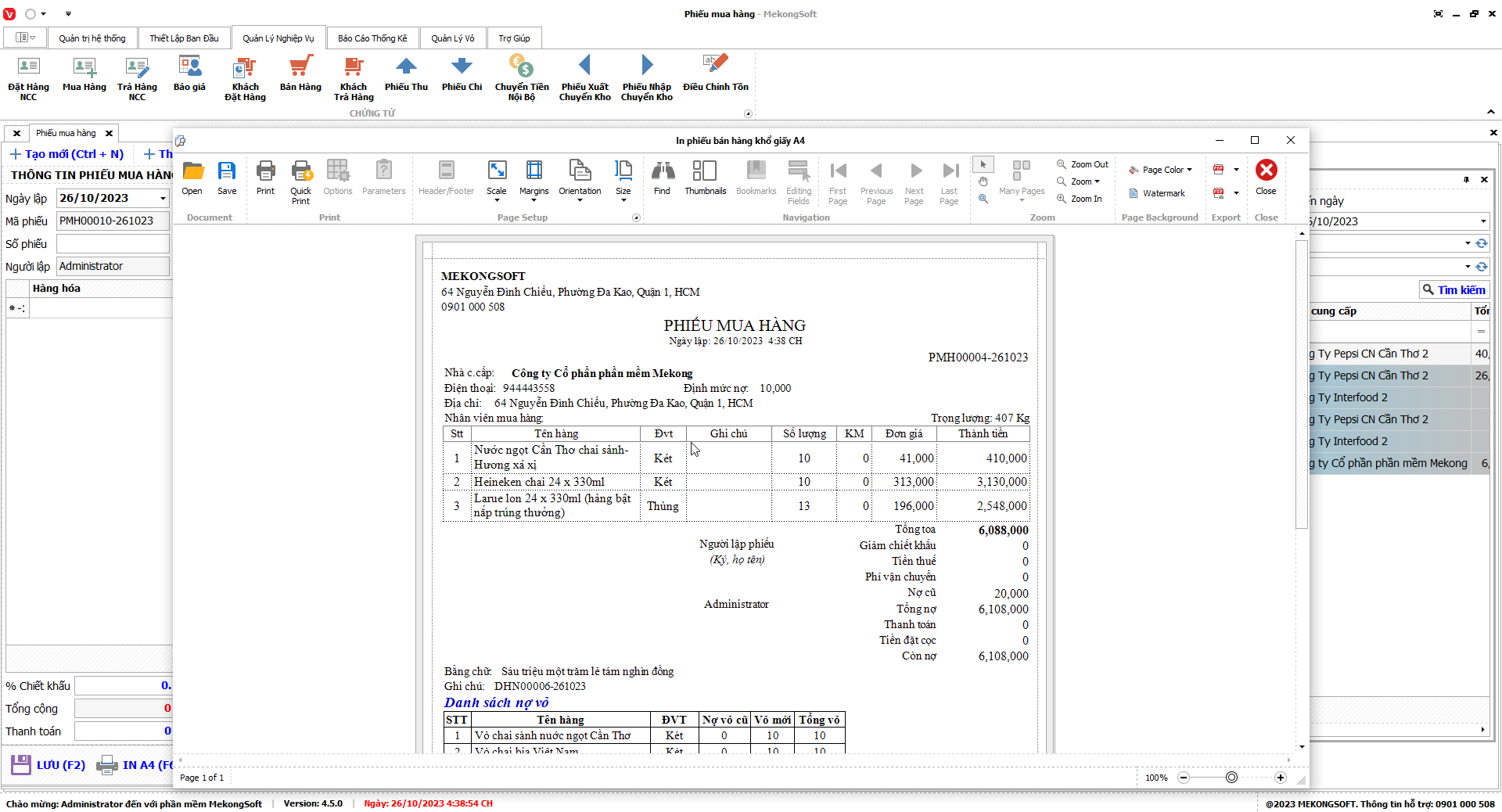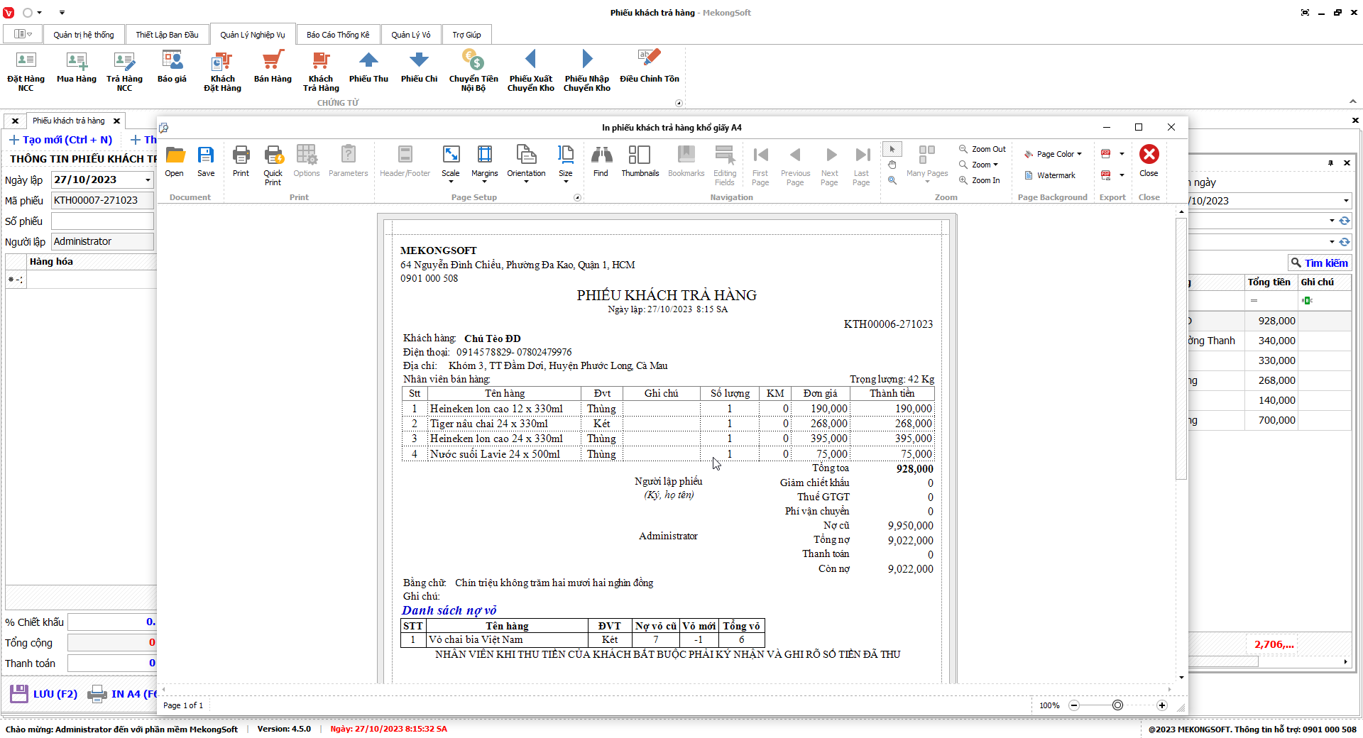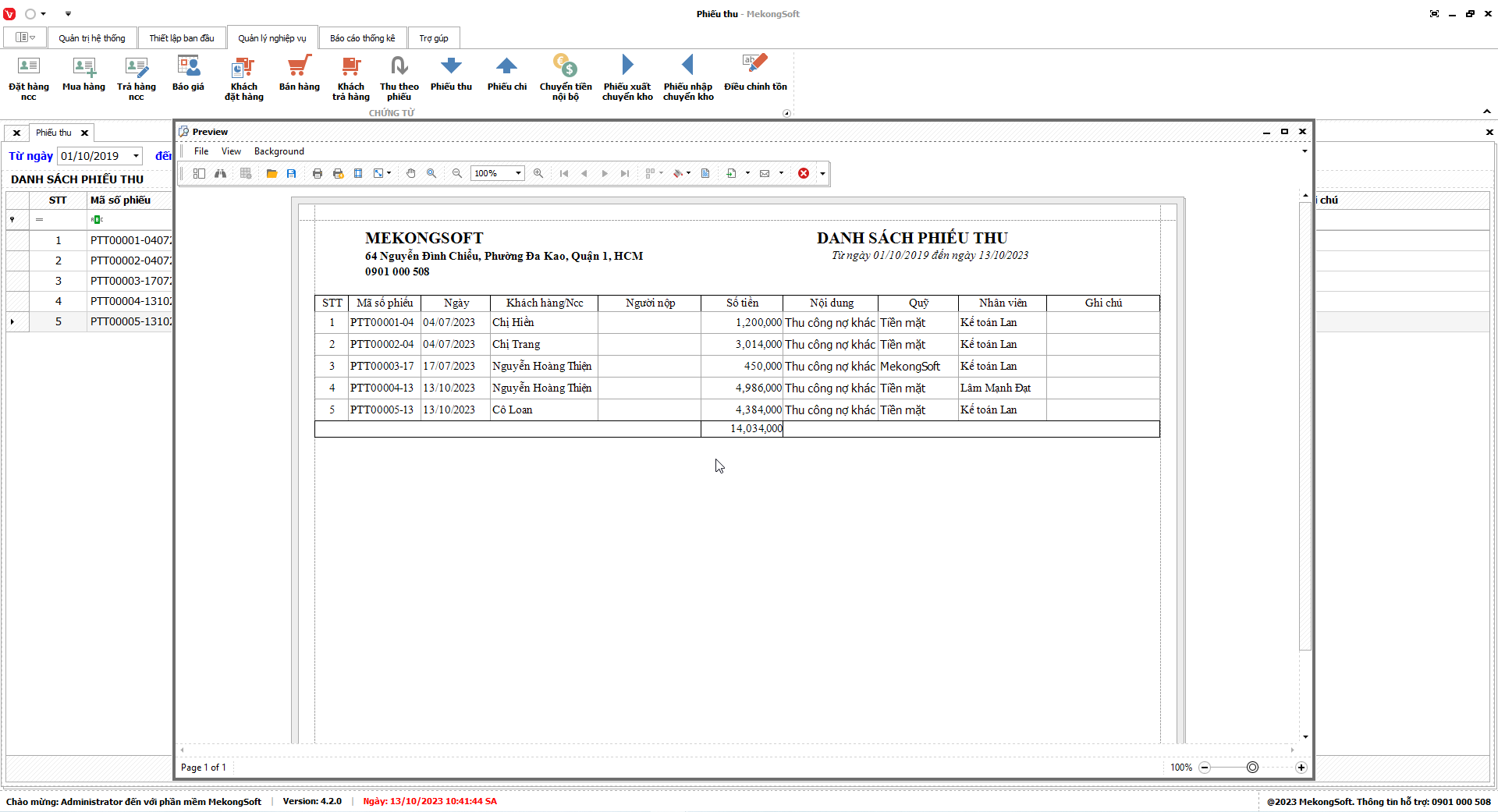 Để in Doanh số theo nhân viên trên phần mềm quản lý bán hàng bia, nước ngọt, bạn có thể thực hiện theo các bước sau: