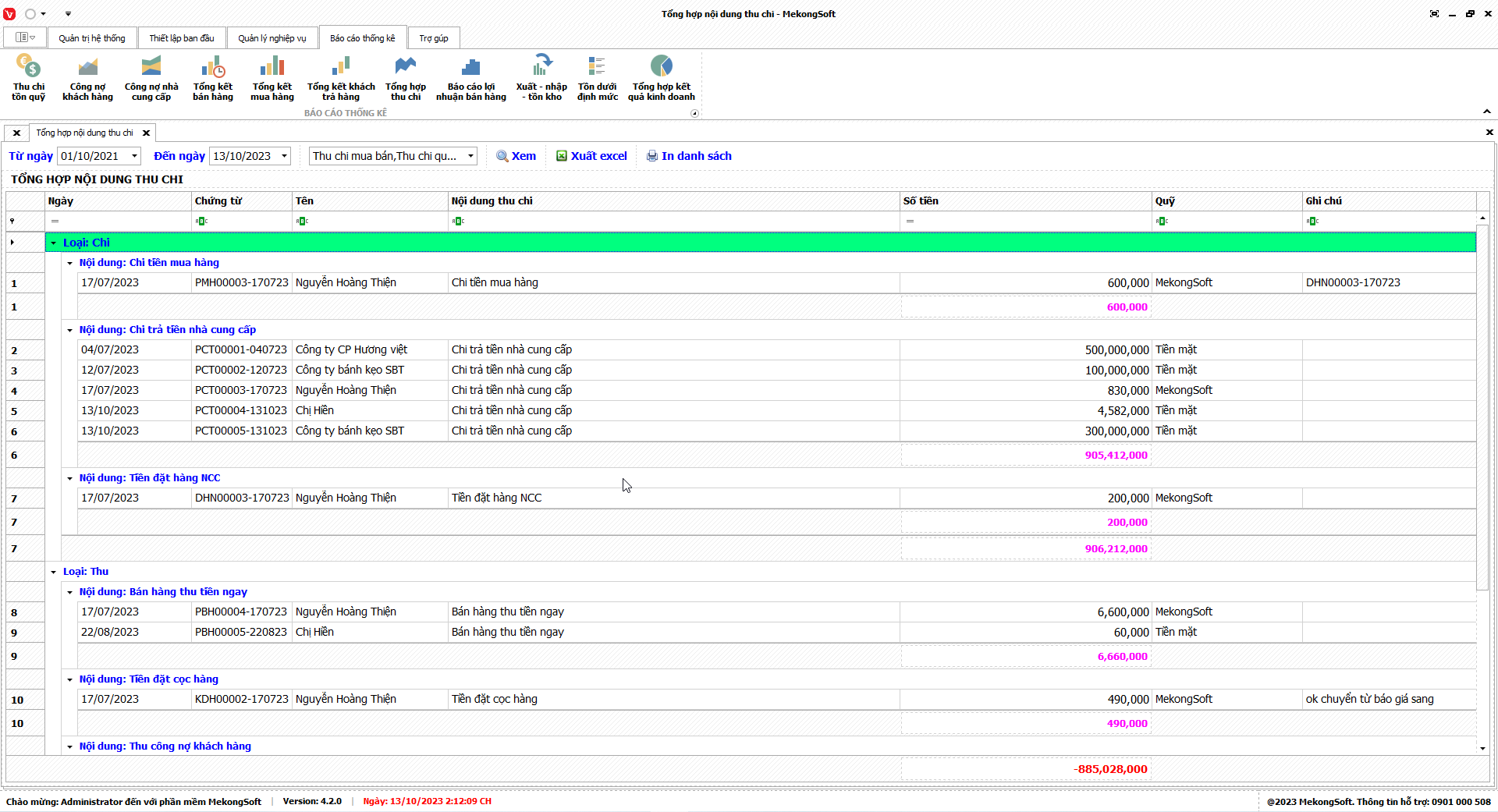 § Xuất excel tổng hợp kết quả kinh doanh