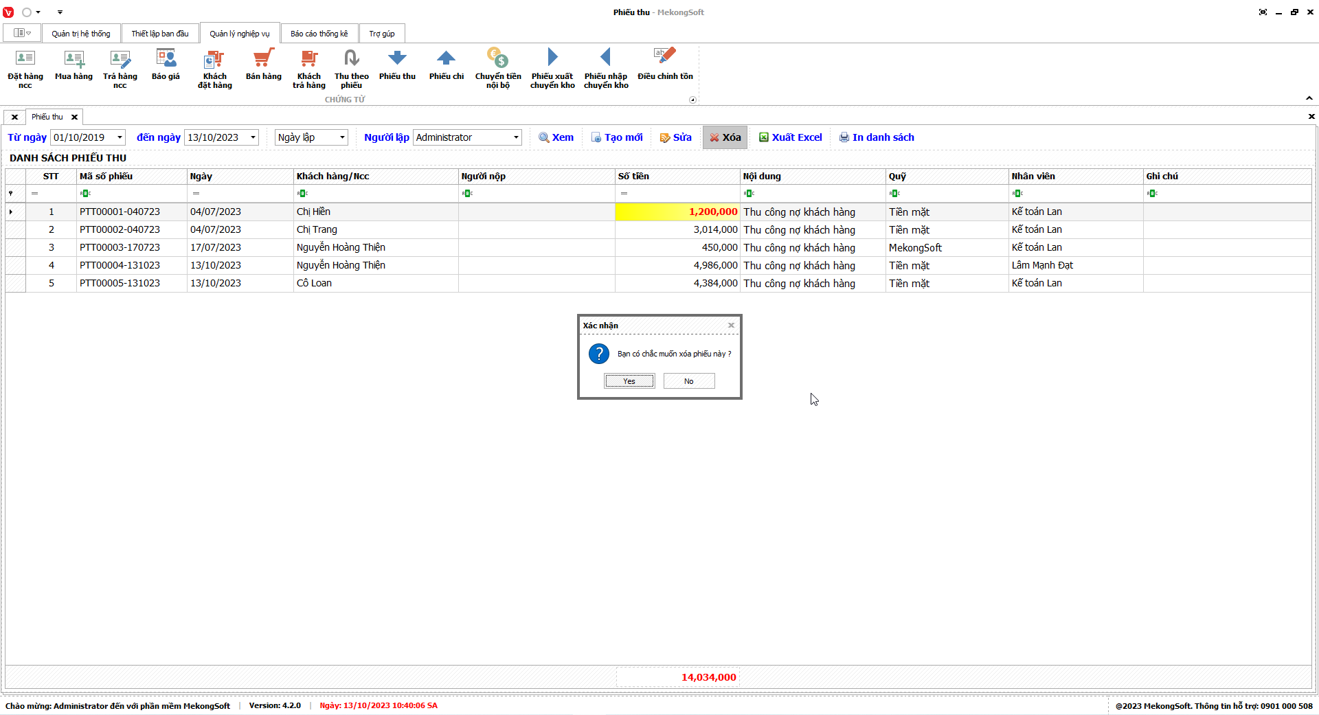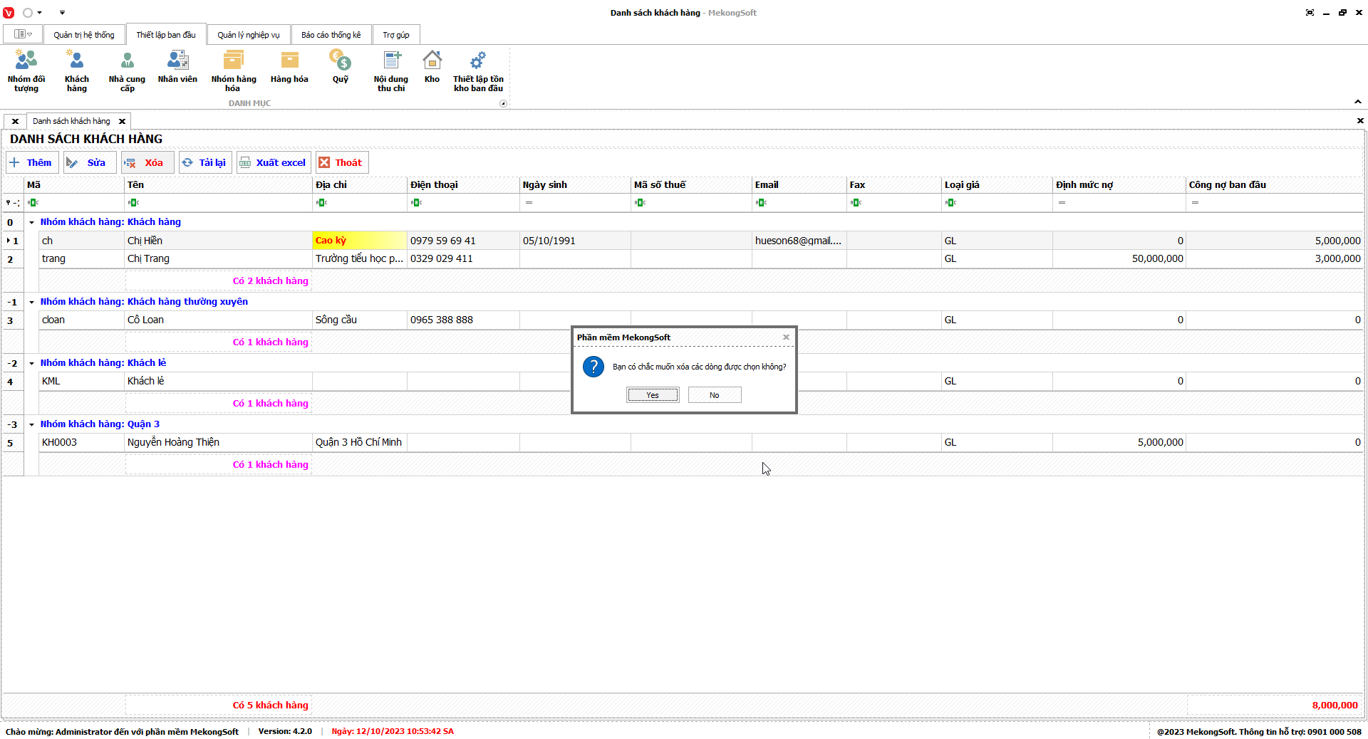 - Chỉ xóa những tài khoản chưa lập phiếu trên phần mềm.