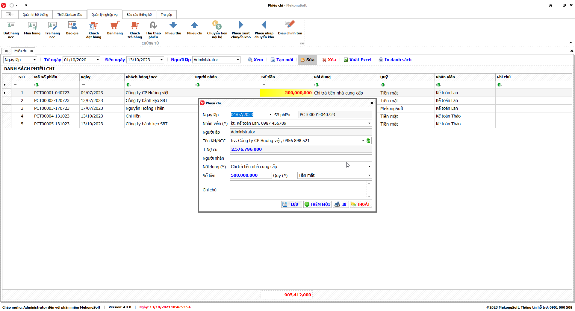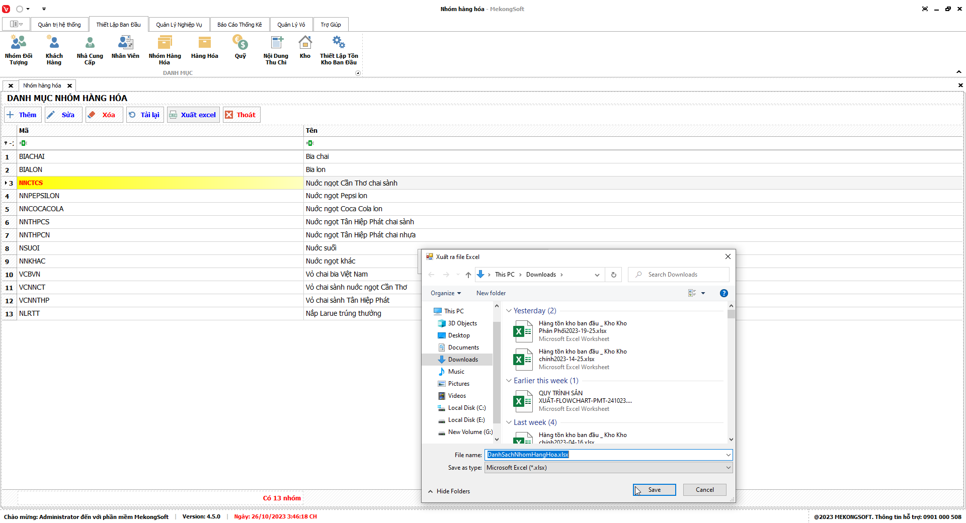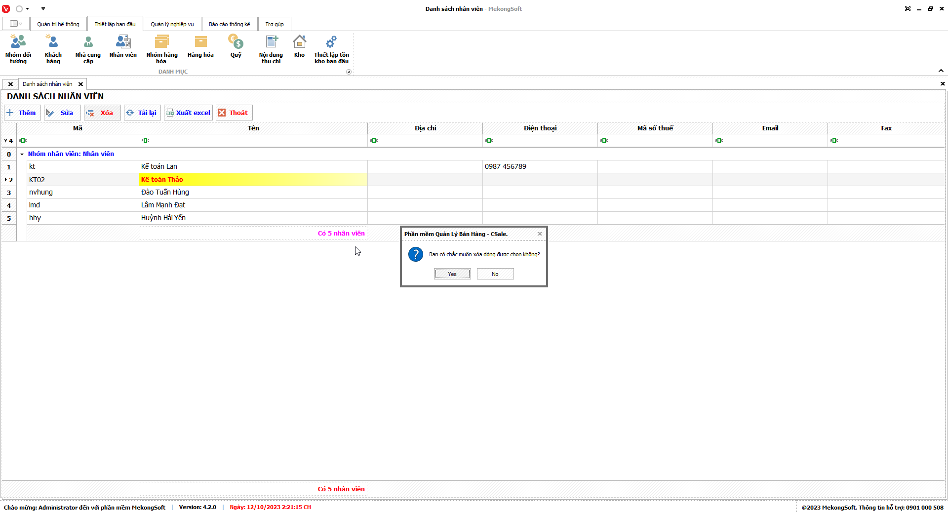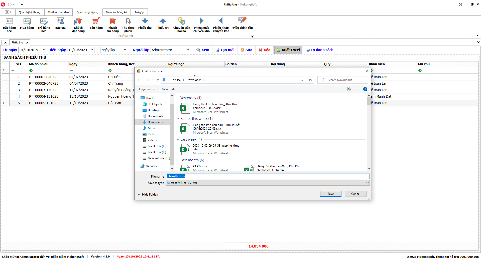 Phần mềm sẽ xuất Doanh số theo nhân viên dưới dạng file excel.