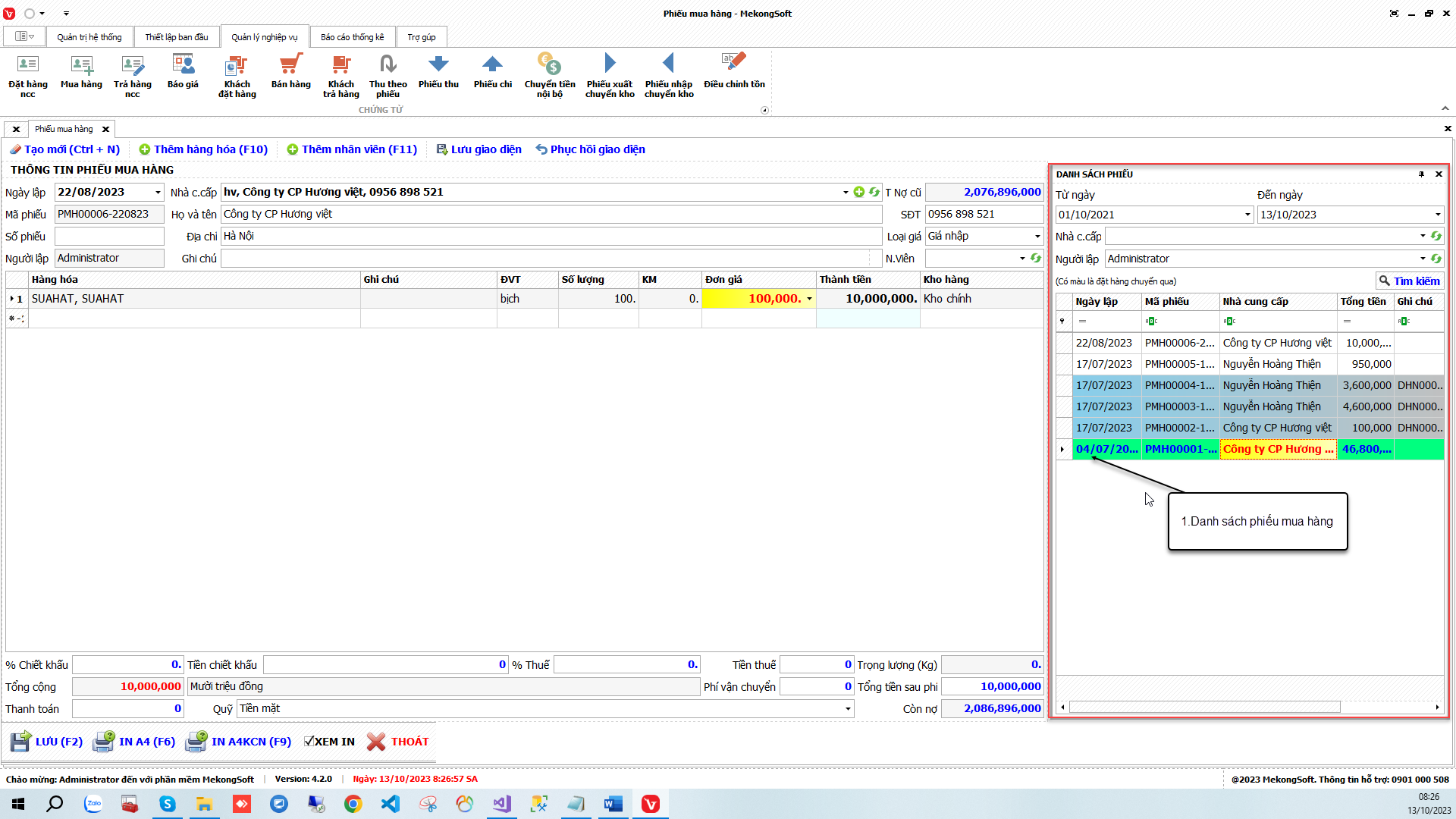 1. Đăng nhập vào phần mềm.