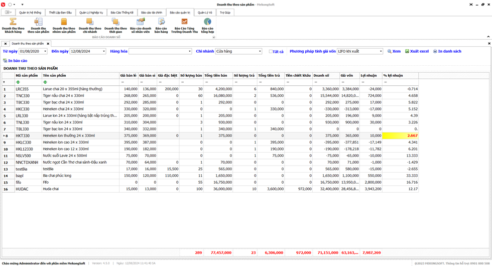Để in Doanh thu theo sản phẩm trên phần mềm quản lý bán hàng bia, nước ngọt, bạn có thể thực hiện theo các bước sau: