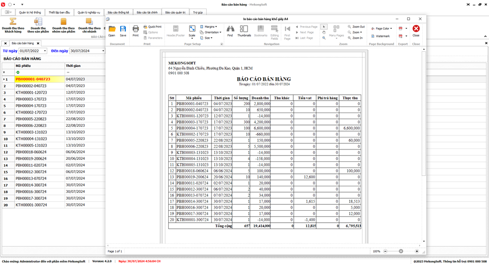 Để in Báo cáo bán hàng trên phần mềm quản lý bán hàng bia, nước ngọt bạn có thể thực hiện theo các bước sau:
