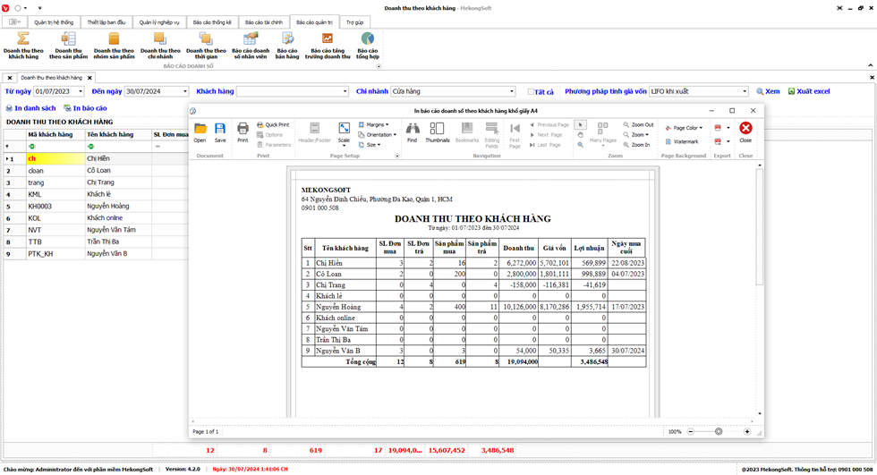 2. Nhấp vào Print để in Doanh thu theo sản phẩm
