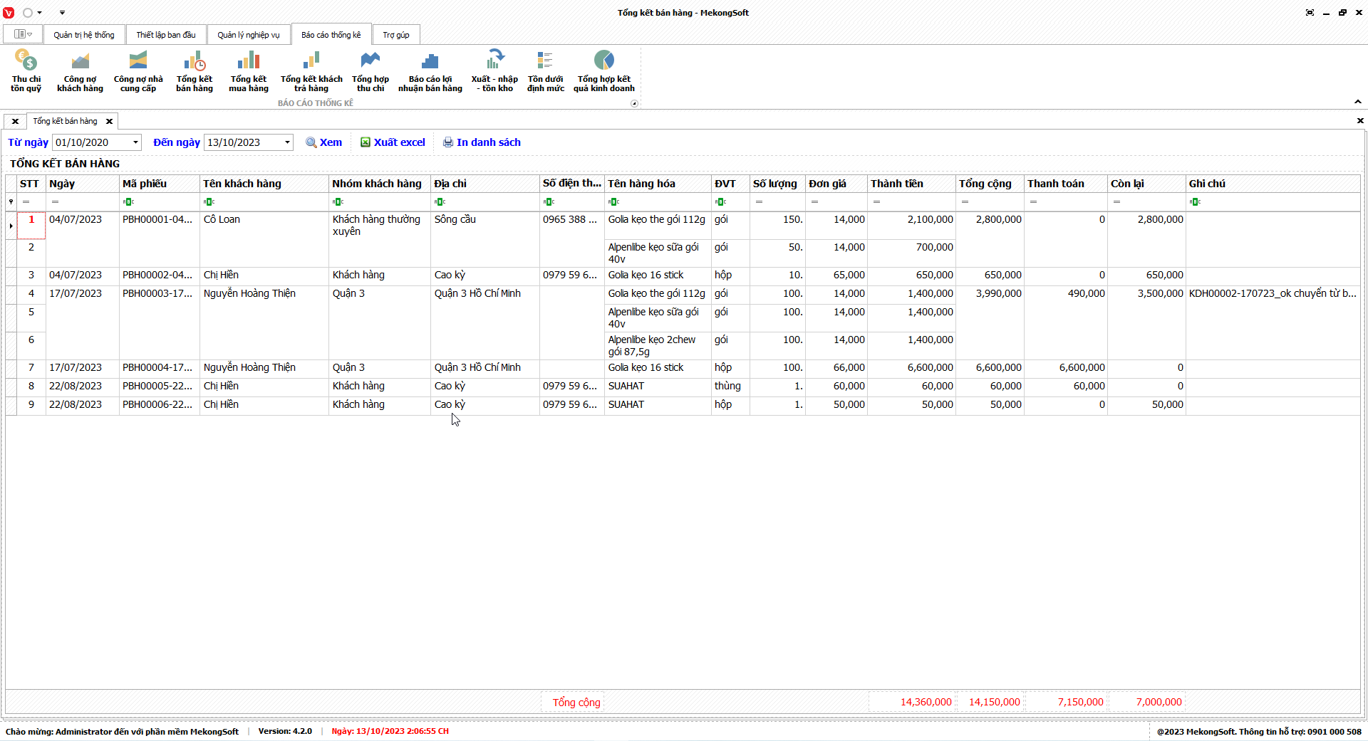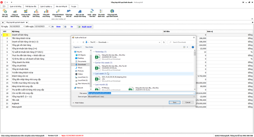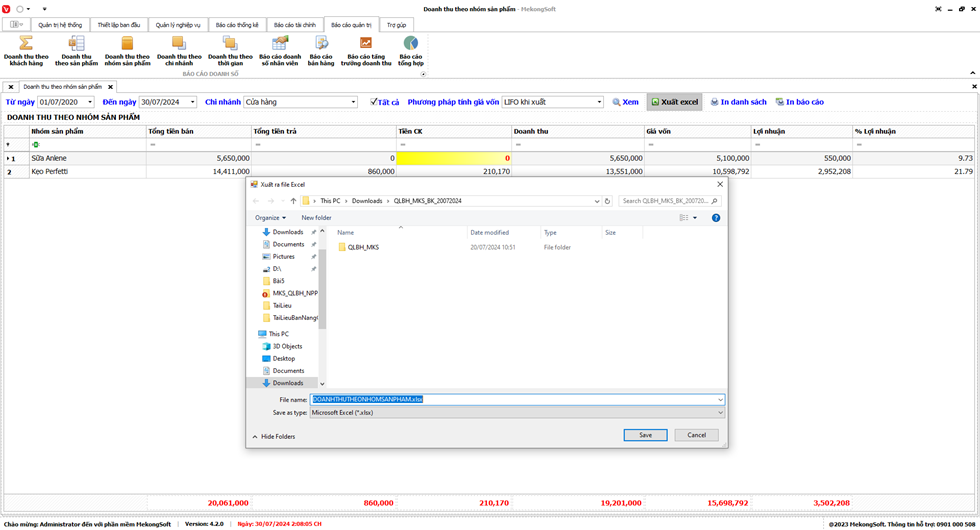 Phần mềm sẽ xuất Báo cáo bán hàng dưới dạng file excel.