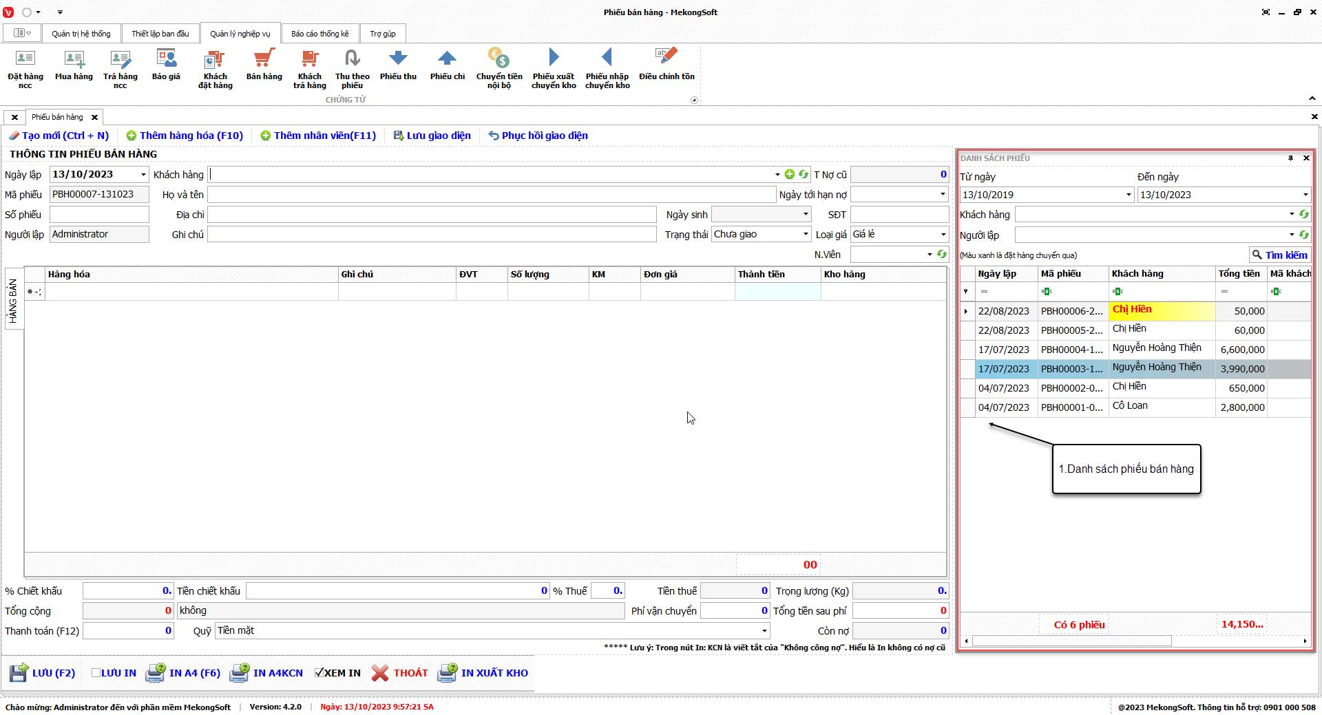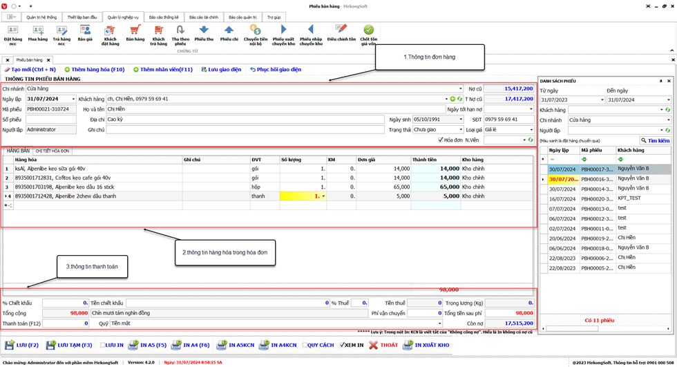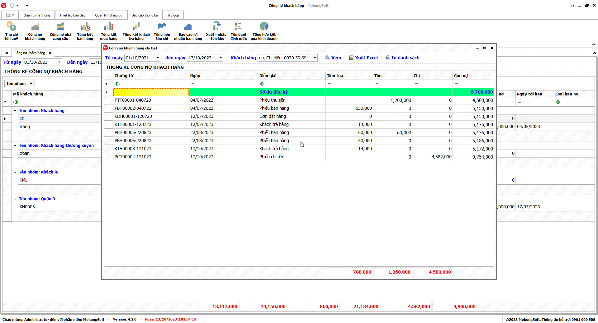 Bạn có thể sử dụng bộ lọc để tìm kiếm thông tin theo các tiêu chí như chi nhánh, tổng tiền bán, tiền trả, doanh số, …