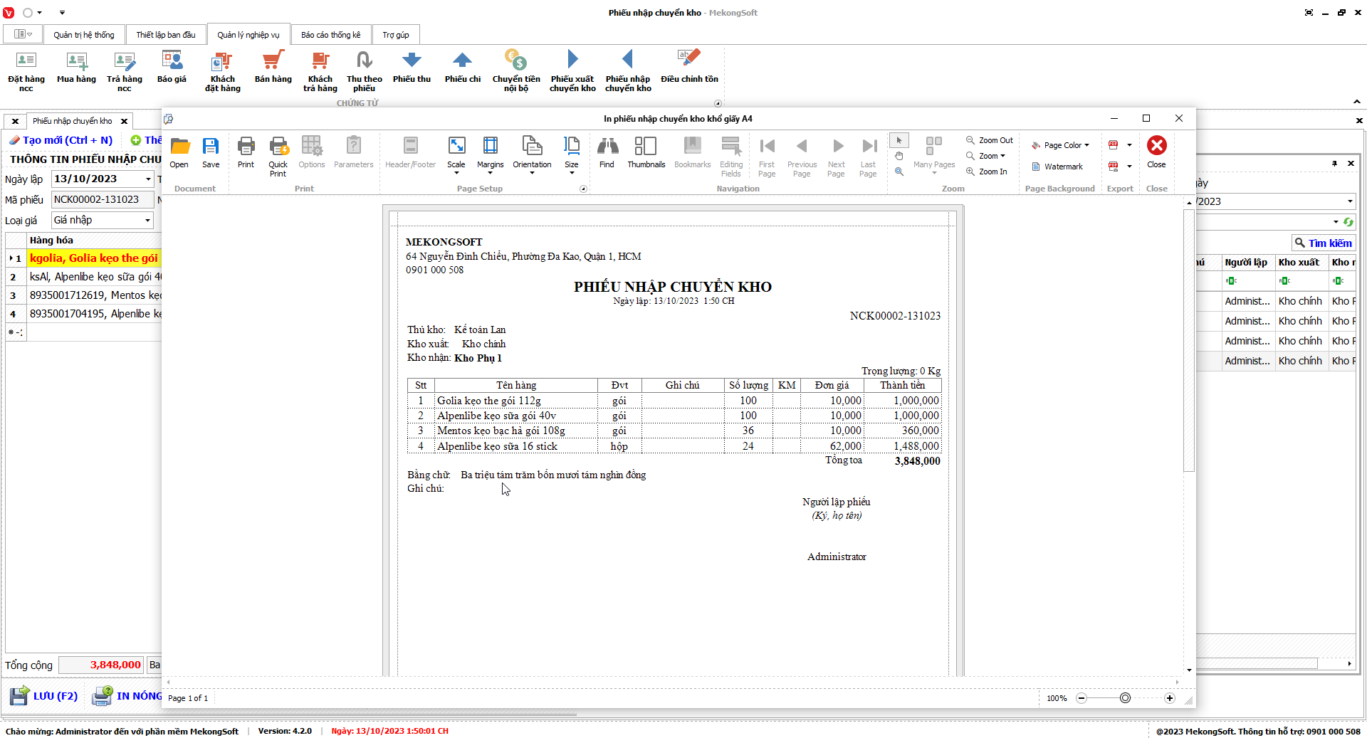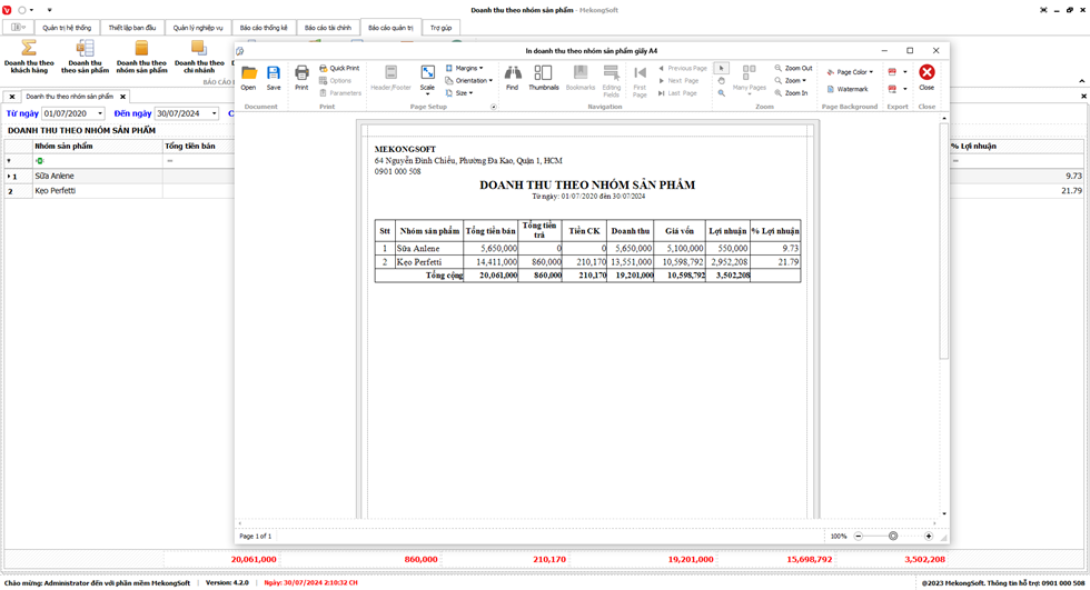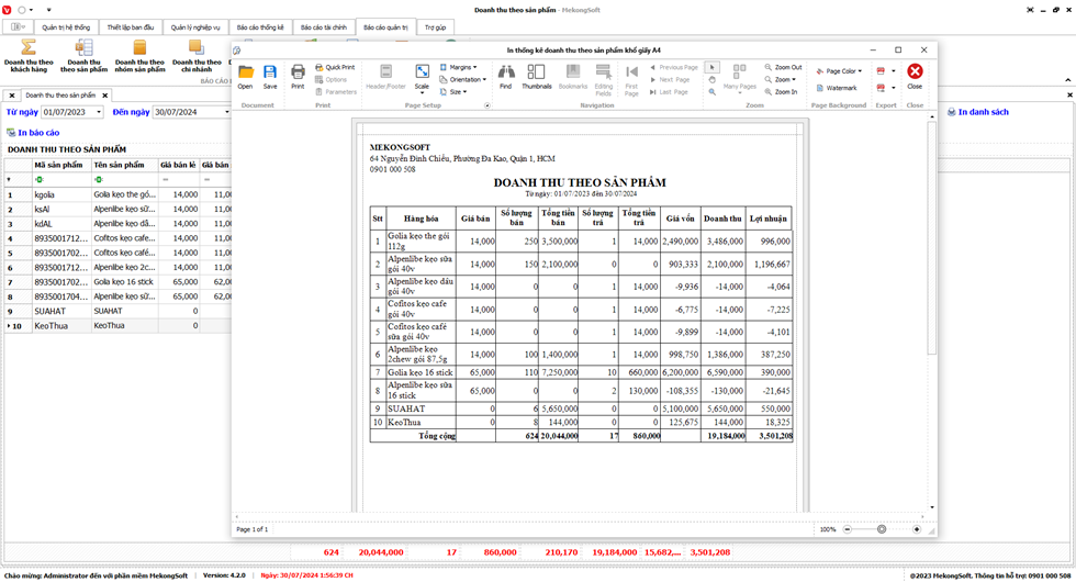 Để in Doanh thu theo thời gian trên phần mềm quản lý bán hàng nhà phân phối hàng tiêu dùng, bạn có thể thực hiện theo các bước sau: