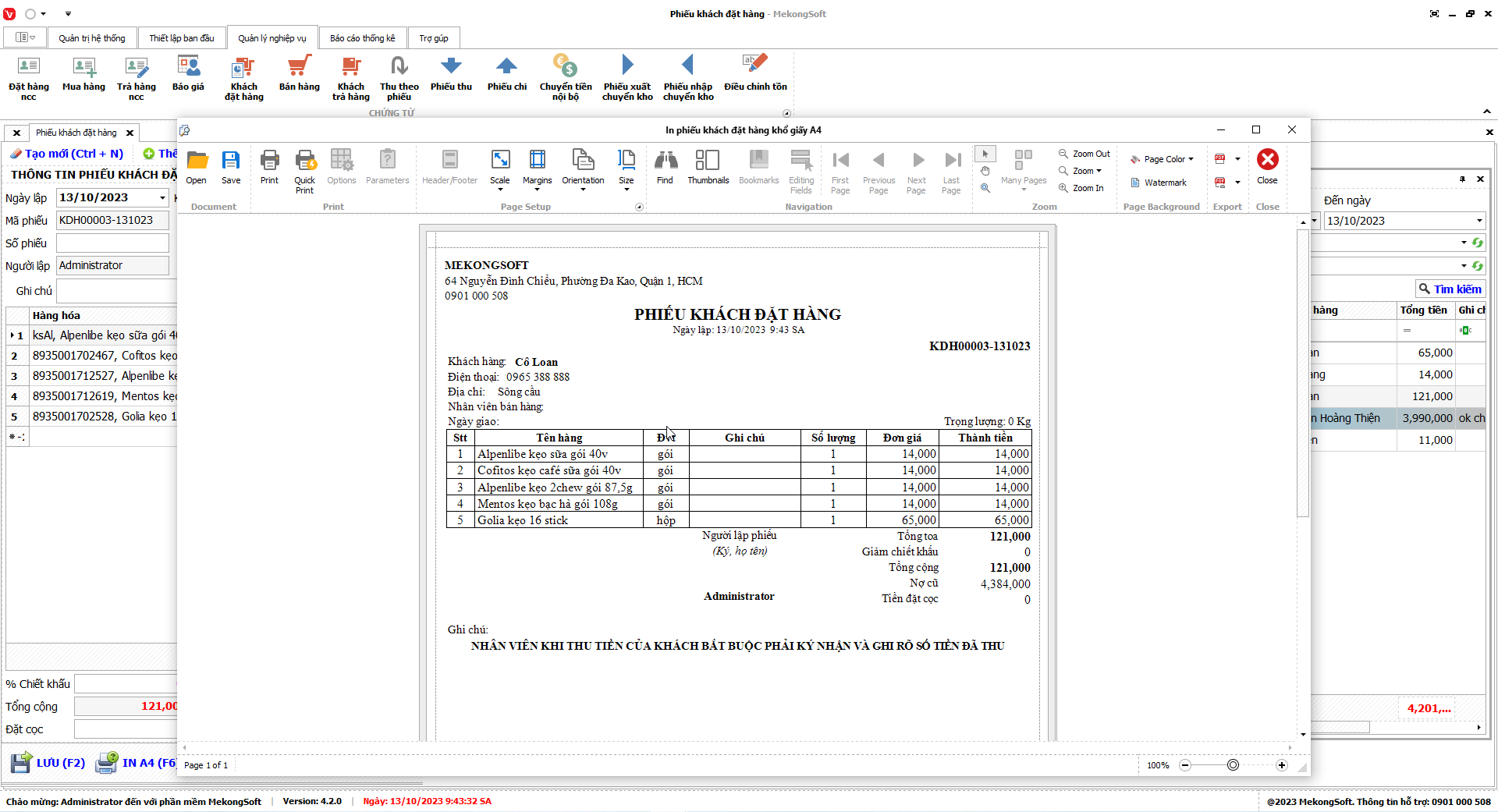 2. Nhấp vàoPrint để in Báo cáo bán hàng