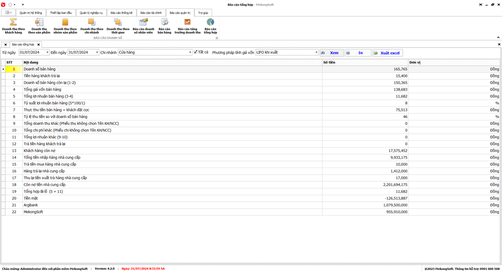 Để xuất excel báo cáo tổng hợp trên phần mềm quản lý bán hàng nhà phân phối hàng tiêu dùng, bạn có thể thực hiện theo các bước sau: