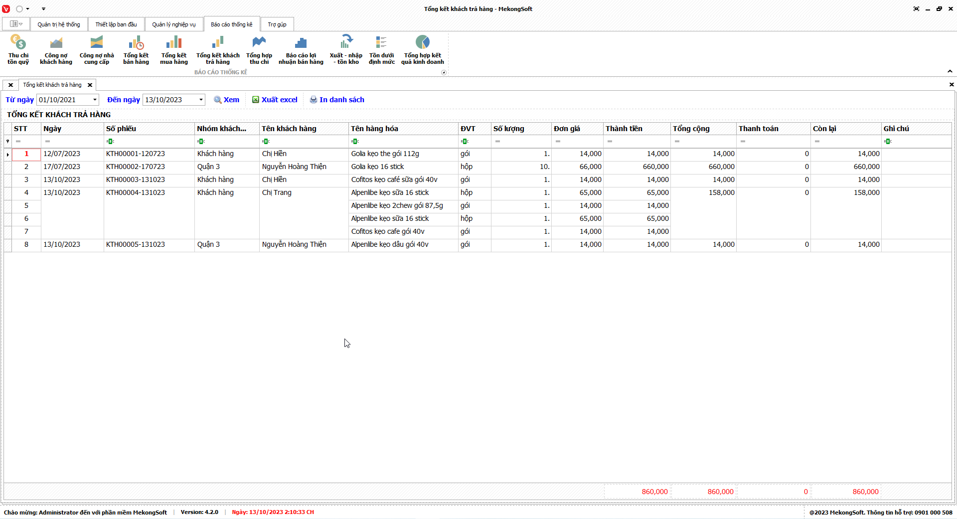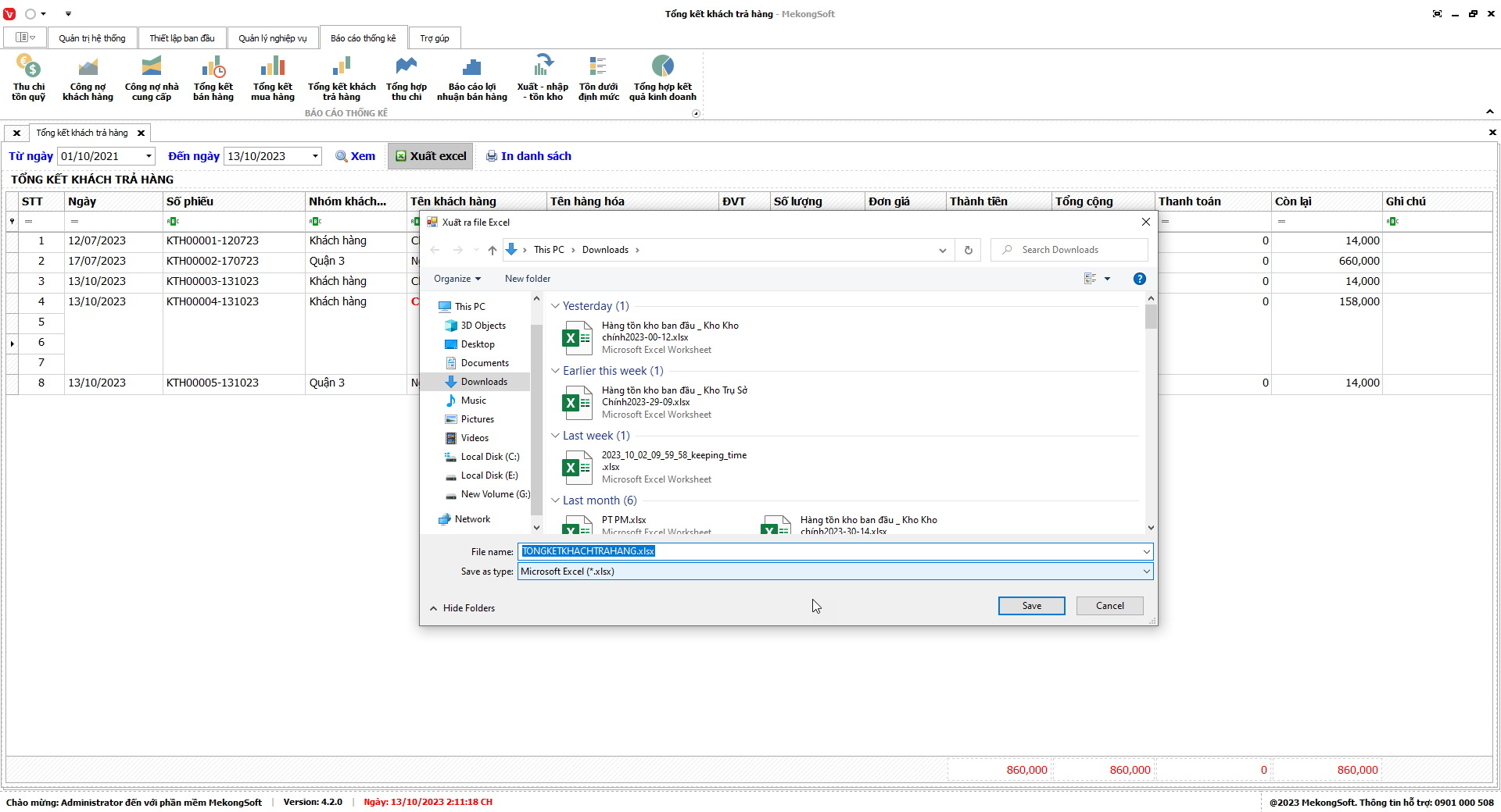 Phần mềm sẽ xuất Báo cáo tổng hợp dưới dạng file excel.