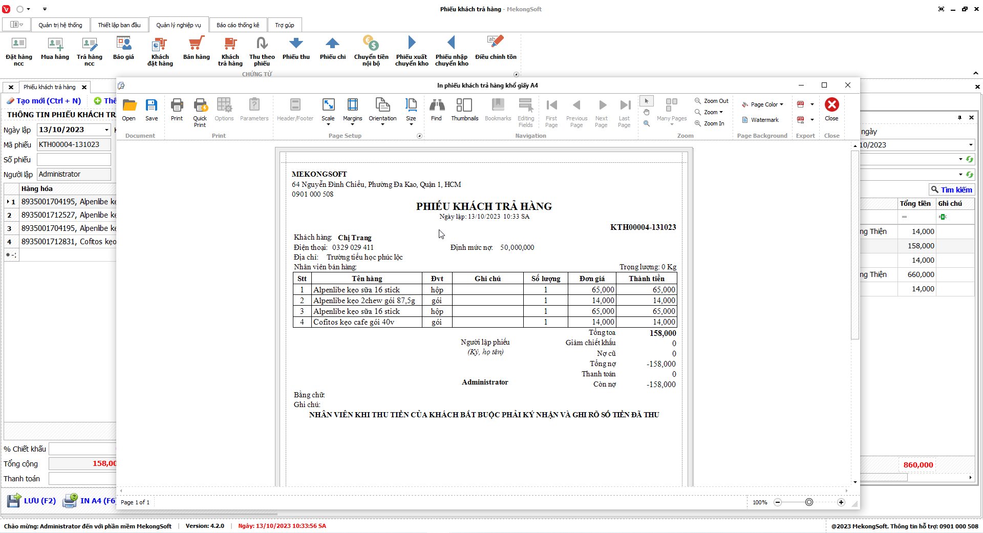 2. Nhấp vàoPrint để in Doanh thu theo chi nhánh