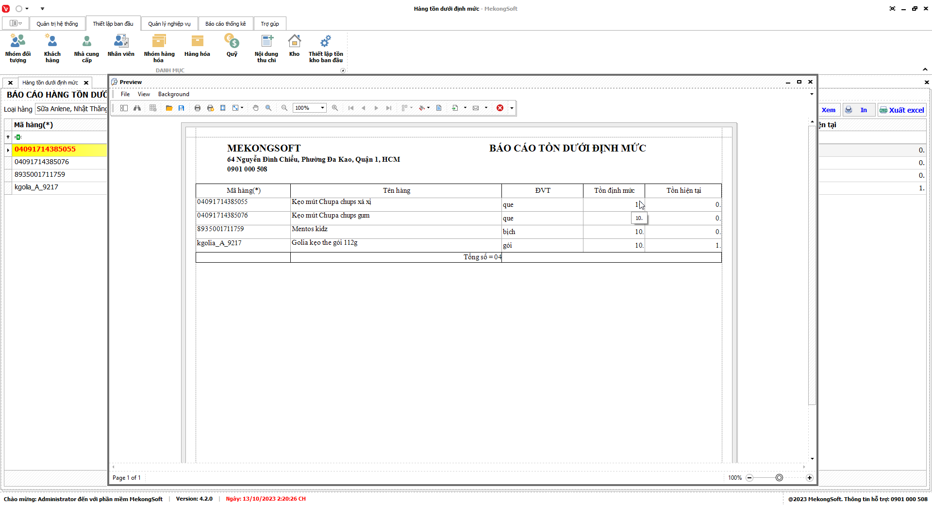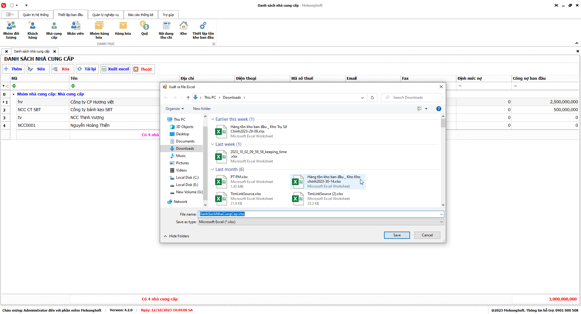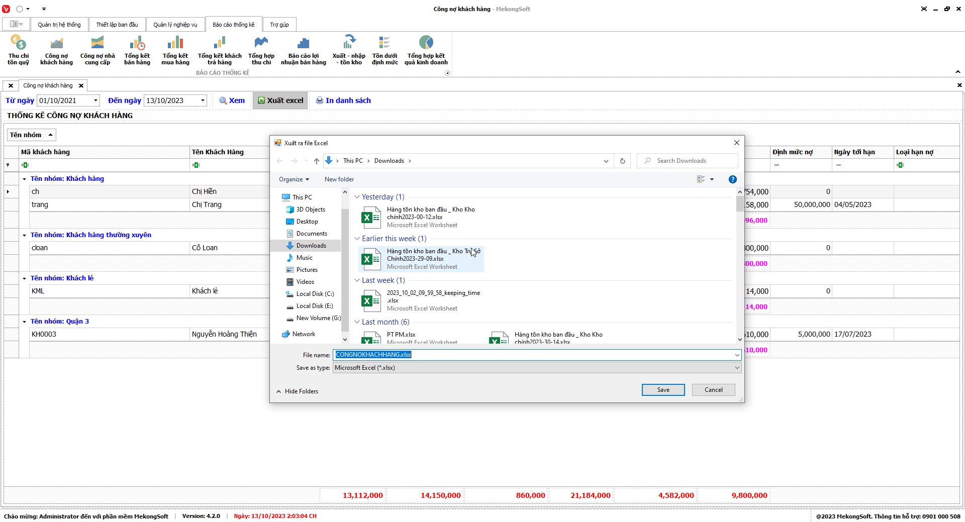 Phần mềm sẽ xuất Doanh số theo nhân viên dưới dạng file excel.