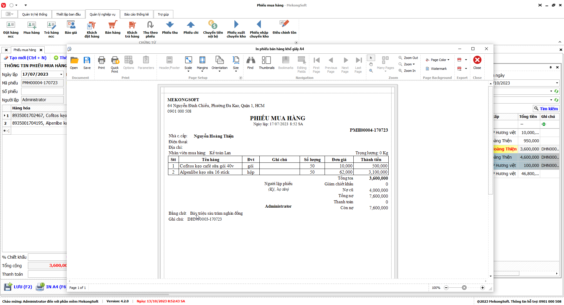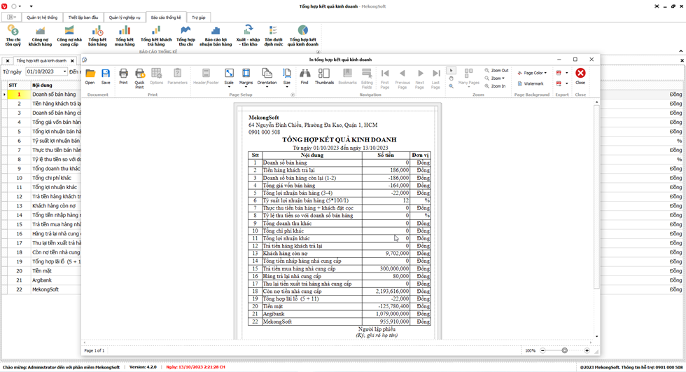 2. Nhấp vào Print để in báo cáo tổng hợp