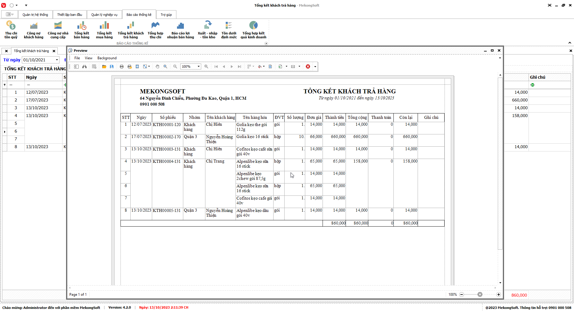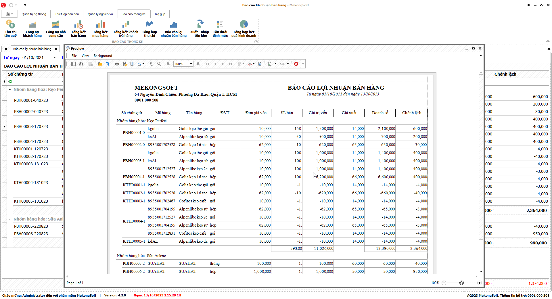 Báo cáo "Doanh thu theo thời gian" là một công cụ hữu ích giúp nhà phân phối theo dõi sát sao tình hình kinh doanh hàng ngày. Bằng cách hiển thị chi tiết doanh thu, lợi nhuận và các chỉ số liên quan trong từng ngày, báo cáo này giúp doanh nghiệp nắm bắt được xu hướng kinh doanh, phát hiện các vấn đề và cơ hội, từ đó đưa ra các quyết định kinh doanh kịp thời và hiệu quả.