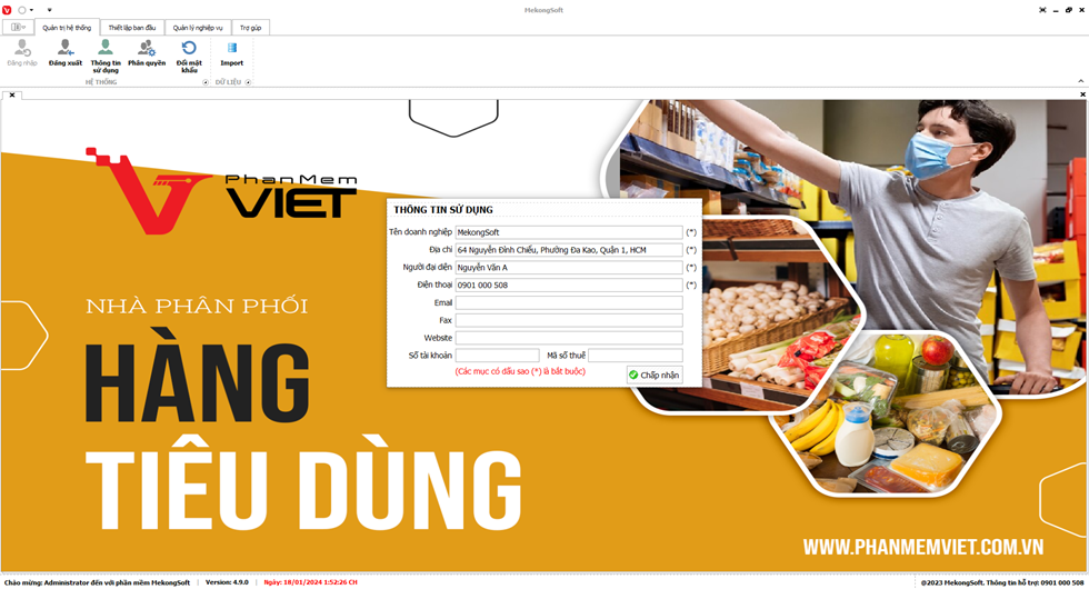 Để thiết lập thông tin sử dụng trên phần mềm quản lý bán hàng nhà phân phối hàng tiêu dùng, bạn có thể thực hiện theo các bước sau: