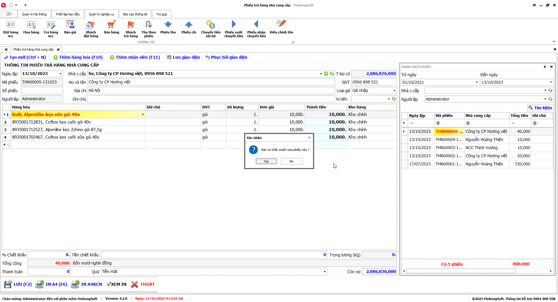 - Chỉ xóa những tài khoản chưa lập phiếu trên phần mềm.