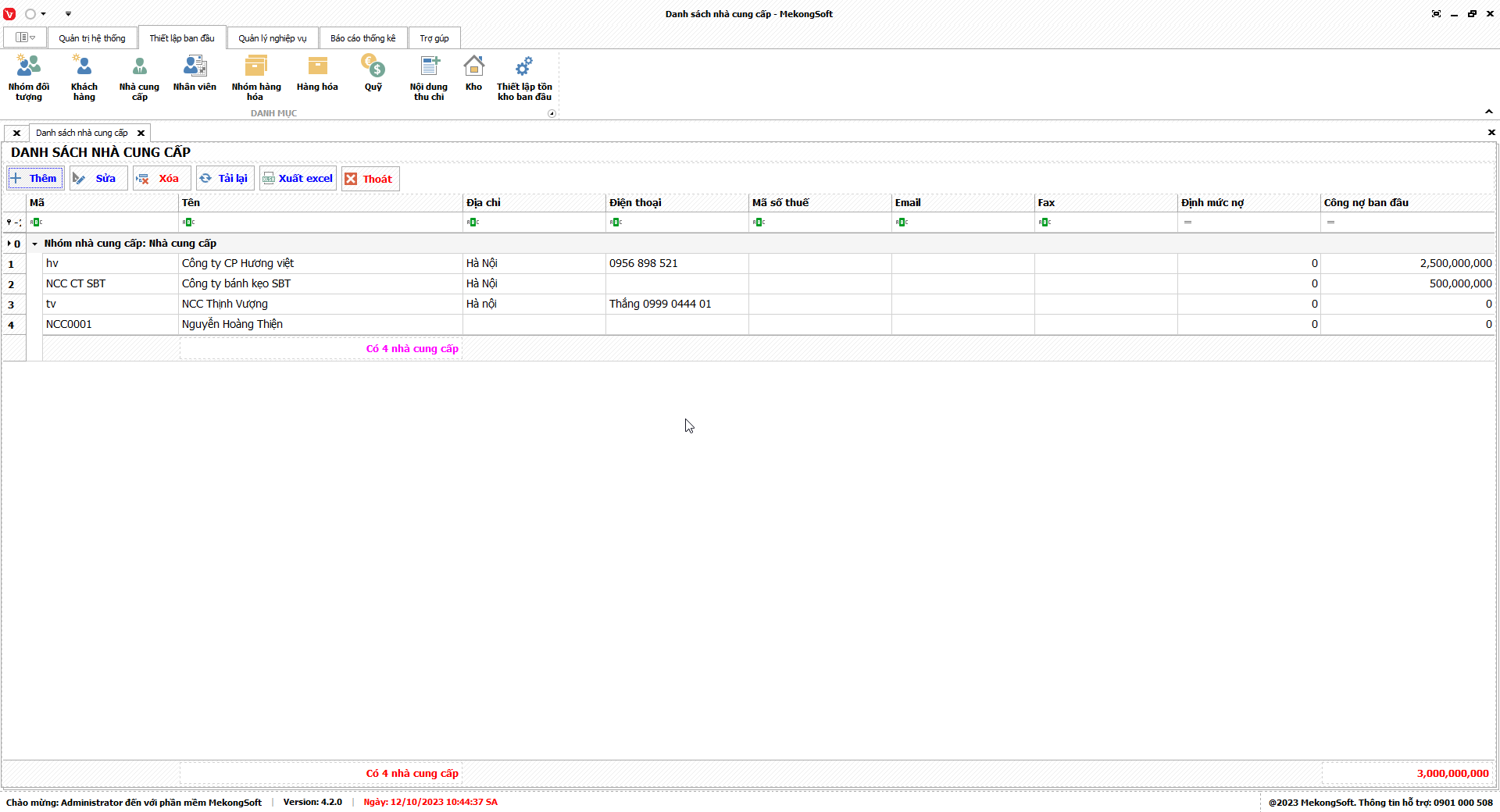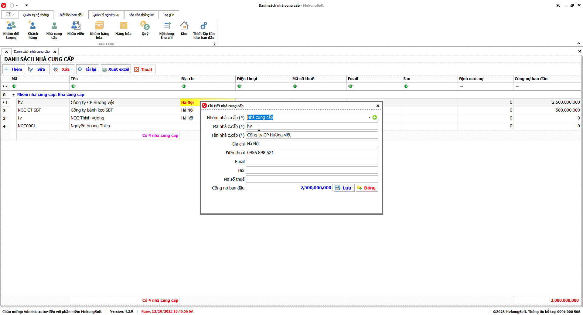 Chức năng thiết lập thông tin sử dụng của phần mềm quản lý bán hàng nhà phân phối hàng tiêu dùng là một chức năng quan trọng, giúp người dùng thiết lập các thông tin cơ bản của cửa hàng, doanh nghiệp, từ đó đảm bảo việc sử dụng phần mềm được chính xác và hiệu quả.