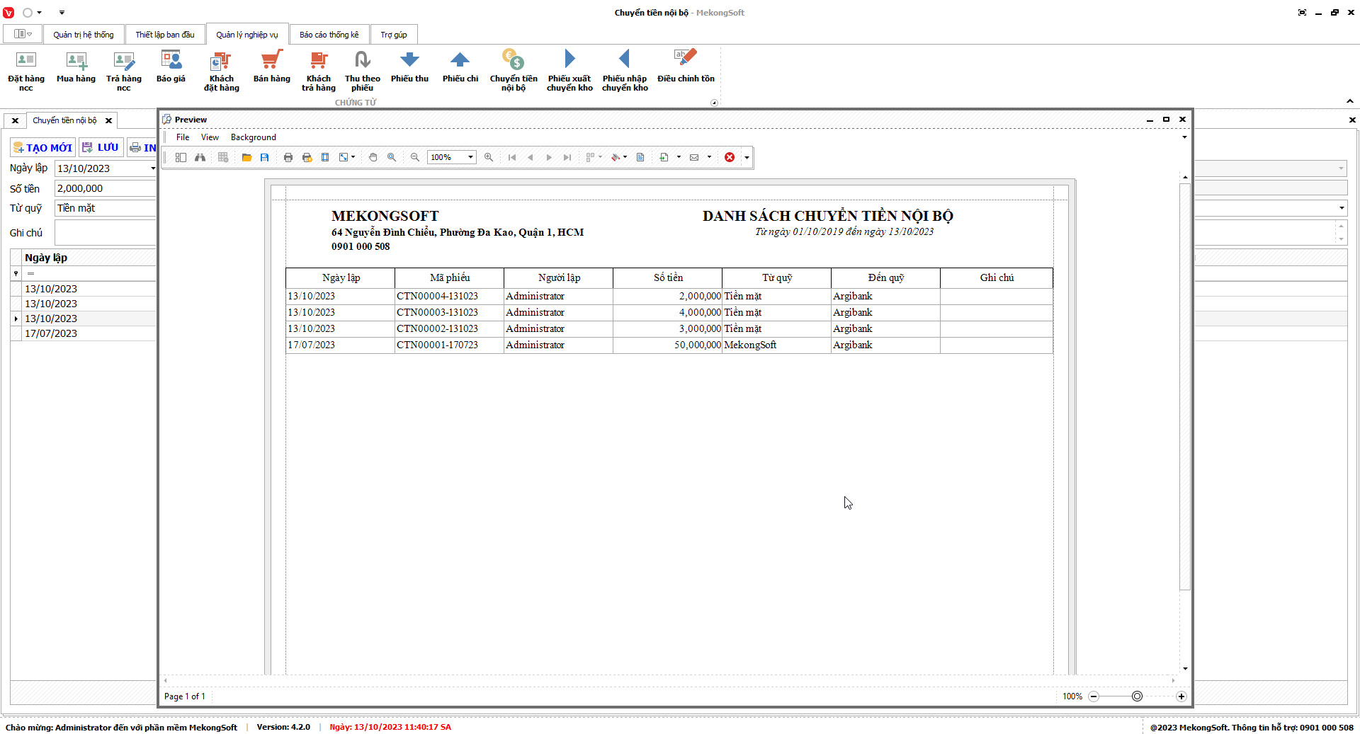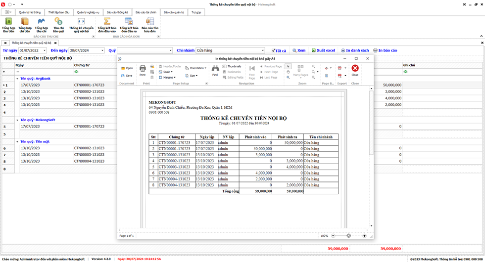 2. Nhấp vàoPrint để in Doanh thu theo chi nhánh