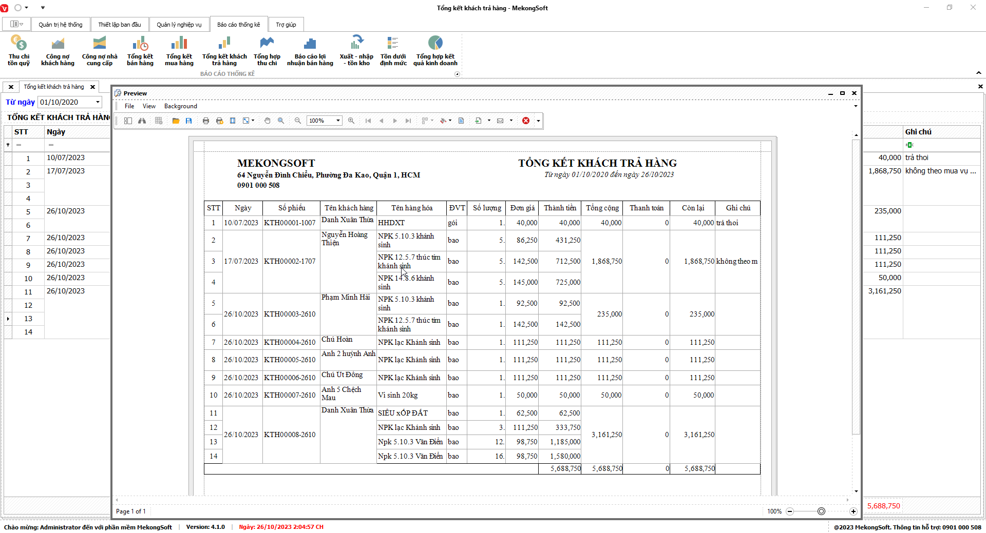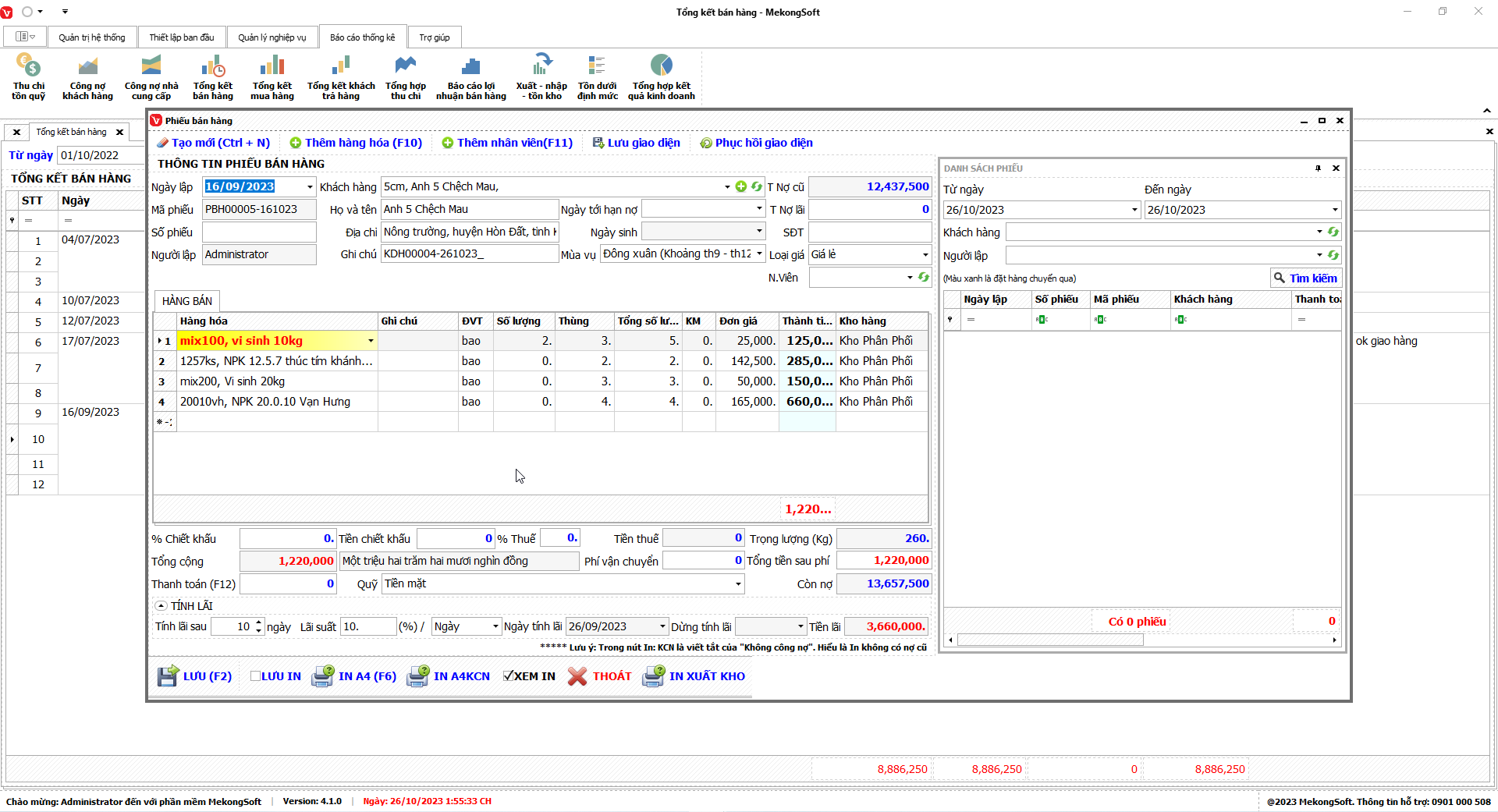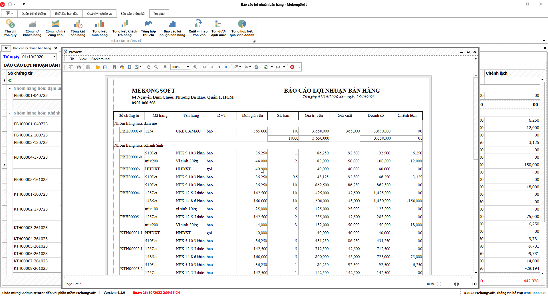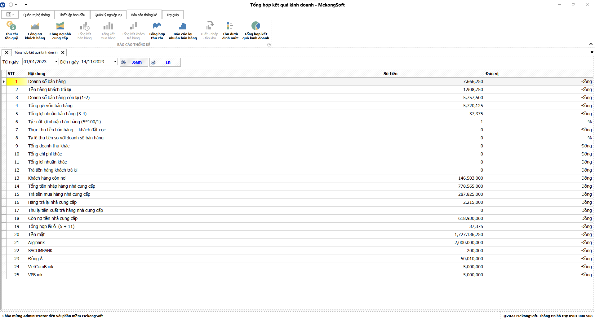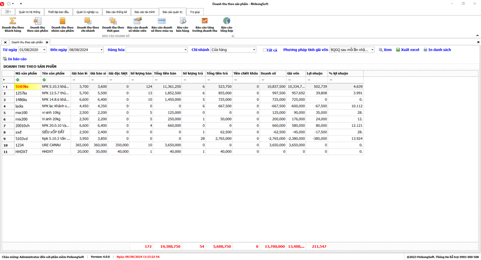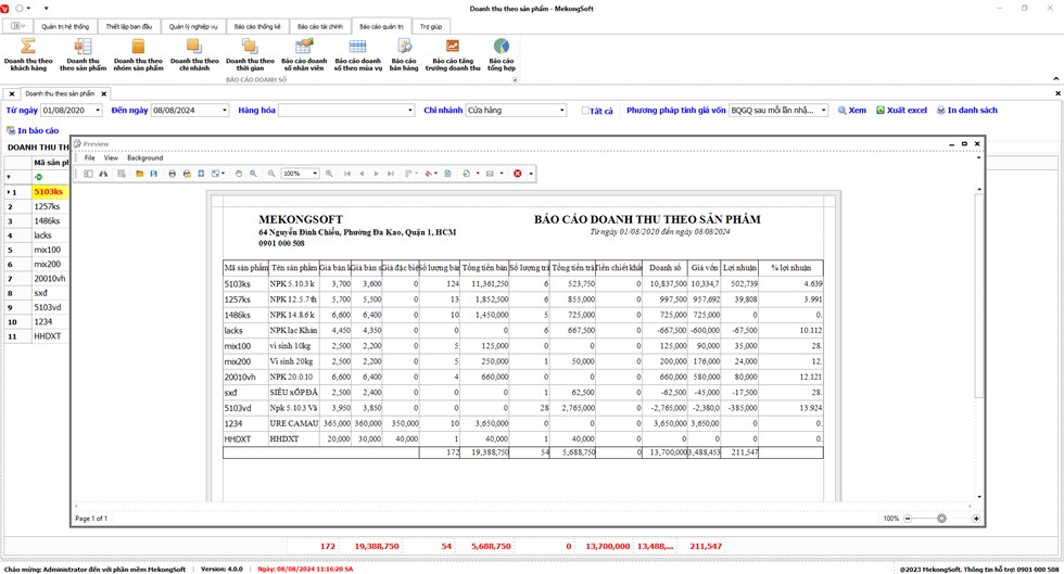 Chức năng tổng hợp kết quả kinh doanh là một tính năng quan trọng của phần mềm quản lý bán hàng vật tư nông nghiệp, giúp doanh nghiệp theo dõi và đánh giá tình hình kinh doanh một cách tổng quan.