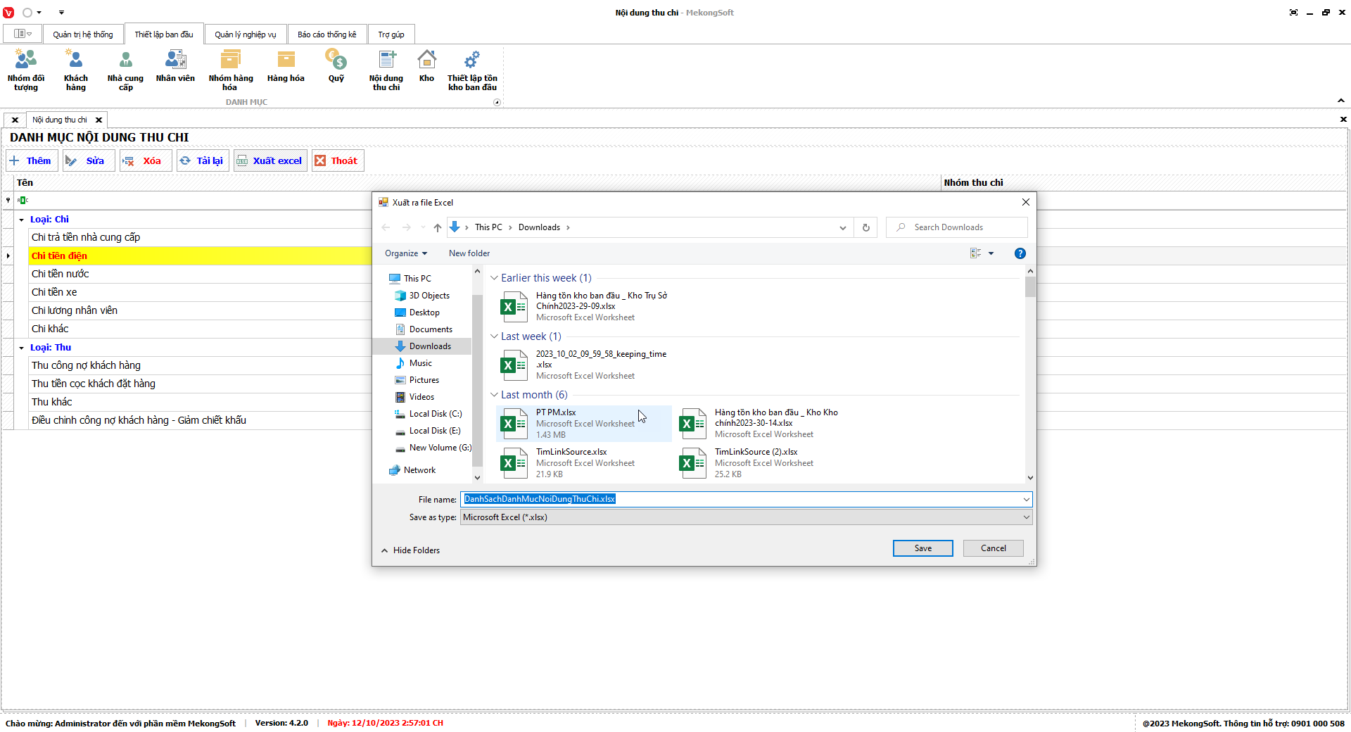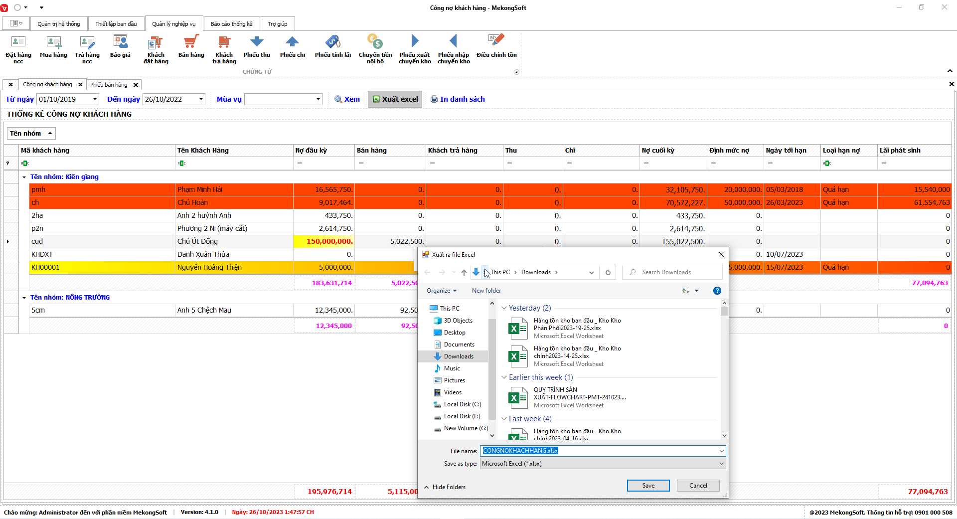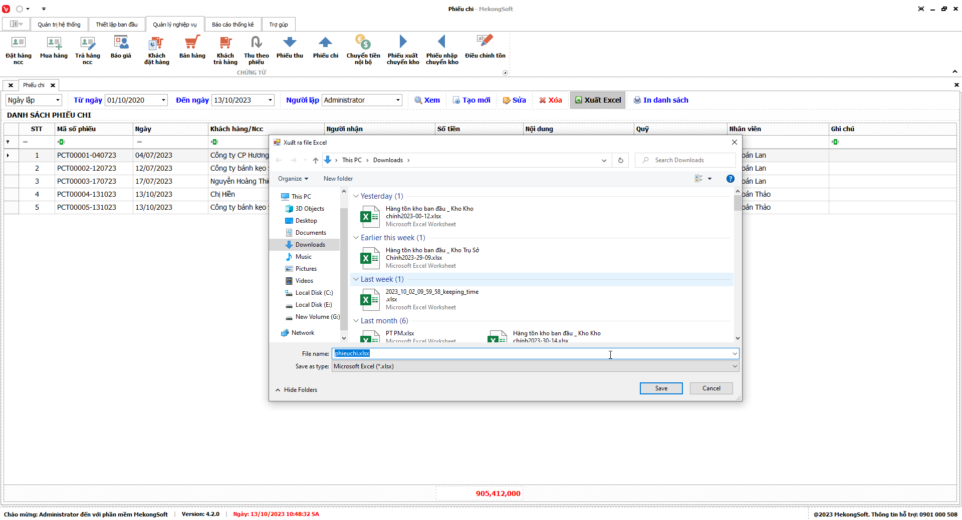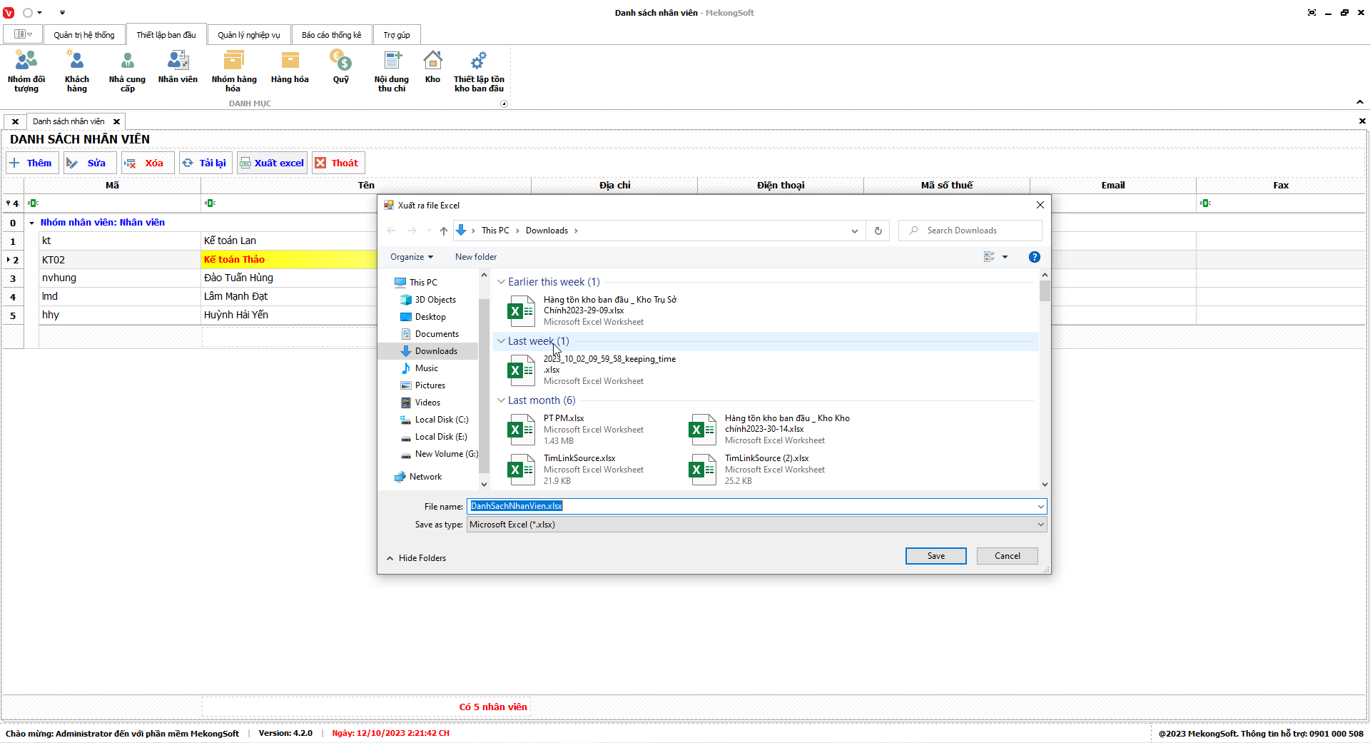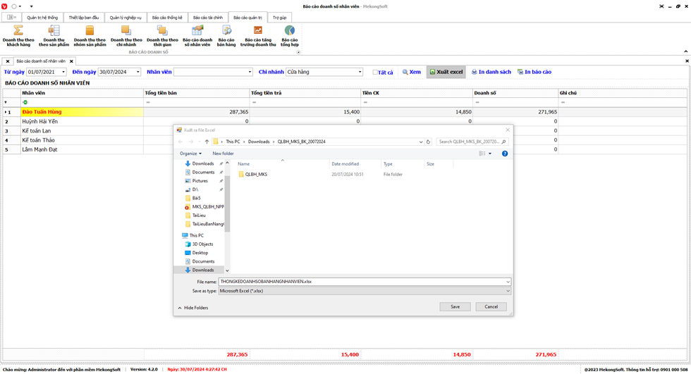 Phần mềm sẽ xuất Doanh số theo nhân viên dưới dạng file excel.