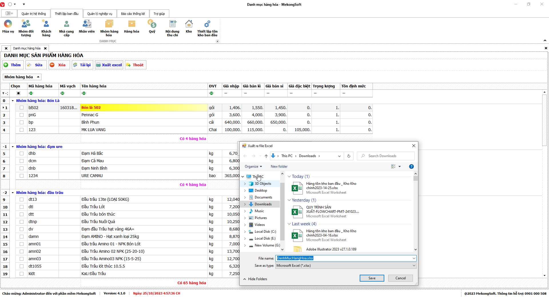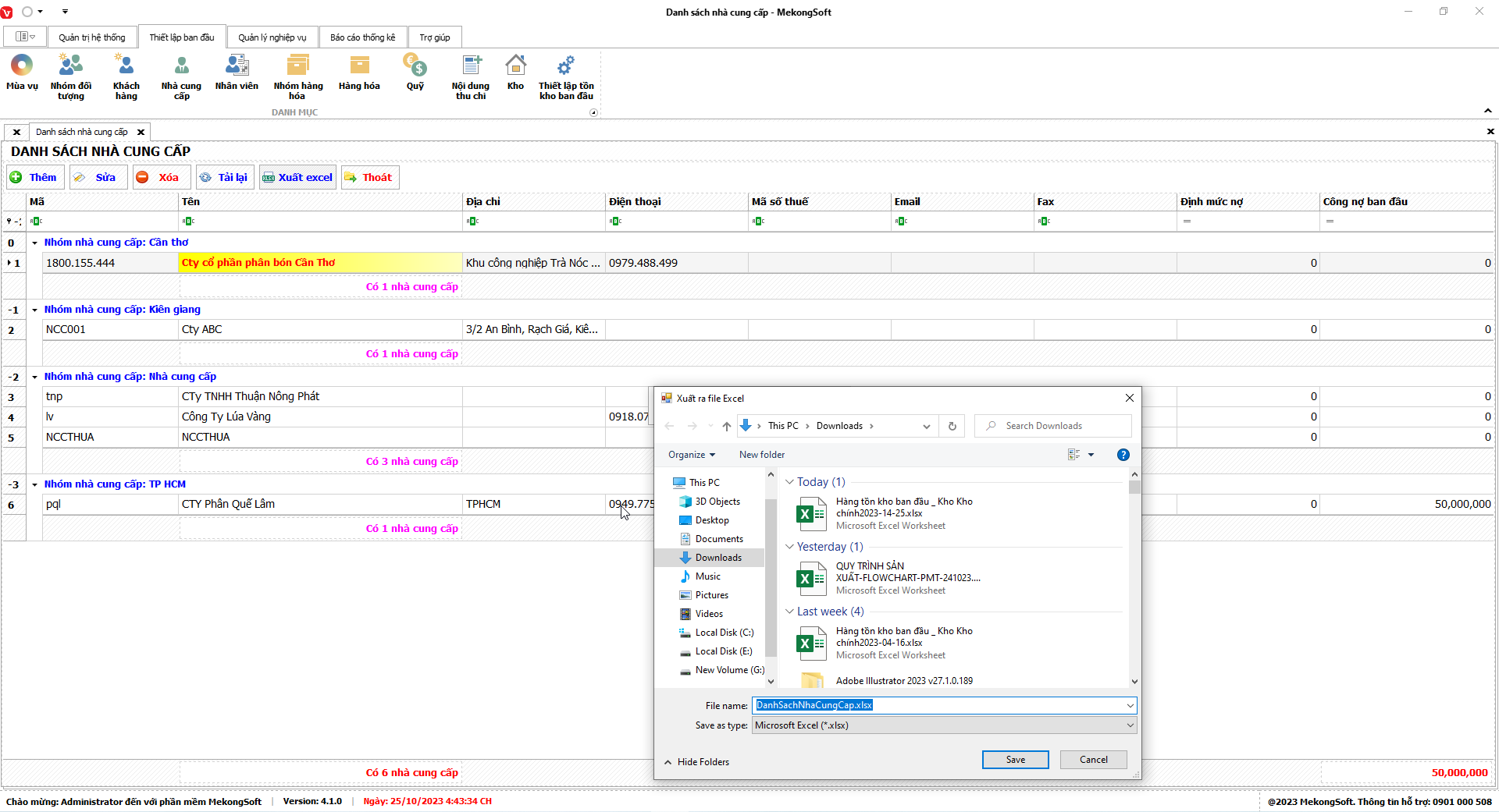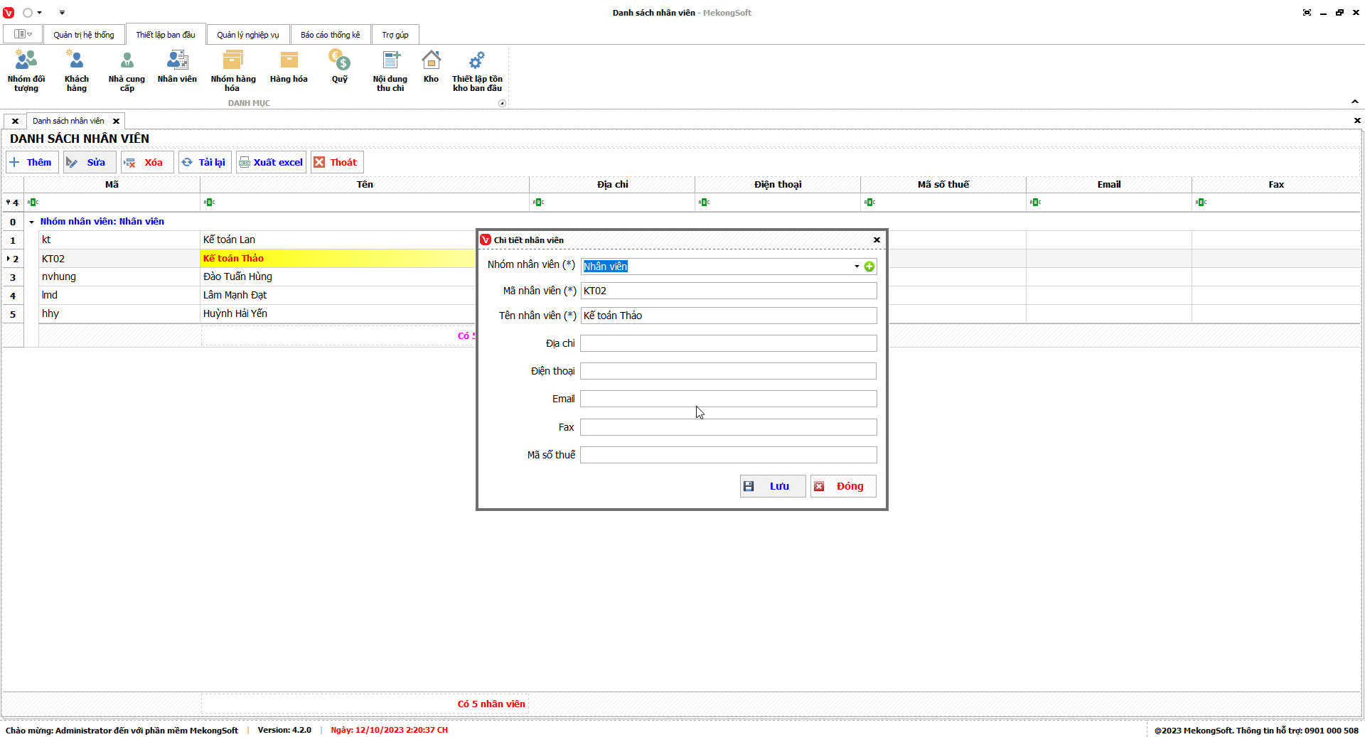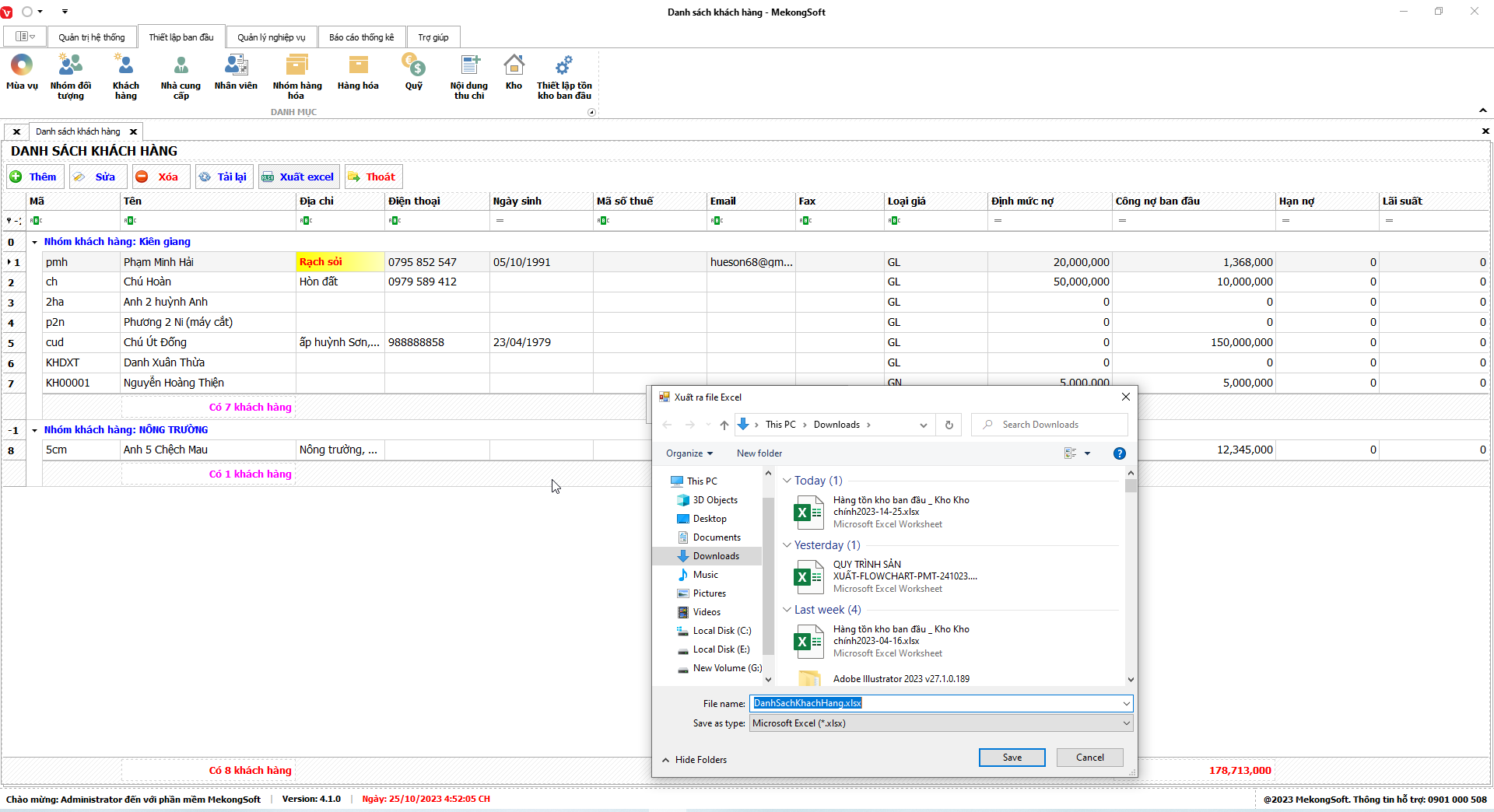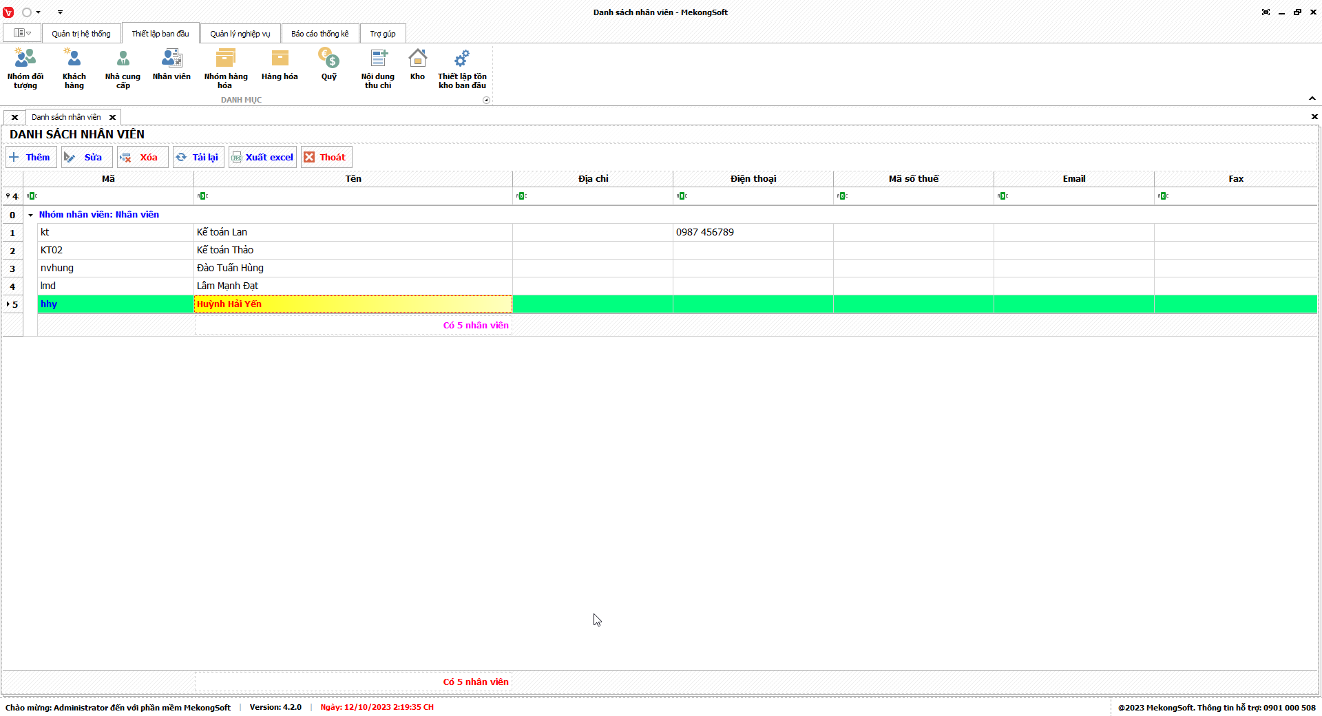 Phần mềm sẽ xuất Doanh số theo nhân viên dưới dạng file excel.