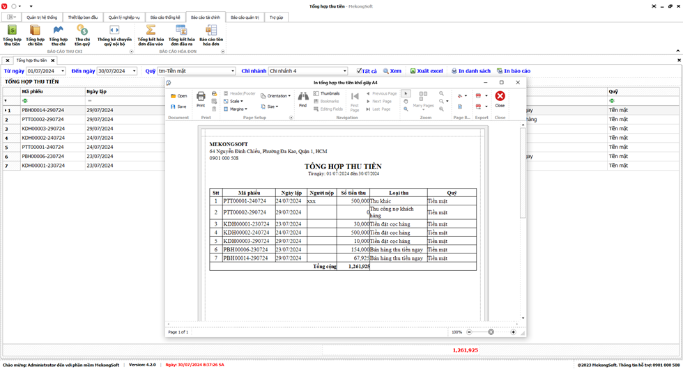 Dưới đây là một số lưu ý khi in Doanh thu theo chi nhánh