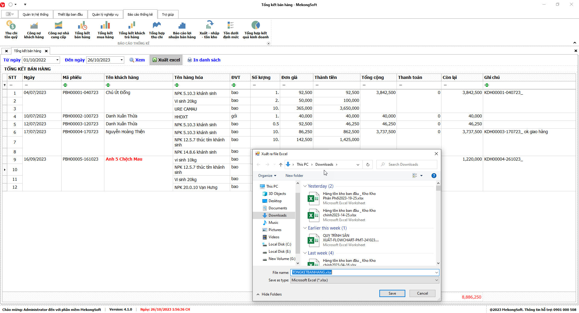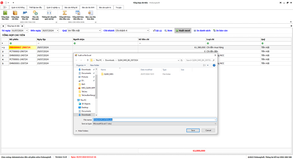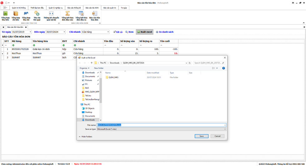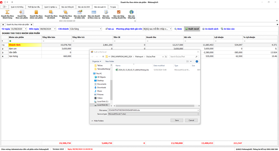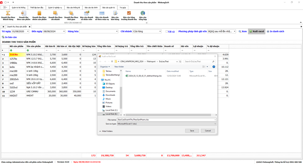 Phần mềm sẽ xuất Báo cáo bán hàng dưới dạng file excel.
