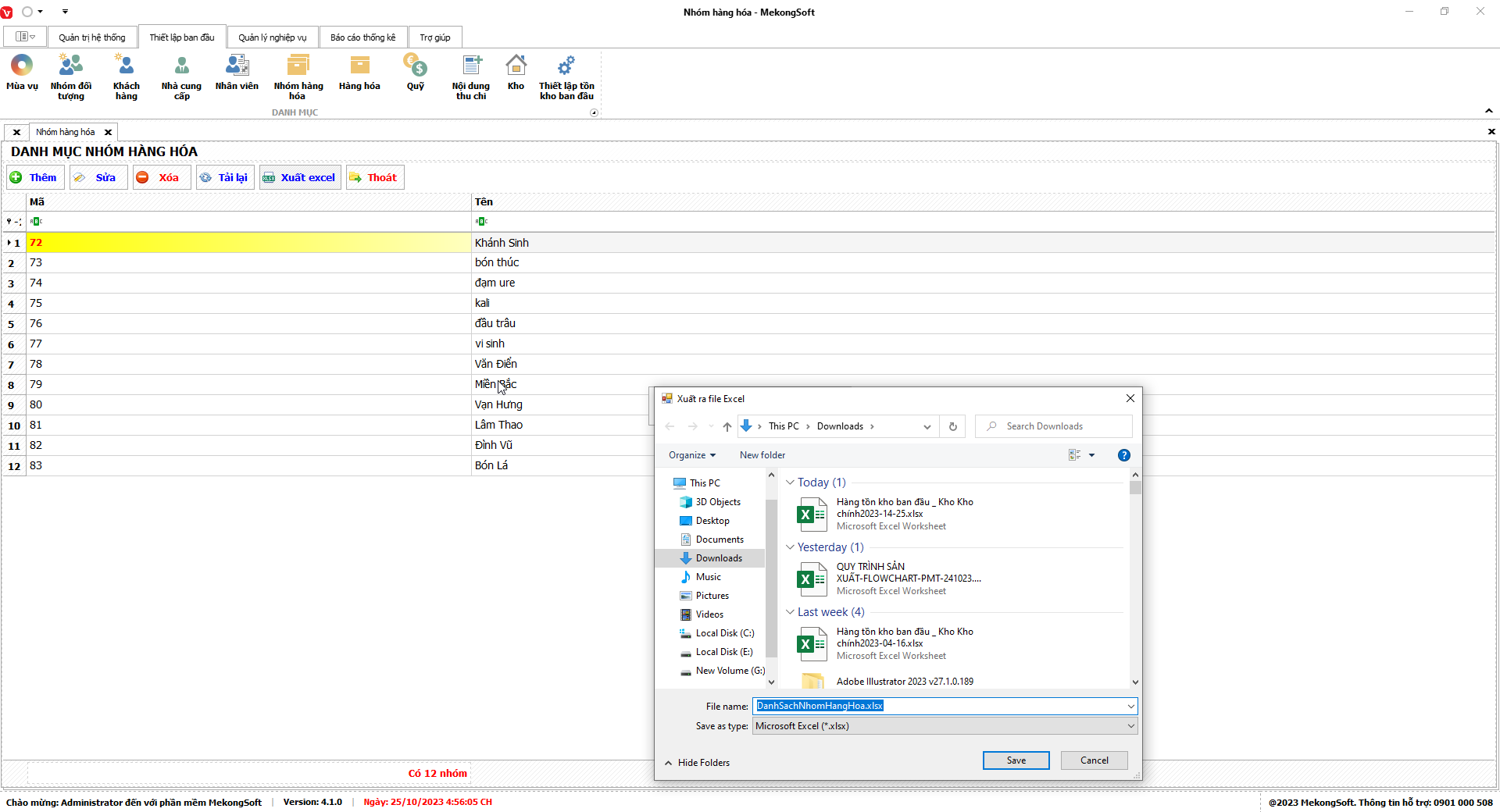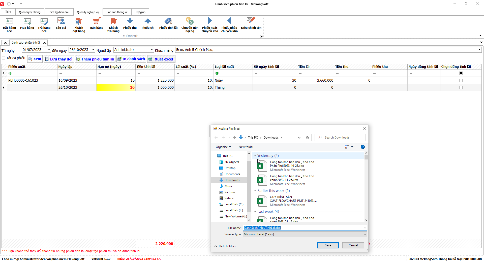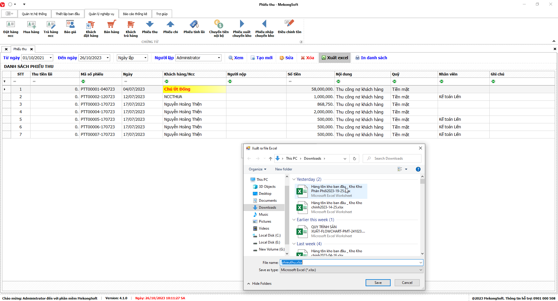 Phần mềm sẽ xuất Báo cáo bán hàng dưới dạng file excel.