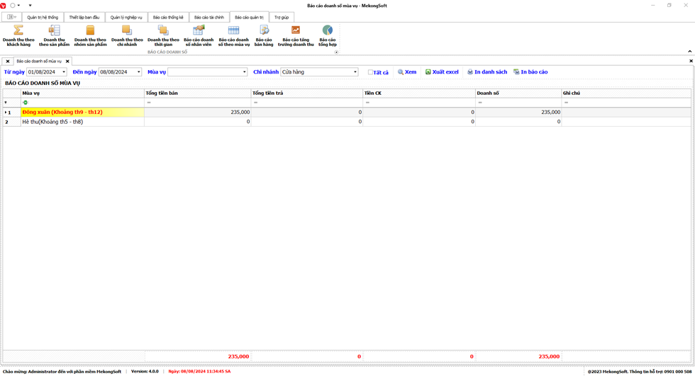 Tại màn hình Doanh thu theo mùa vụ