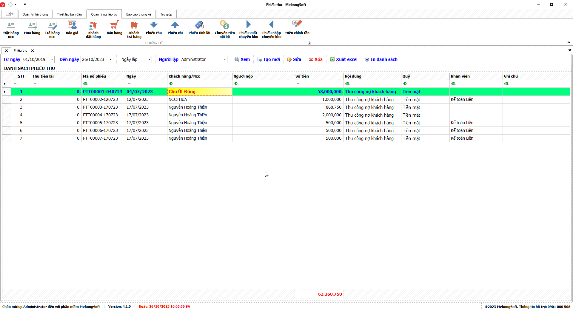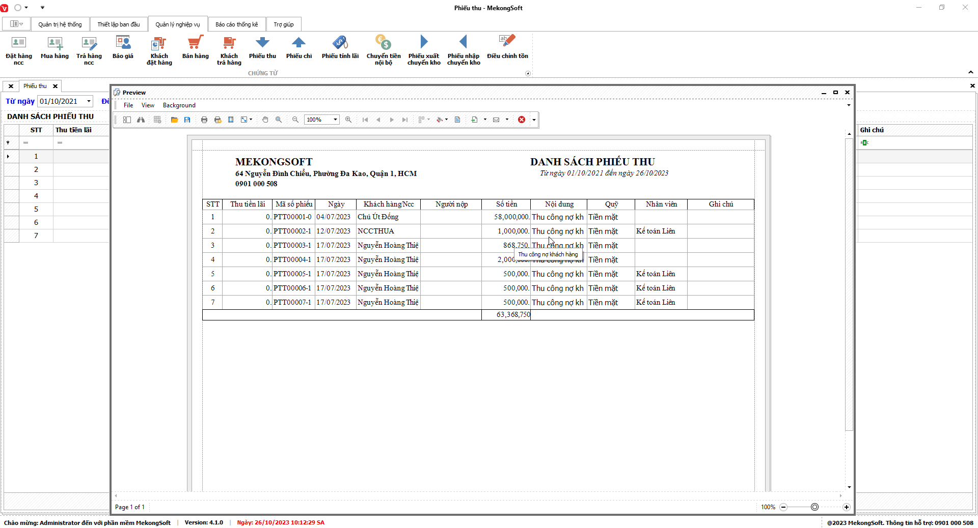 Bạn có thể sử dụng bộ lọc để tìm kiếm thông tin theo các tiêu chí như chi nhánh, phí trả hàng, thực thu, …