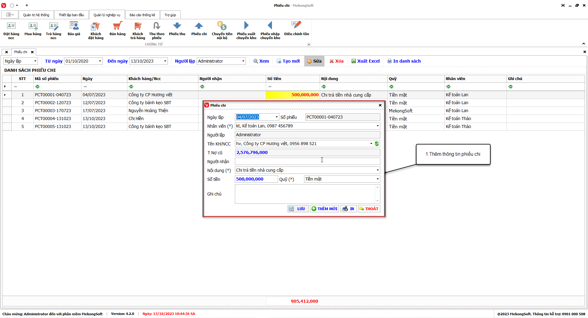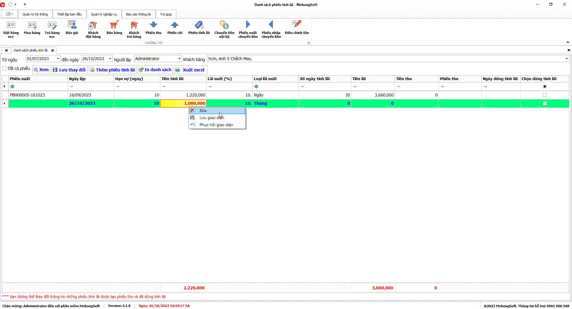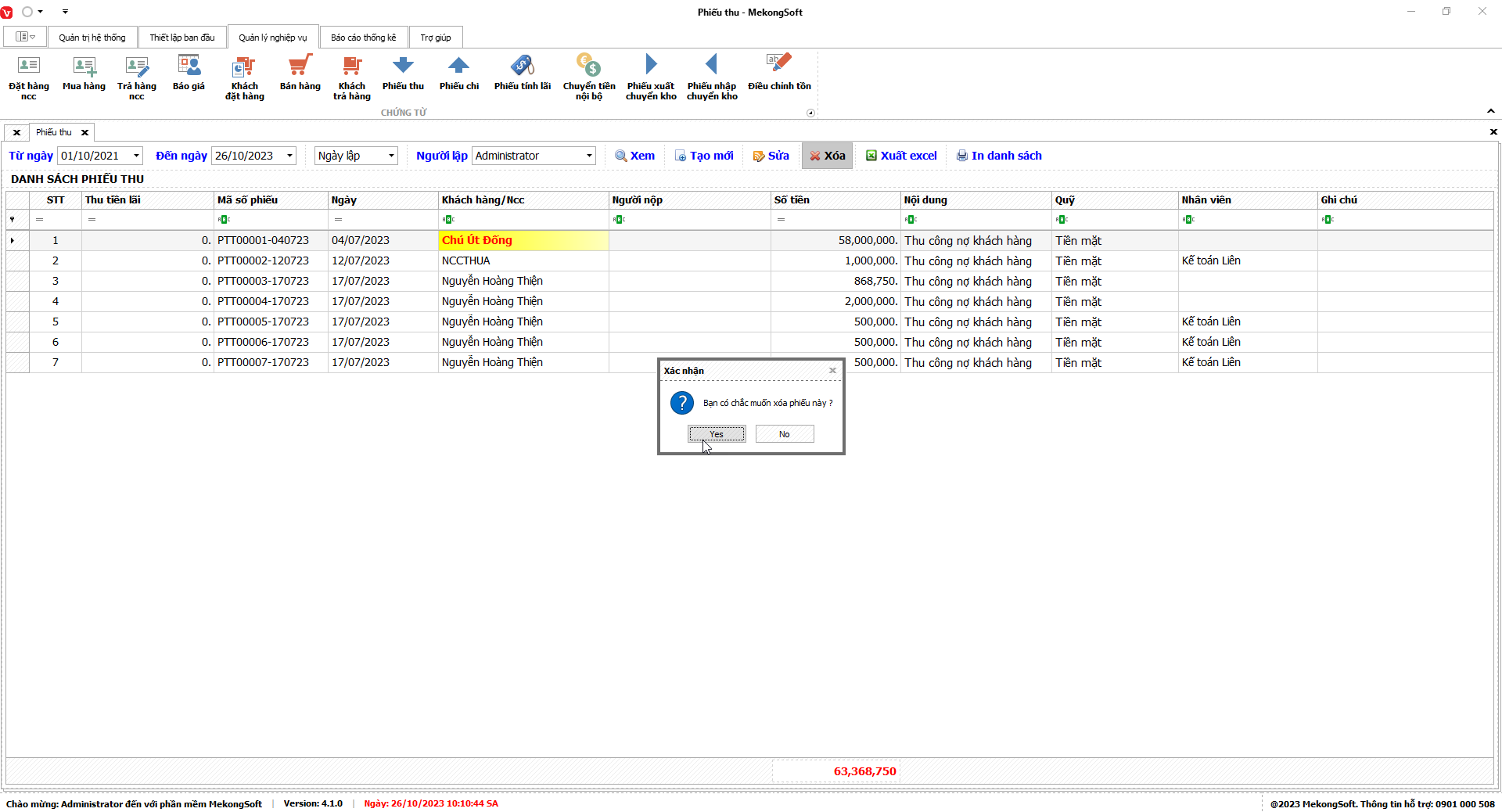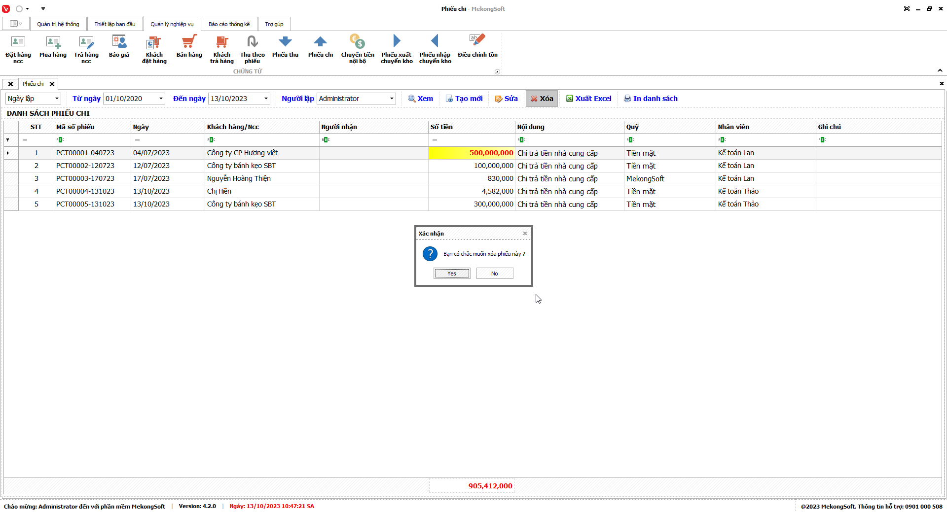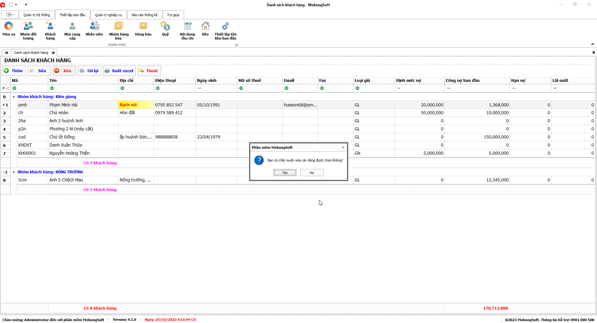 - Chỉ xóa những tài khoản chưa lập phiếu trên phần mềm.