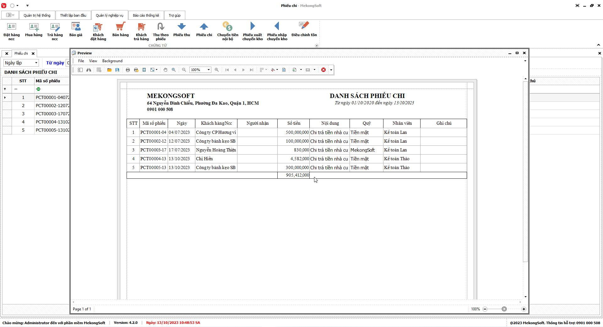 In doanh số theo nhân viên