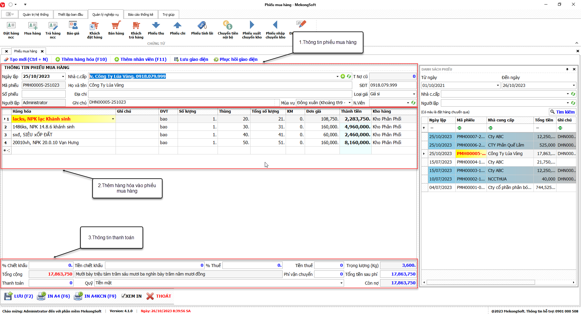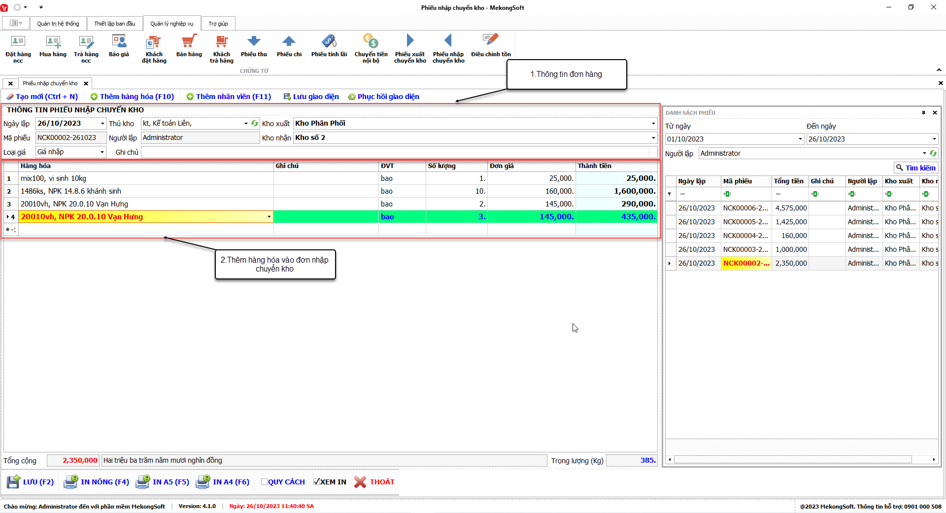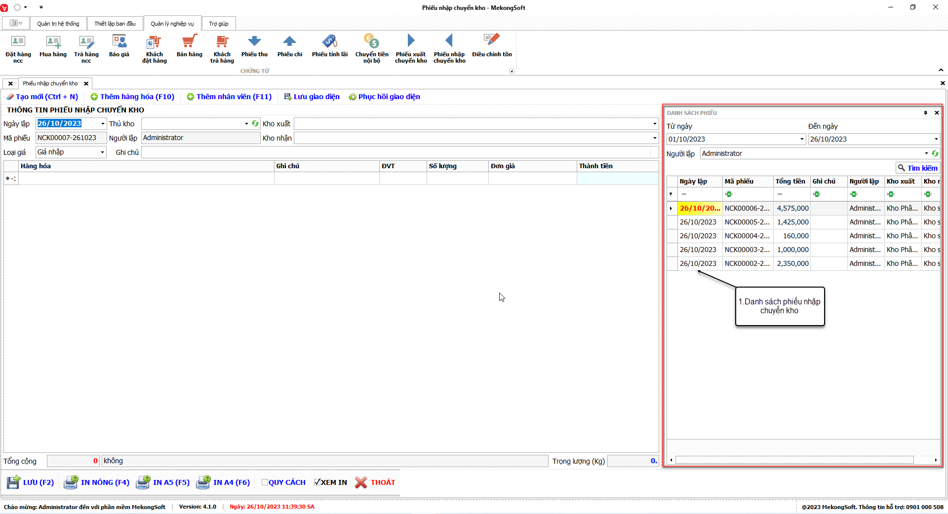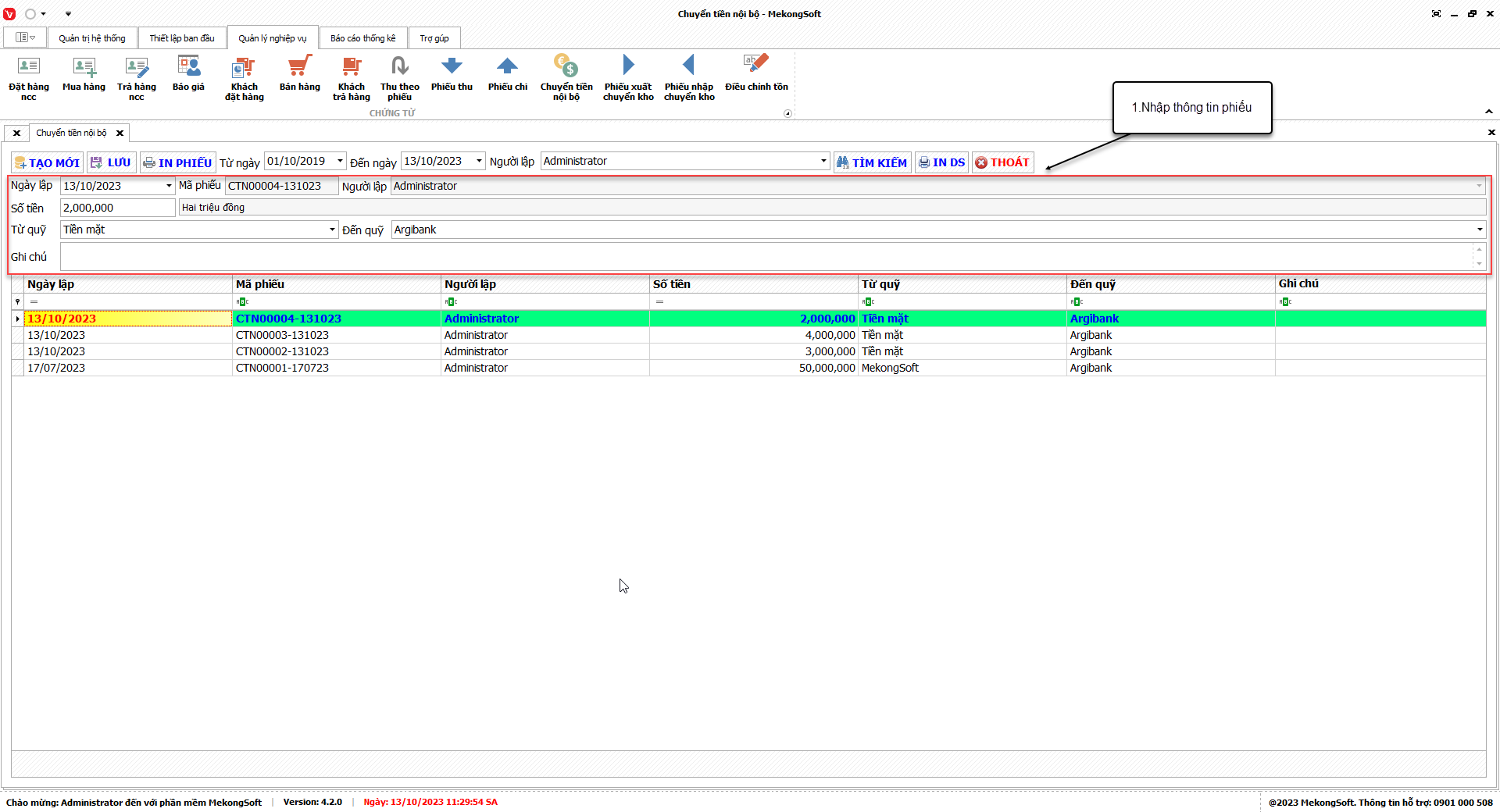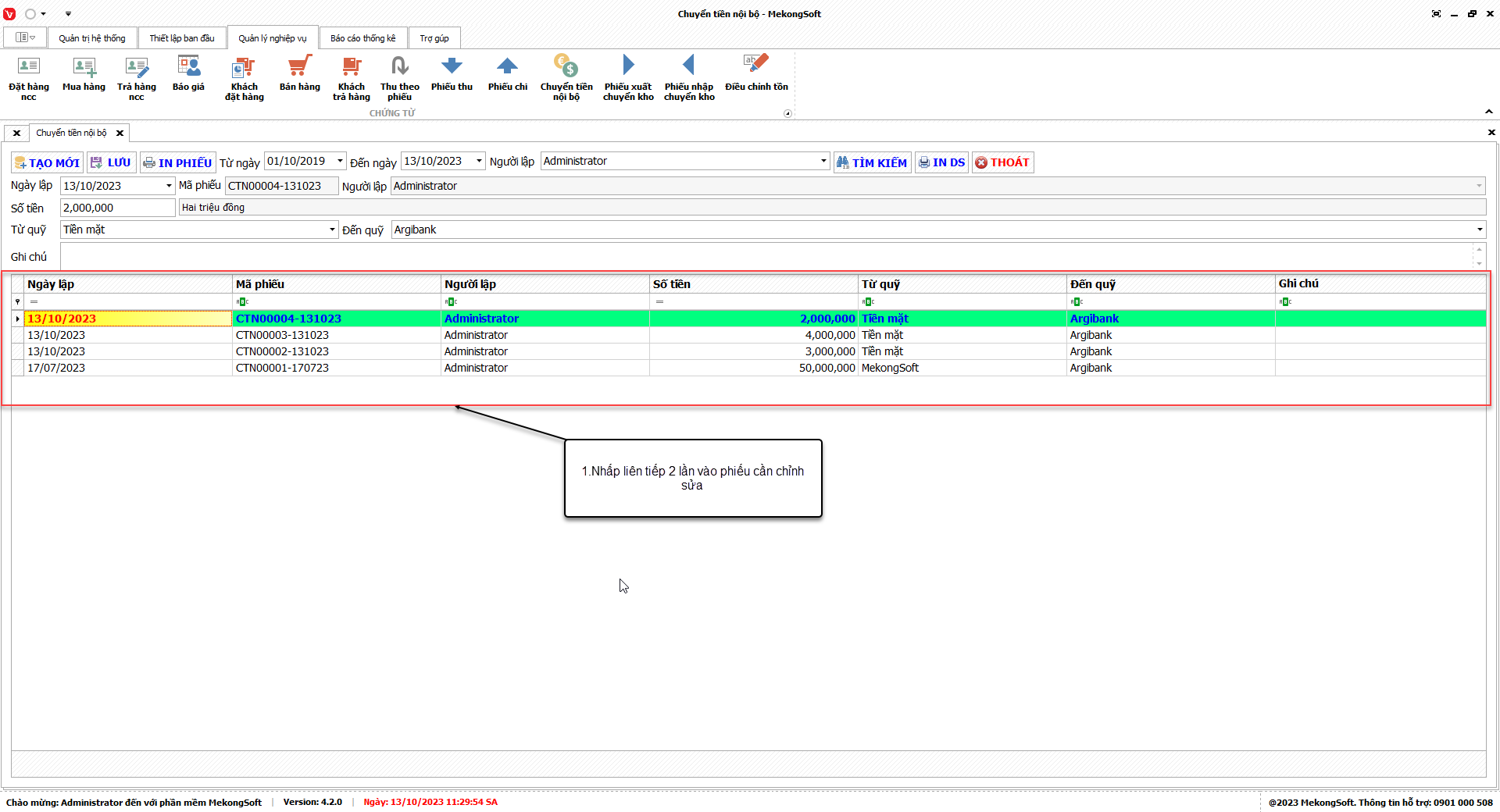 1. Đăng nhập vào phần mềm.