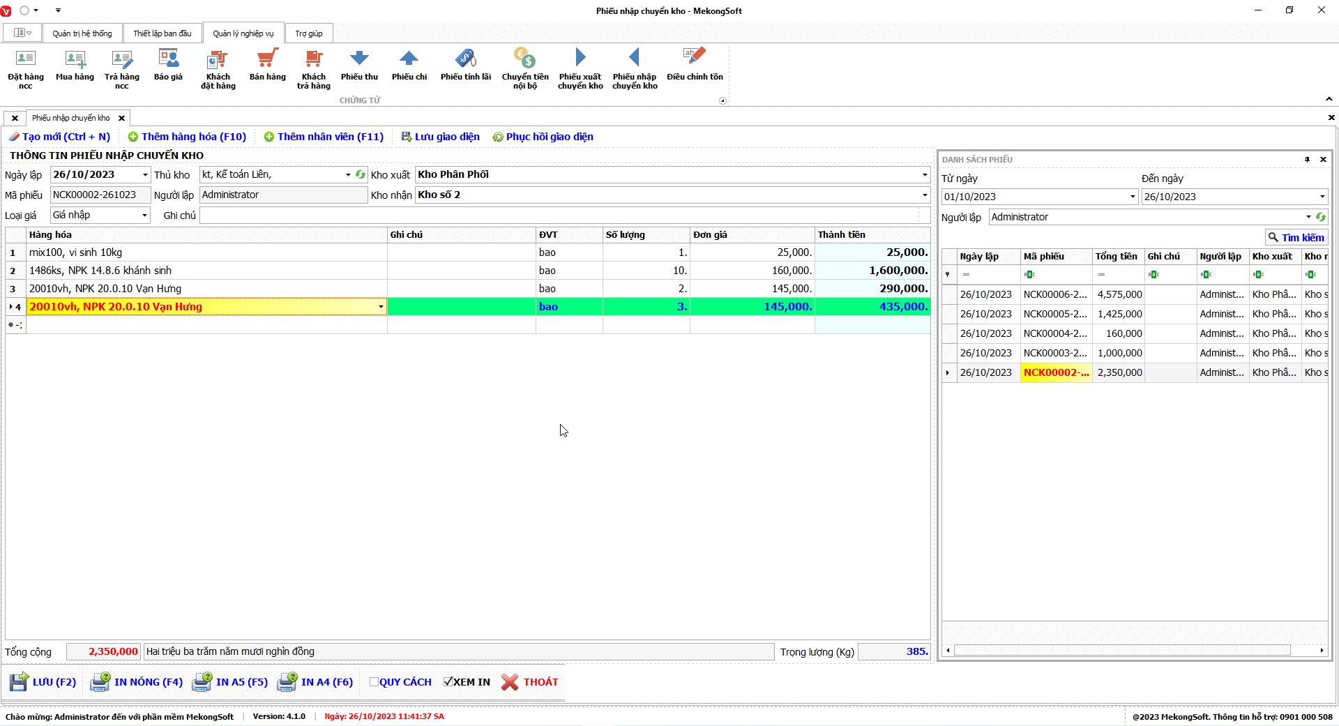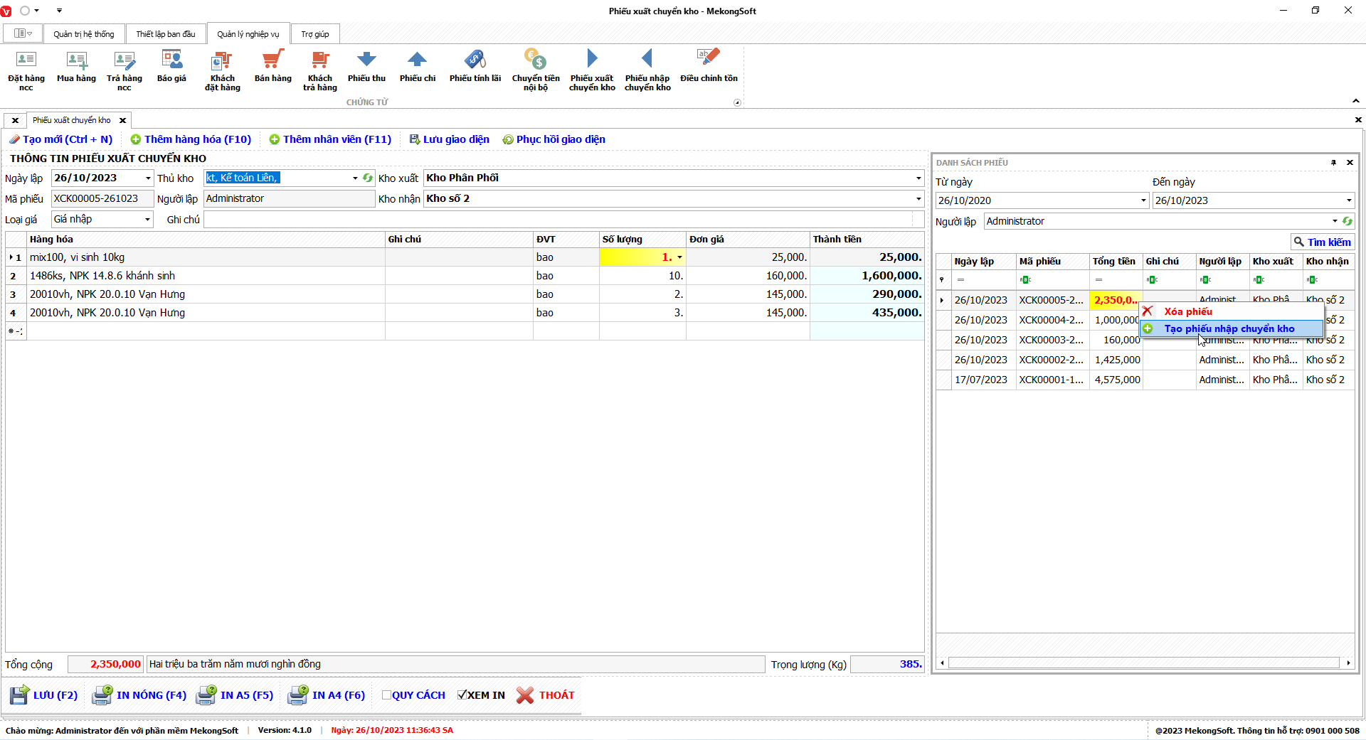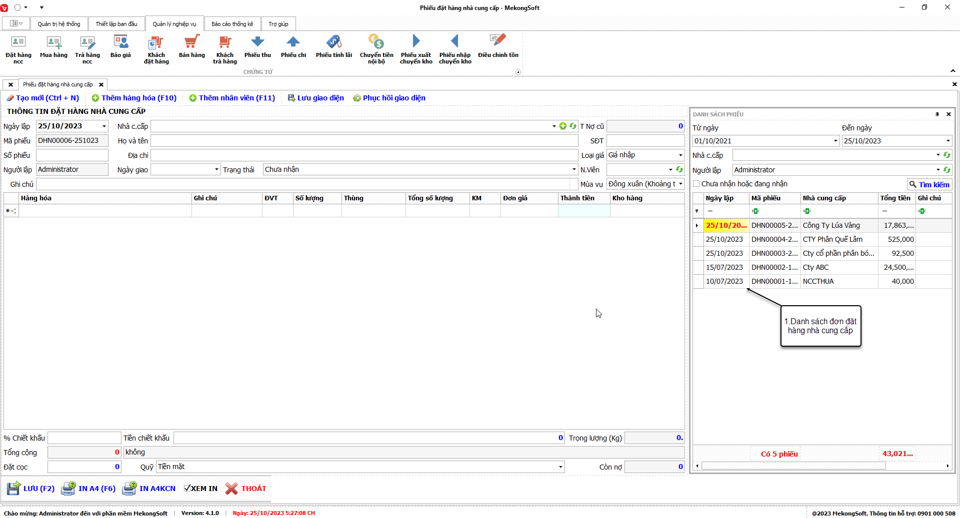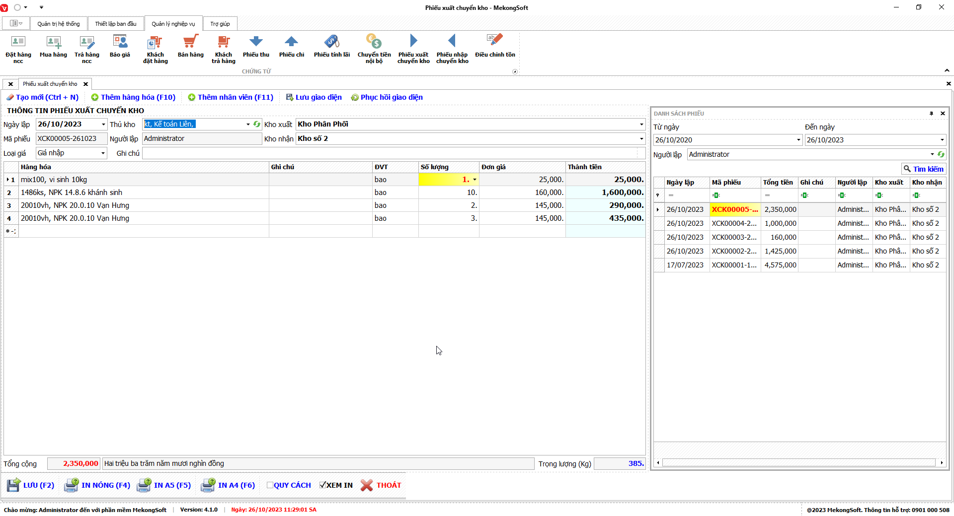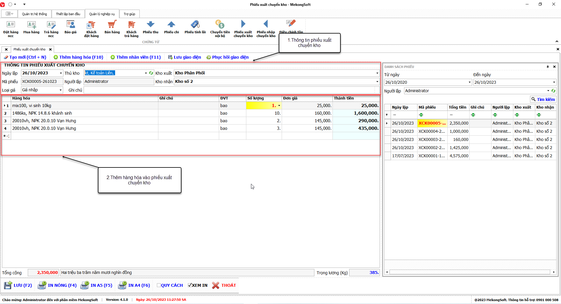 1. Đăng nhập vào phần mềm.