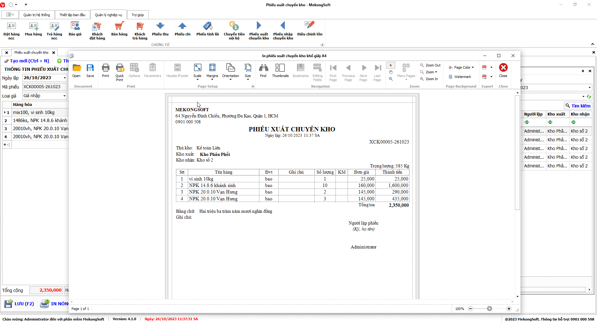 Để in Doanh số theo nhân viên trên phần mềm quản lý bán hàng vật tư nông nghiệp, bạn có thể thực hiện theo các bước sau: