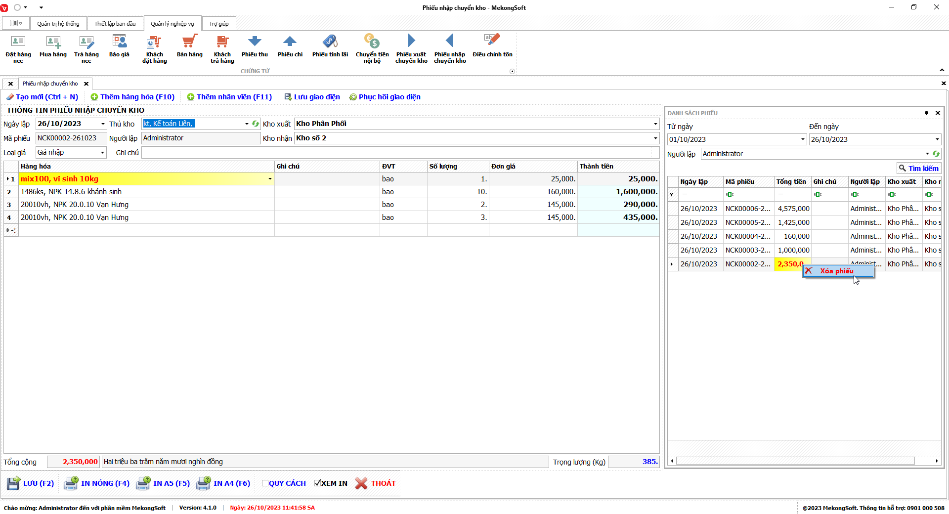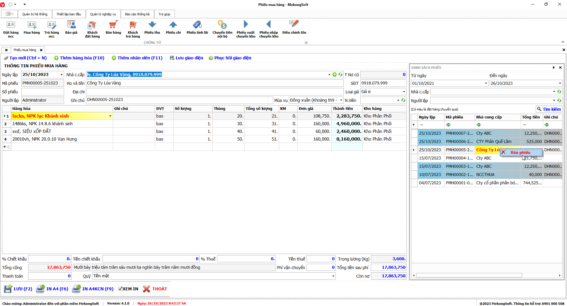 Để xóa người dùng trên phần mềm quản lý bán hàng vật tư nông nghiệp, bạn có thể thực hiện theo các bước sau: