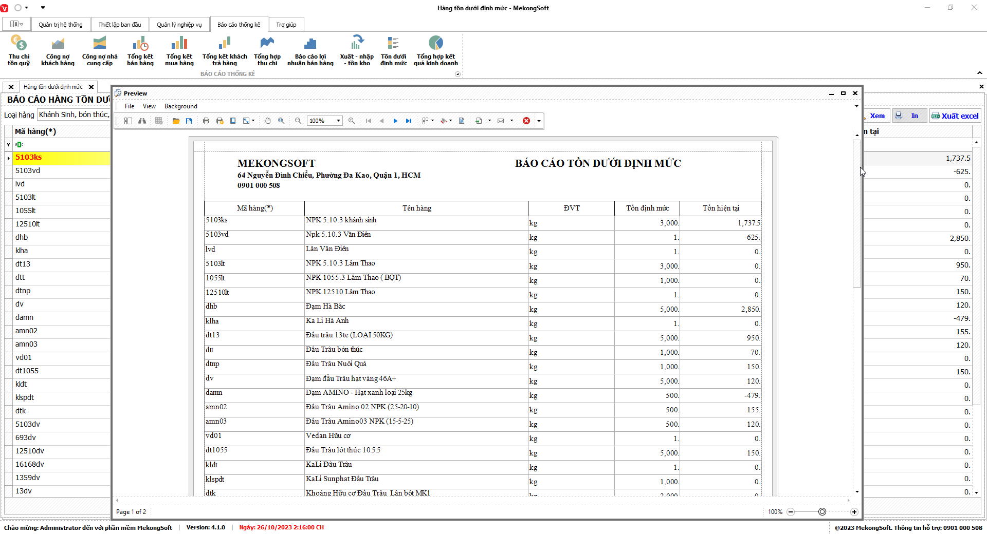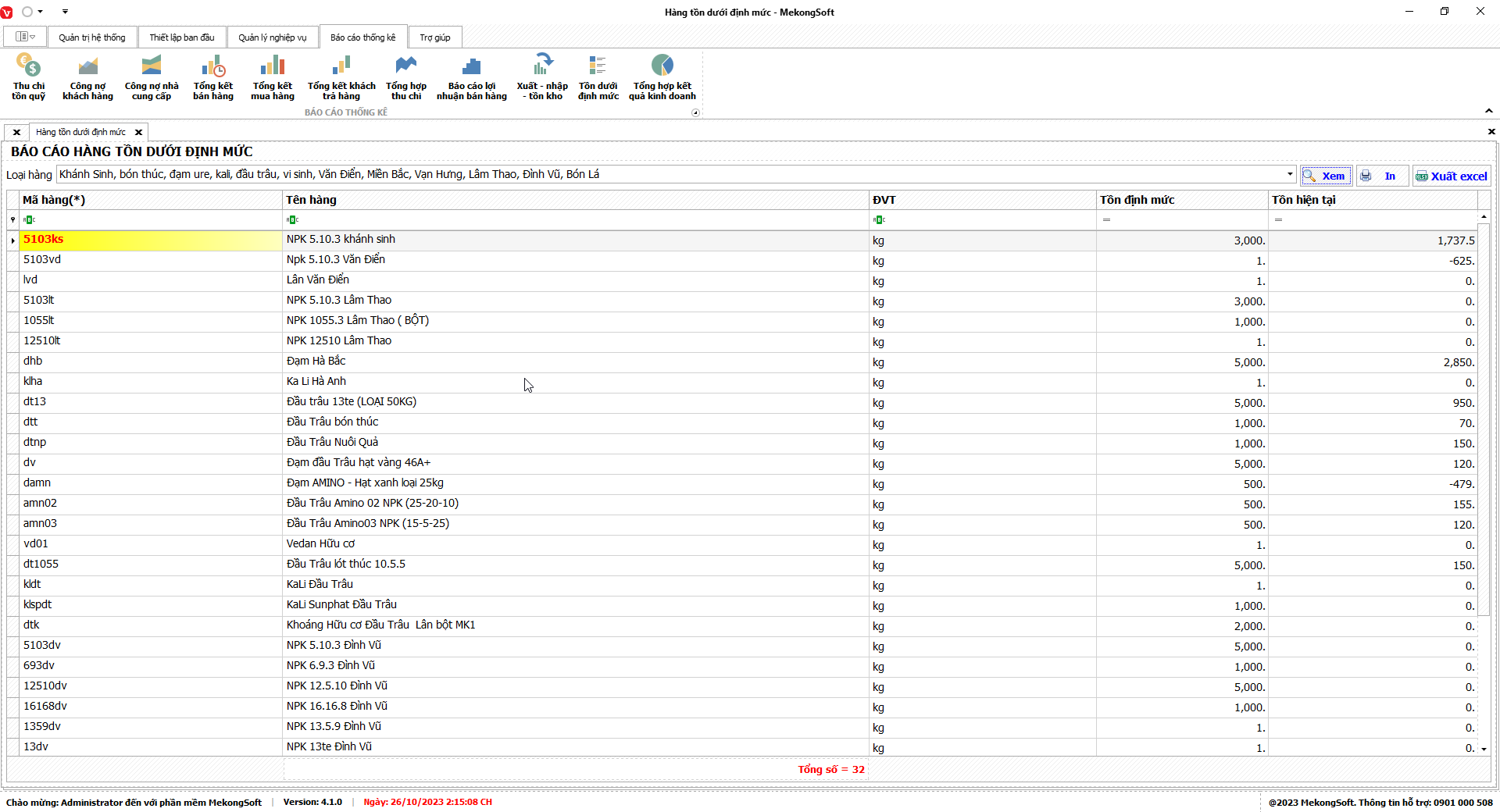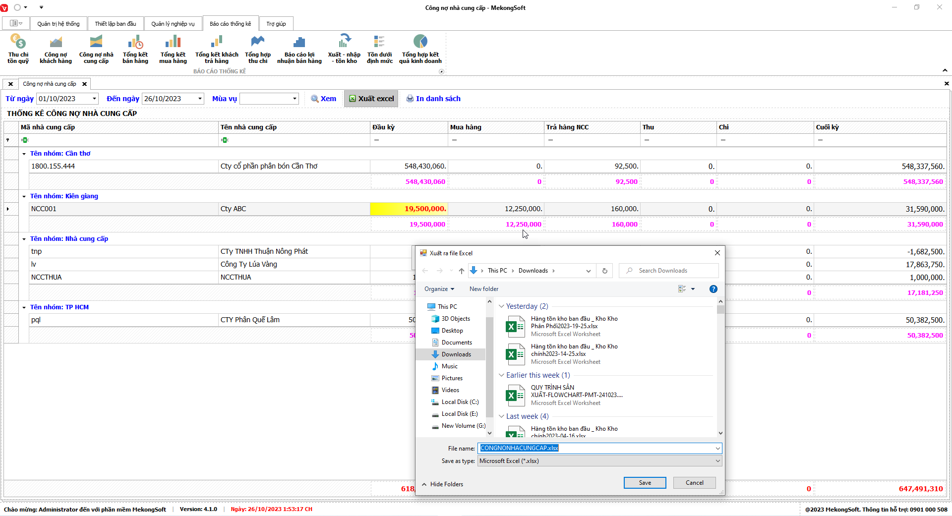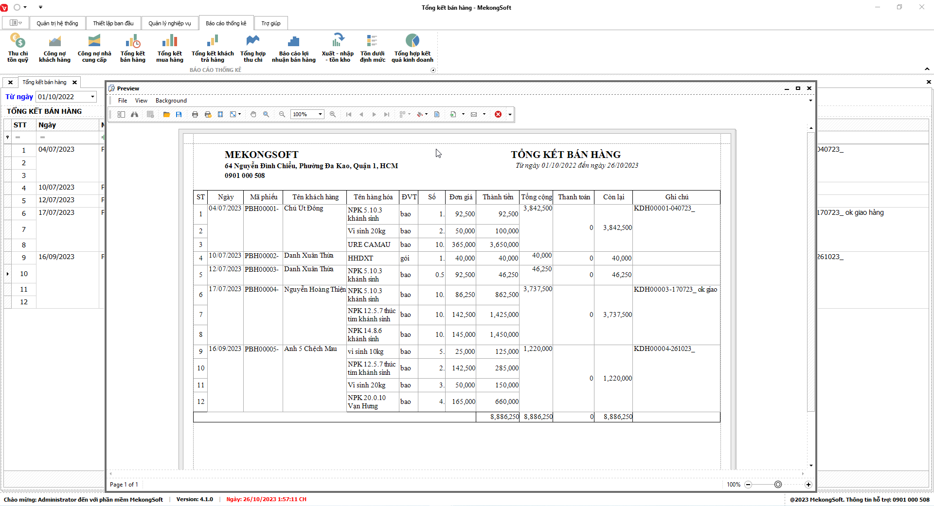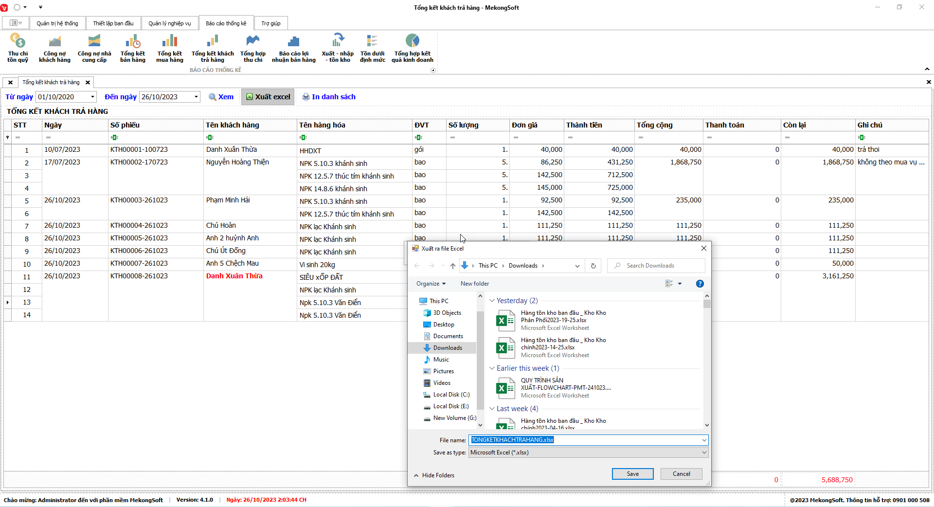 Phần mềm sẽ xuất báo cáo tổng hợp kết quả kinh doanh dưới dạng file excel.