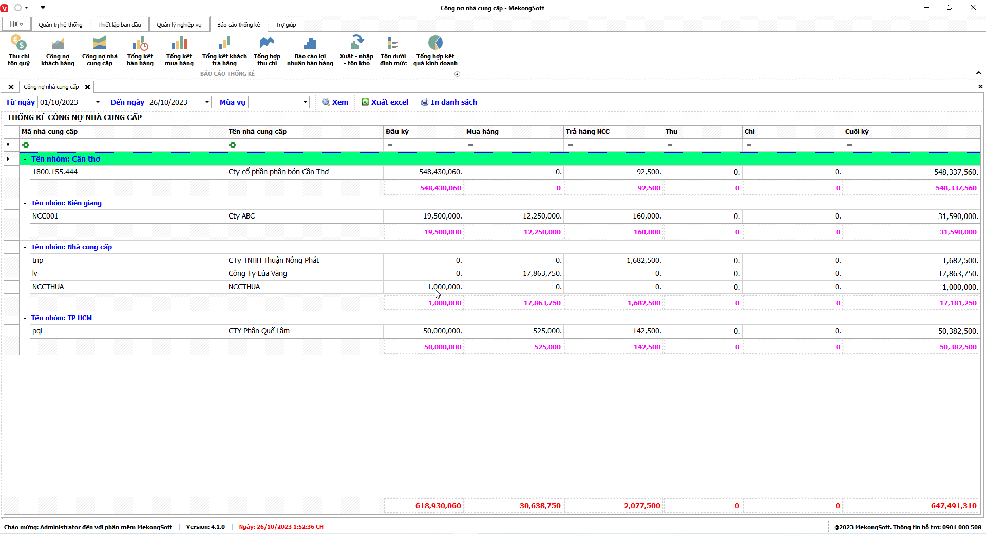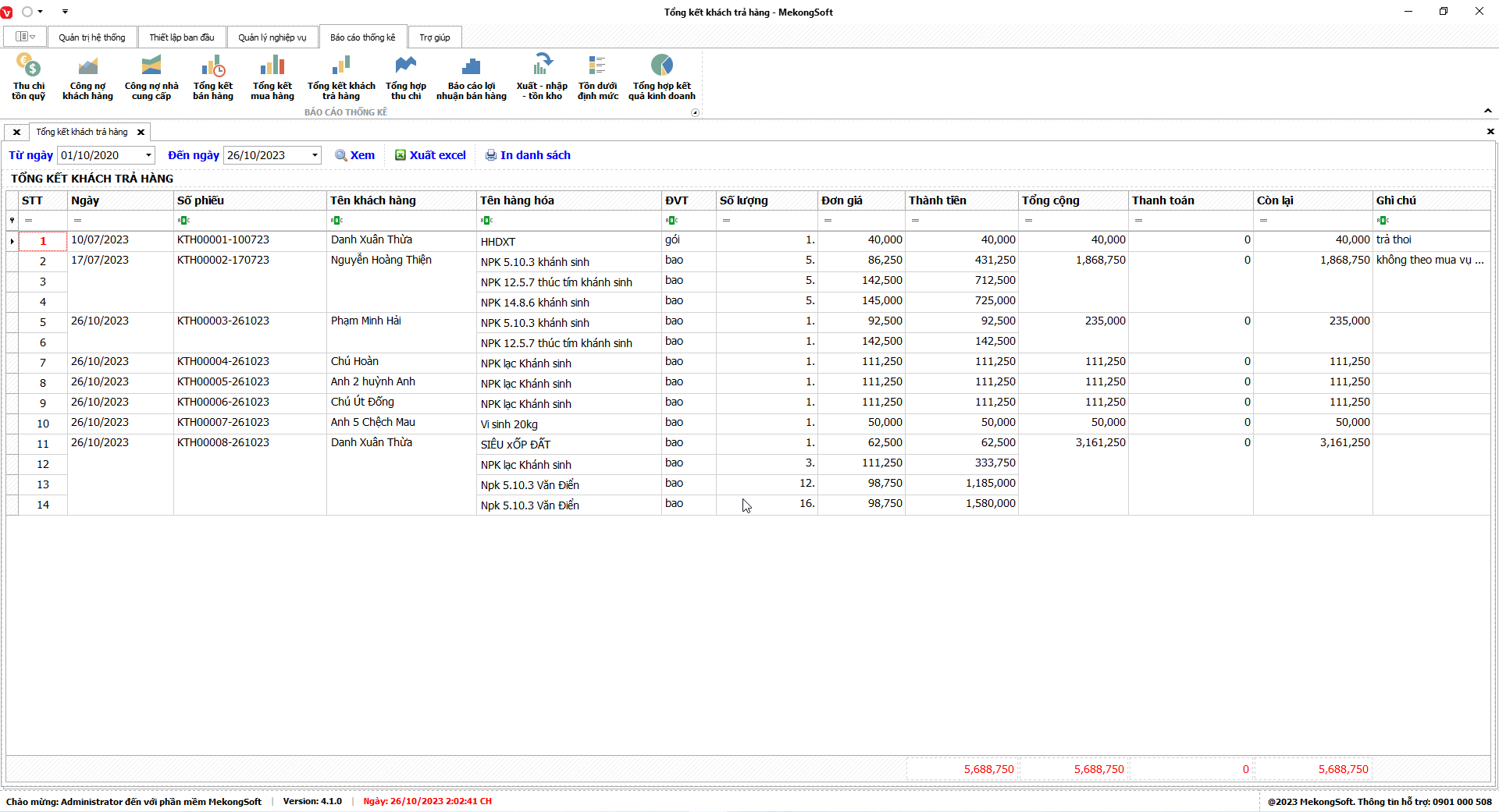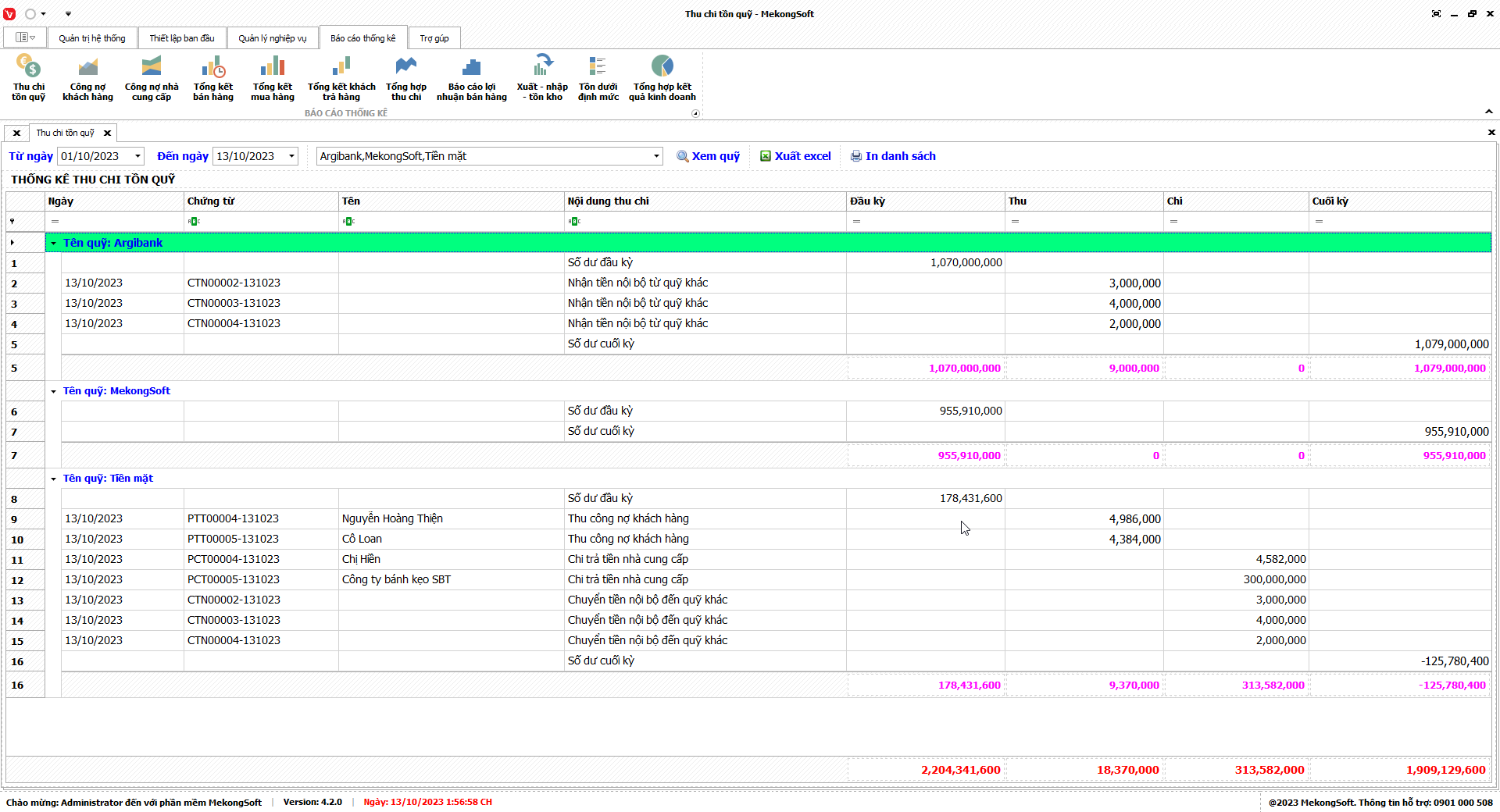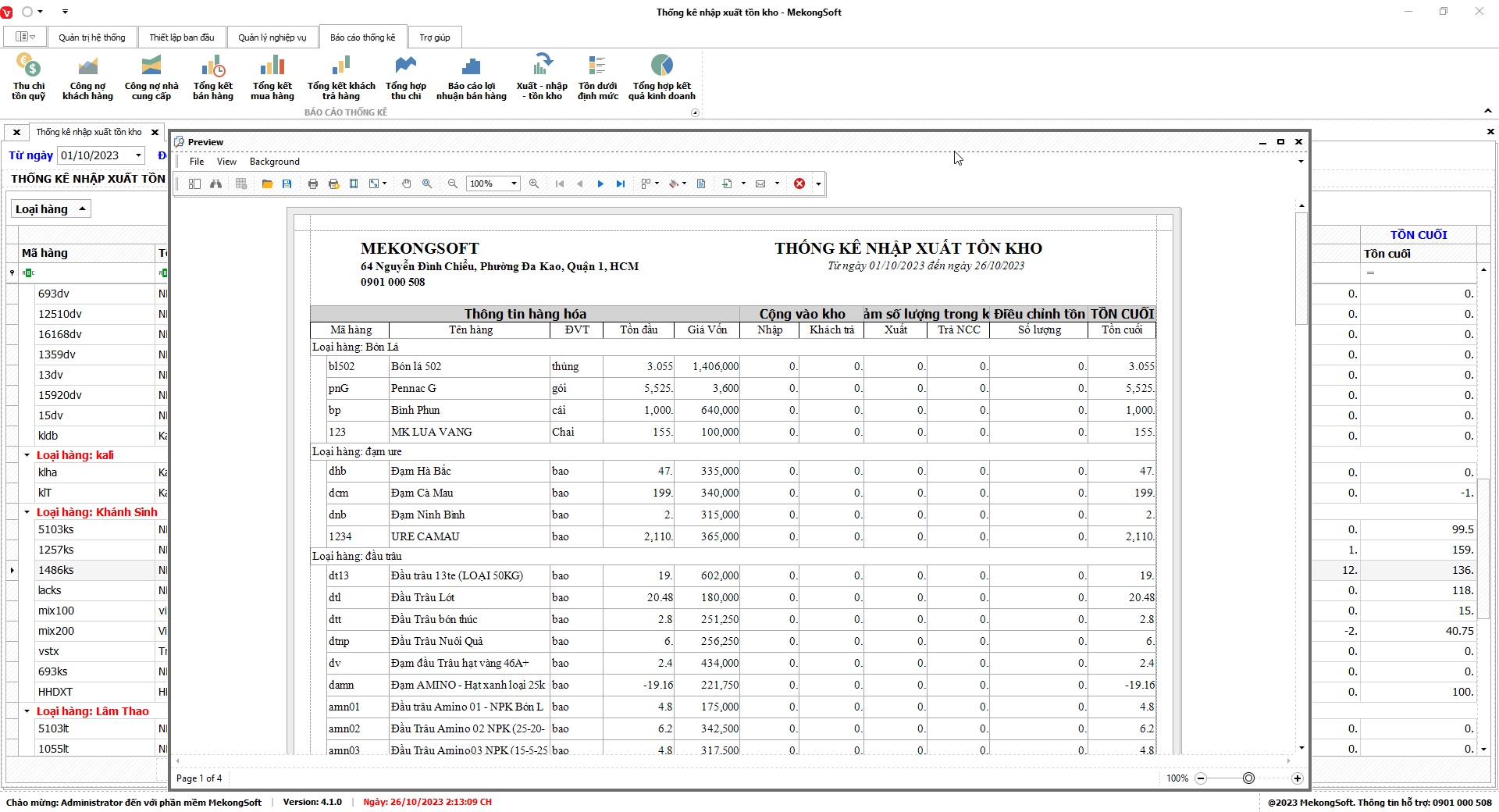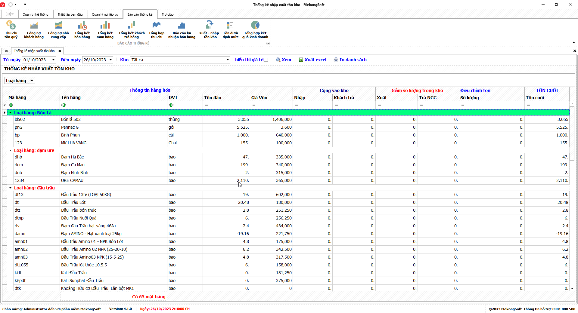 Phần mềm sẽ xuất báo cáo tổng hợp kết quả kinh doanh dưới dạng file excel.