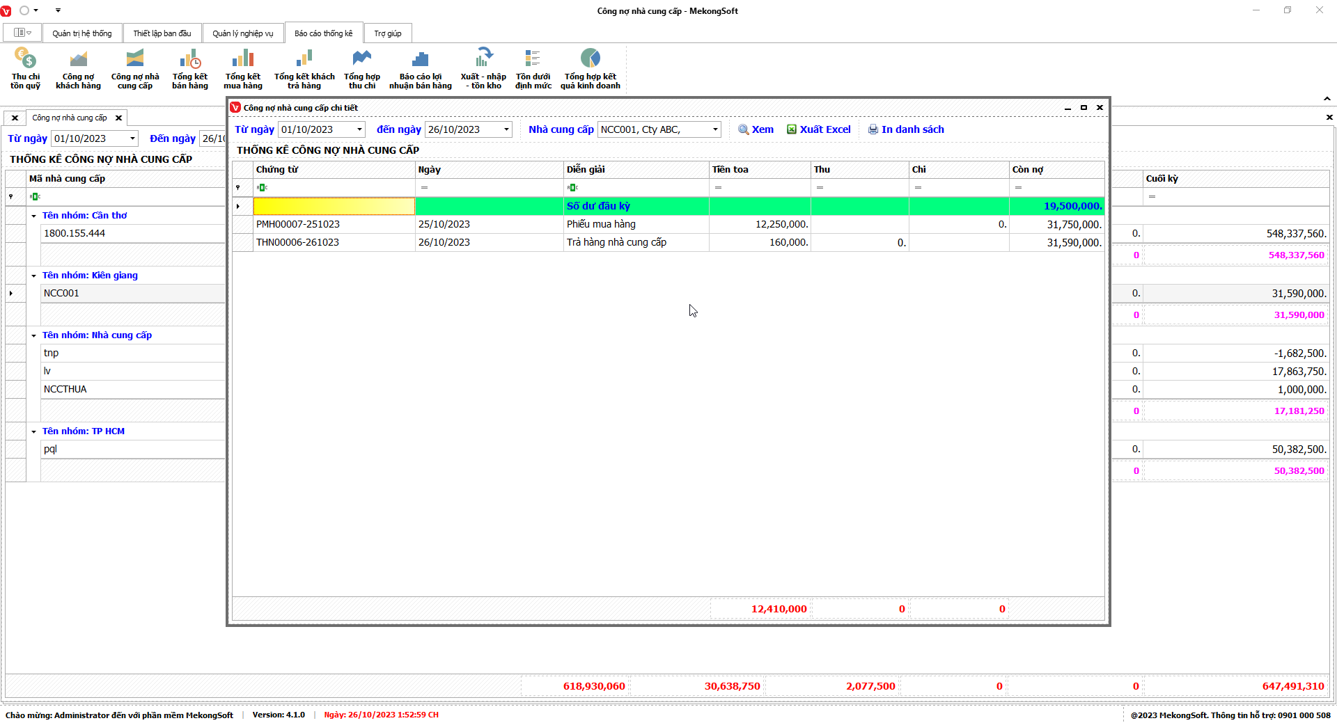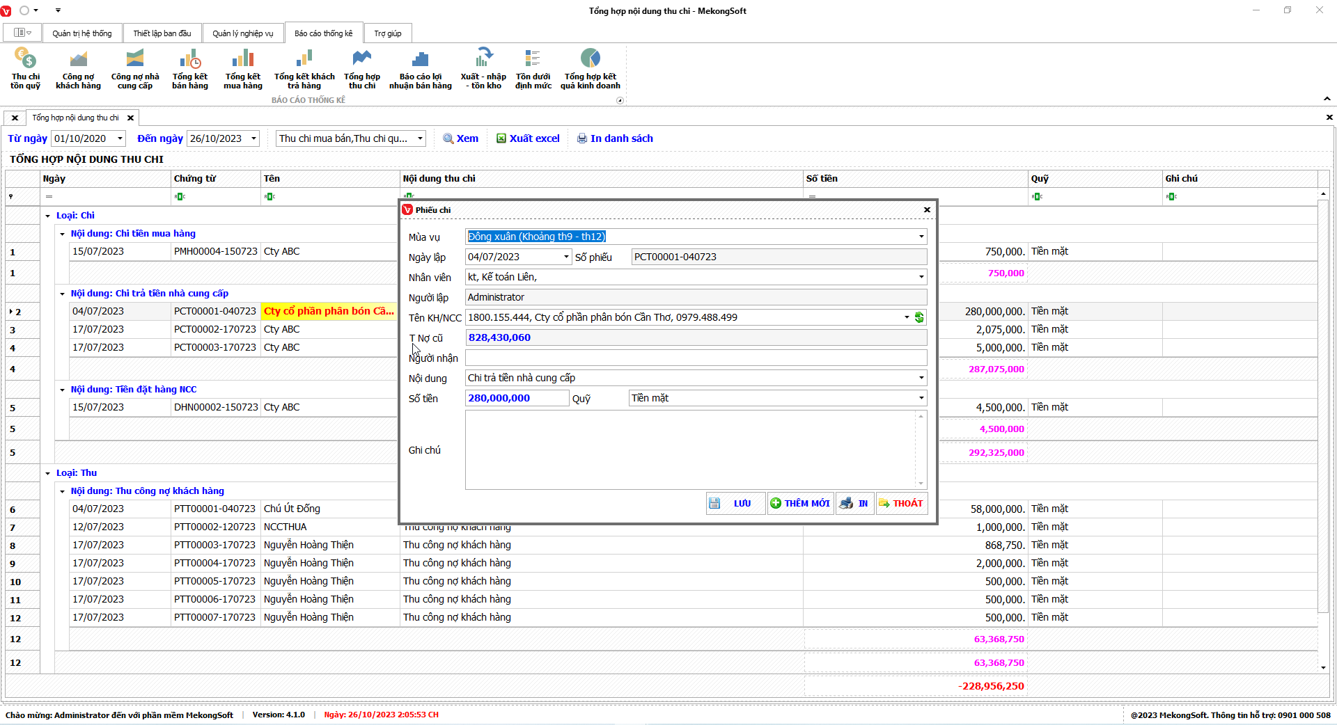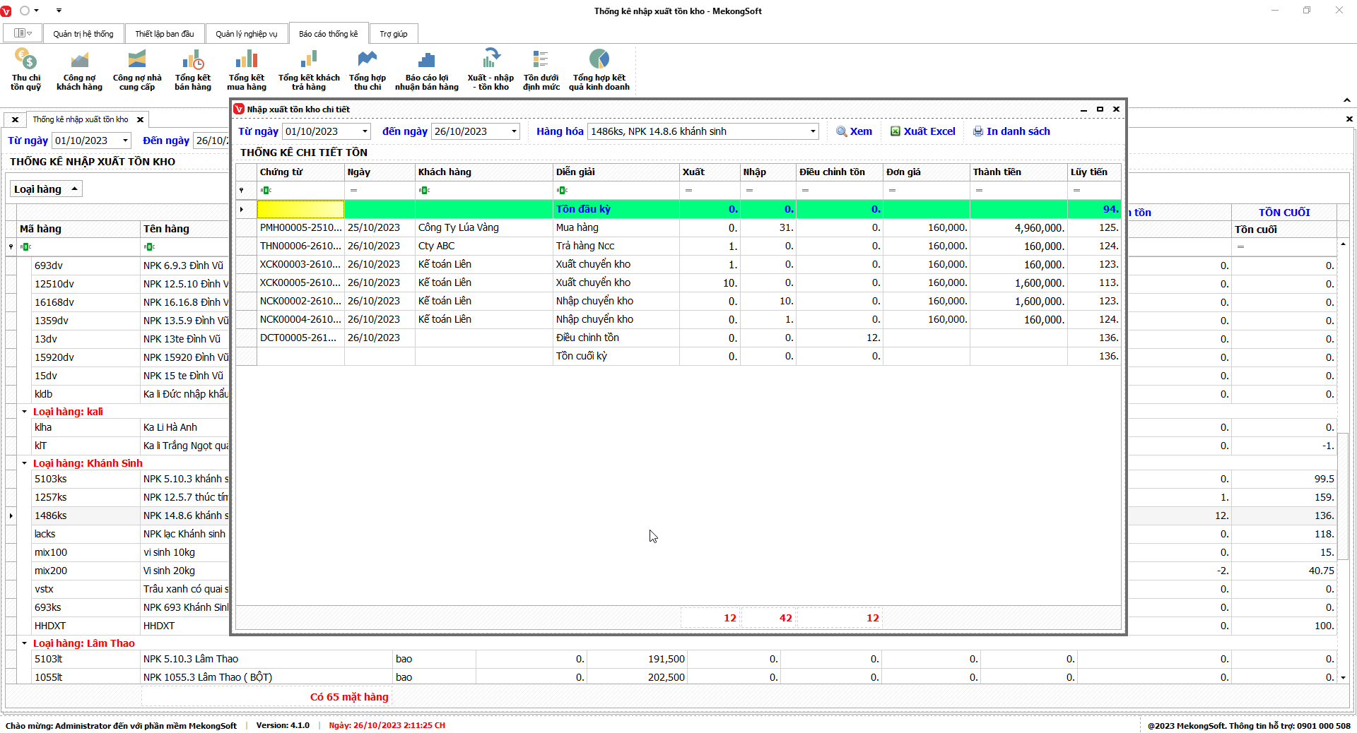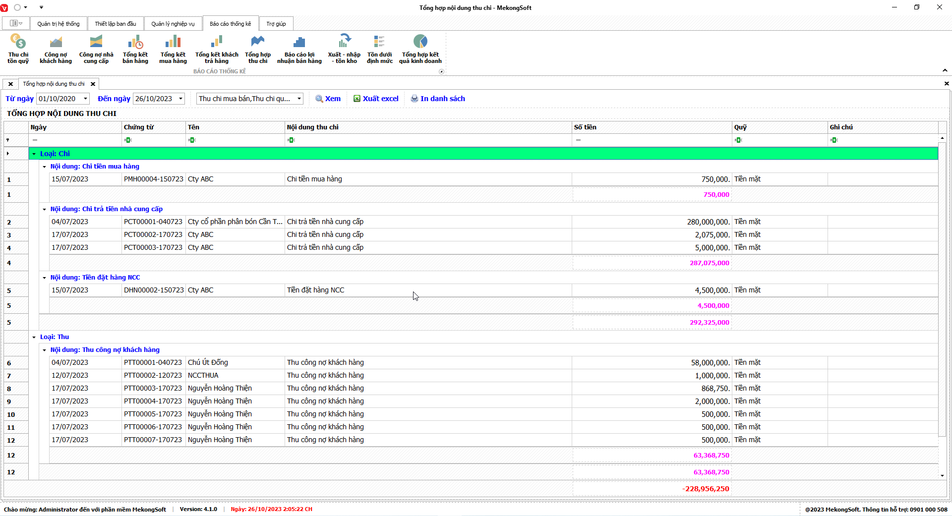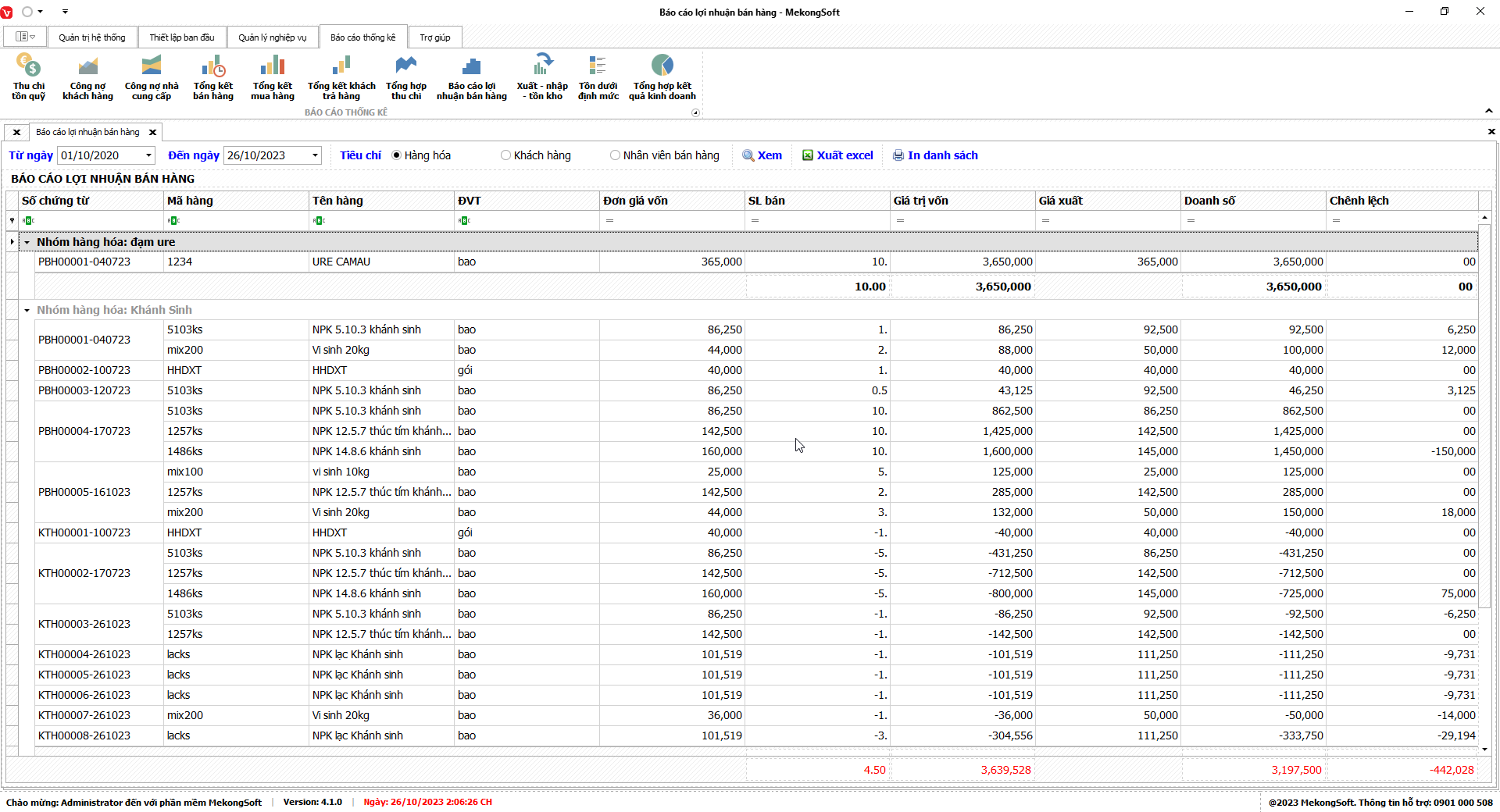 § Xuất excel tổng hợp kết quả kinh doanh