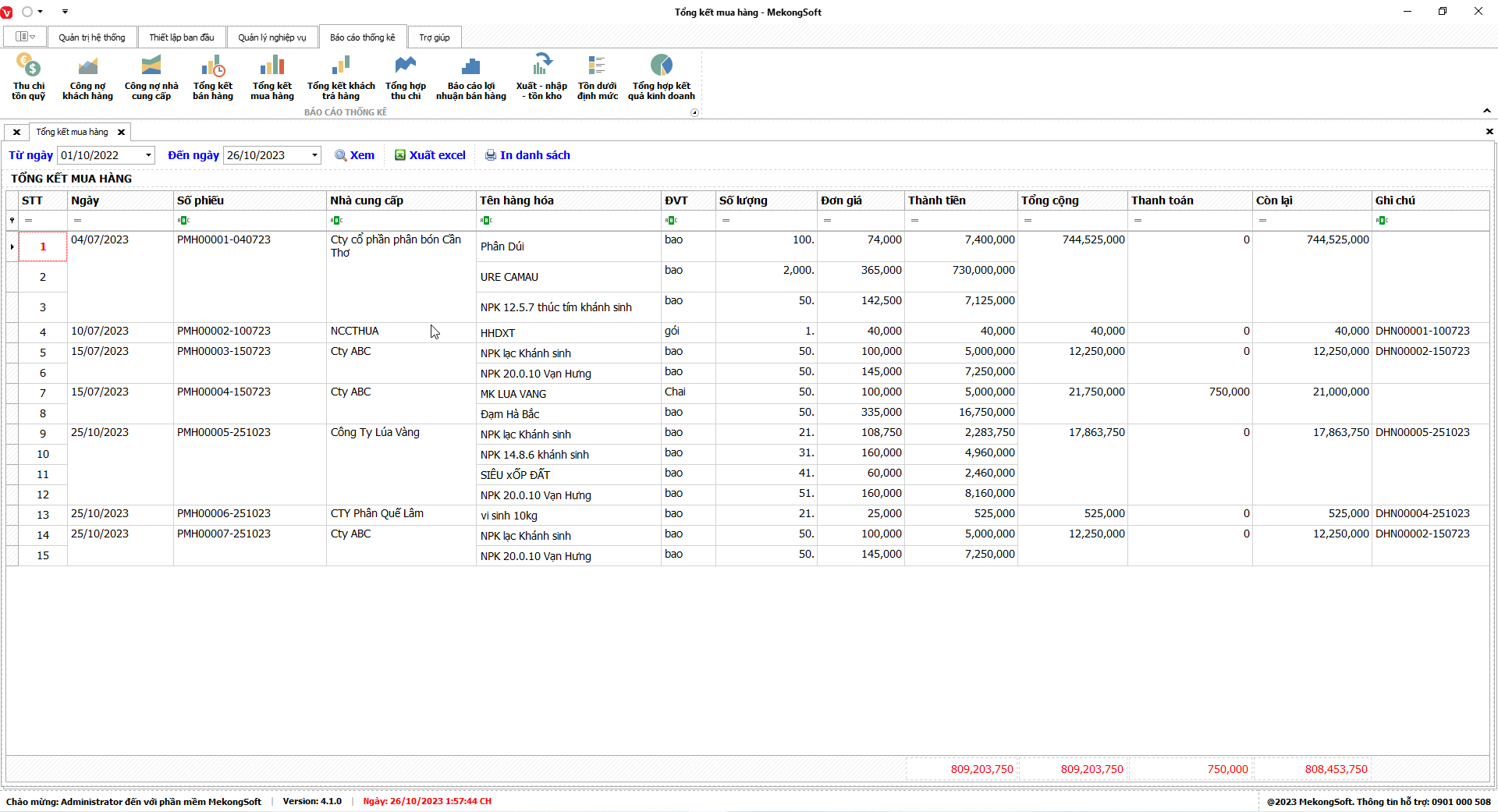 Để xuất excel tổng hợp kết quả kinh doanh trên phần mềm quản lý bán hàng vật tư nông nghiệp, bạn có thể thực hiện theo các bước sau: