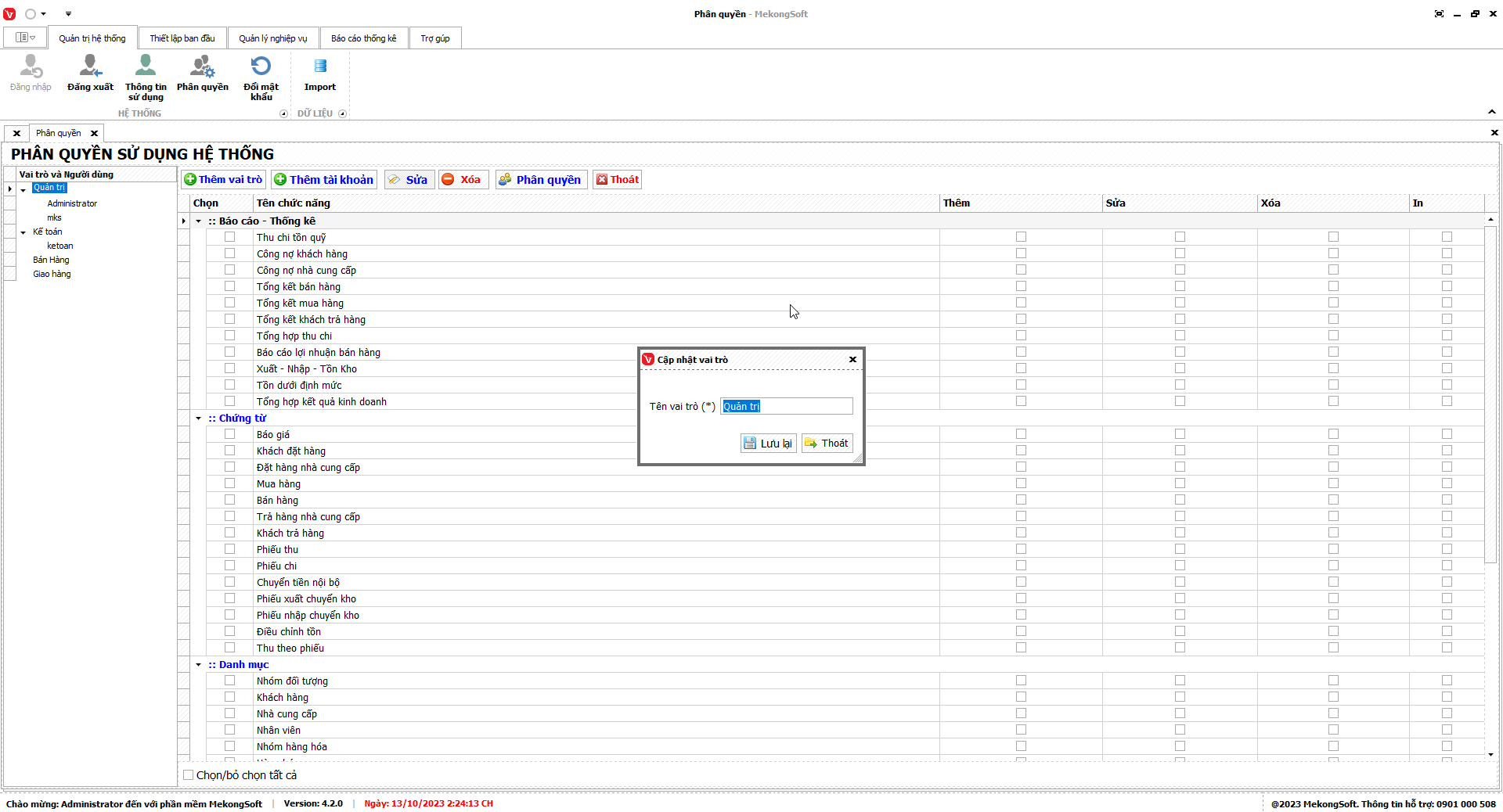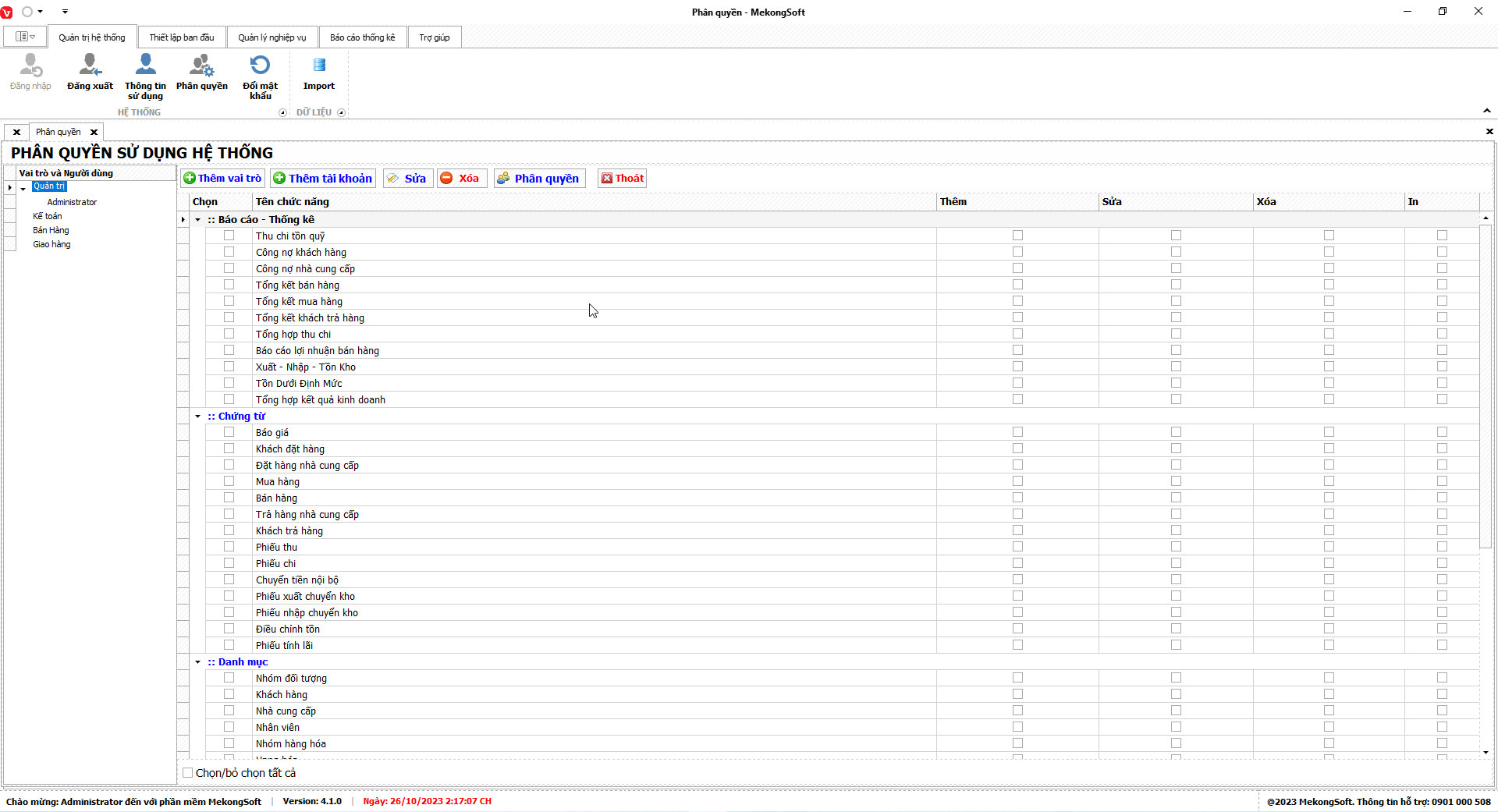 - Chỉ xóa các nhóm quyền không còn sử dụng.